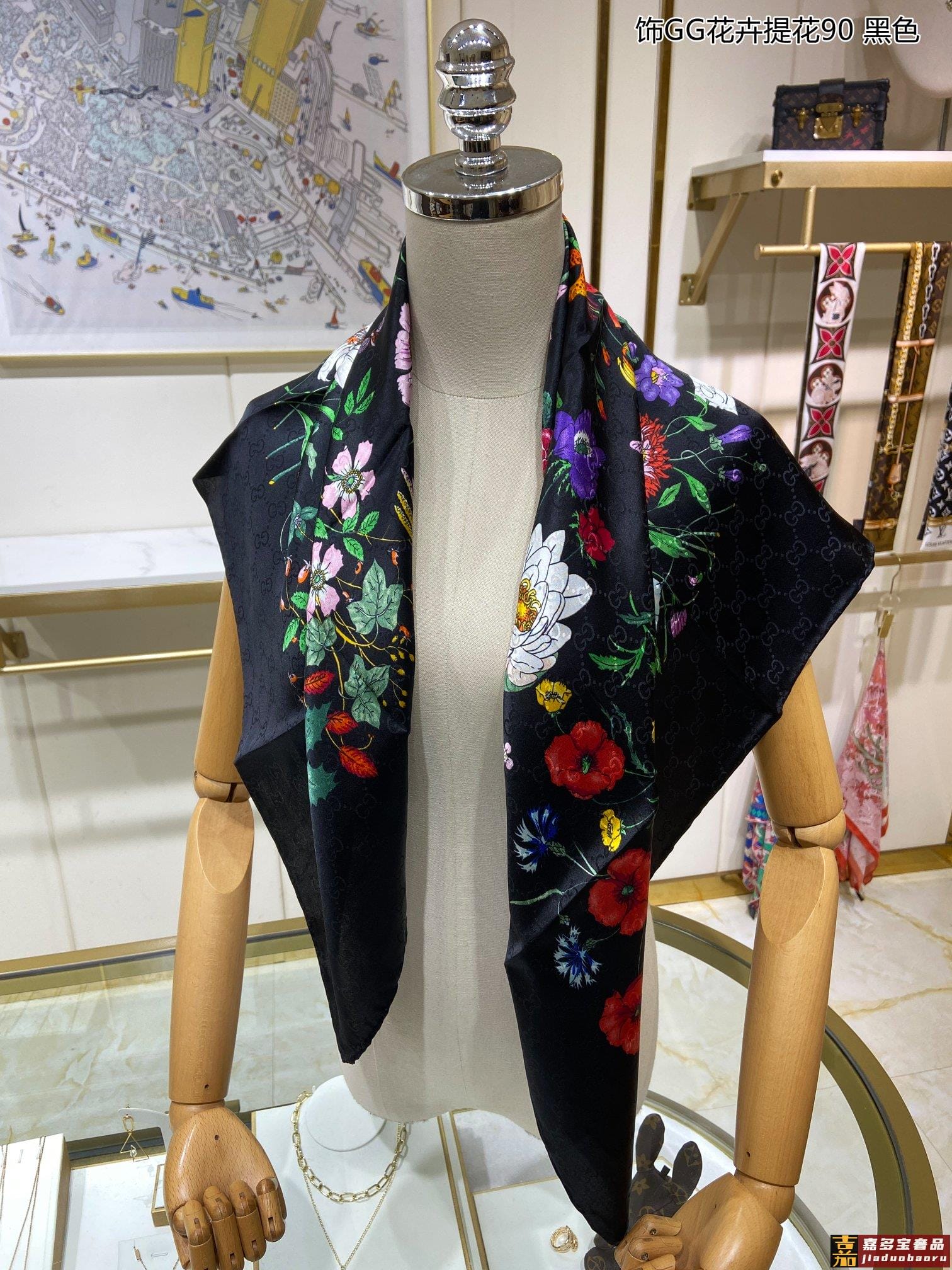 家最新标识拼植物印花羊绒长巾专柜今年最新主题系列透漏出奢华高