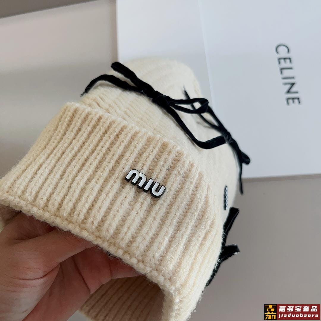缪缪秋冬新款毛线帽秋冬冷帽黑白两色