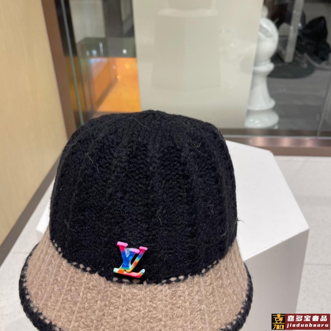 路易威登新双色针织渔夫帽女秋冬季脸大适合什么帽子显脸小水桶帽