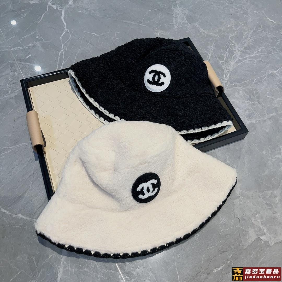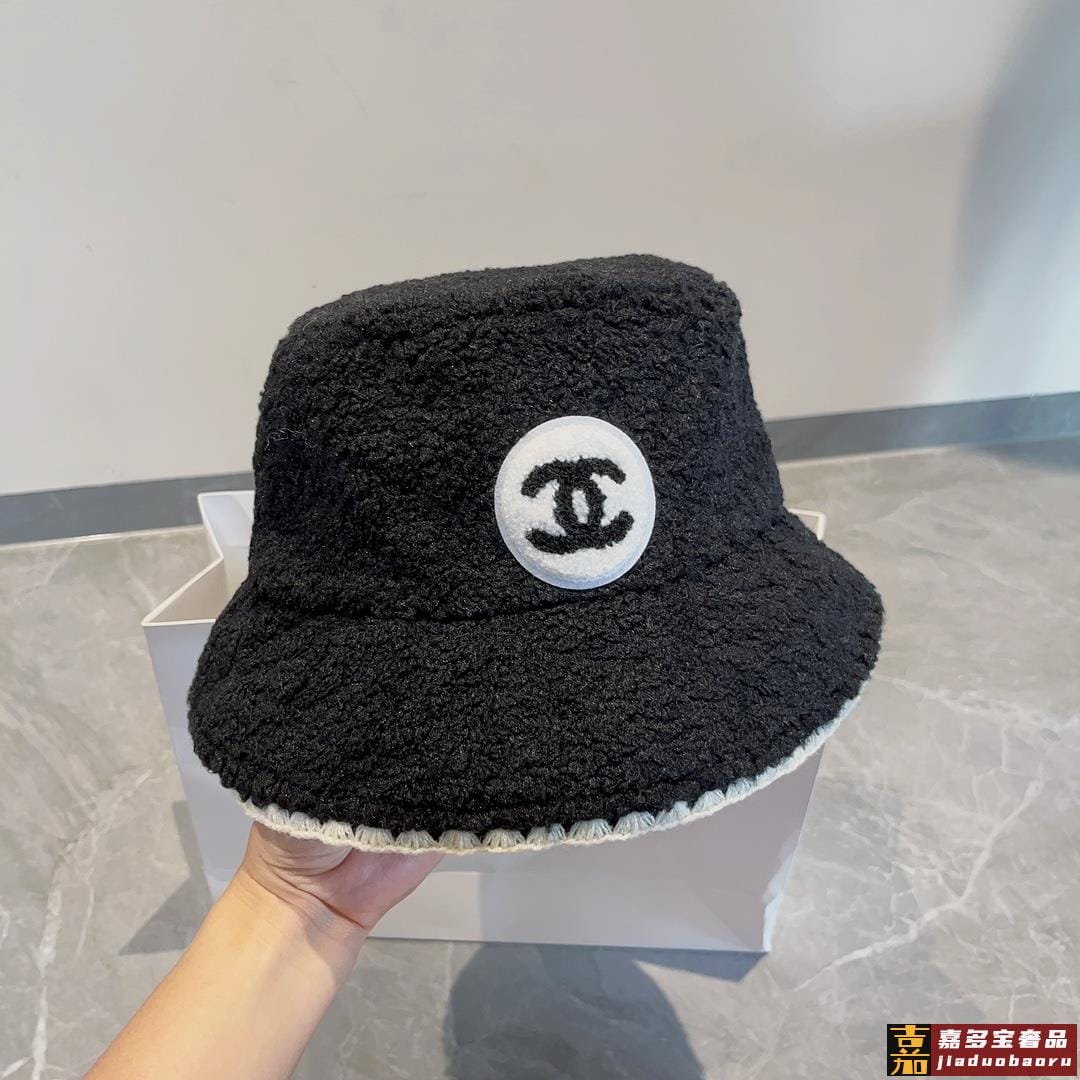香奈儿羊羔毛渔夫帽黑白两色头围