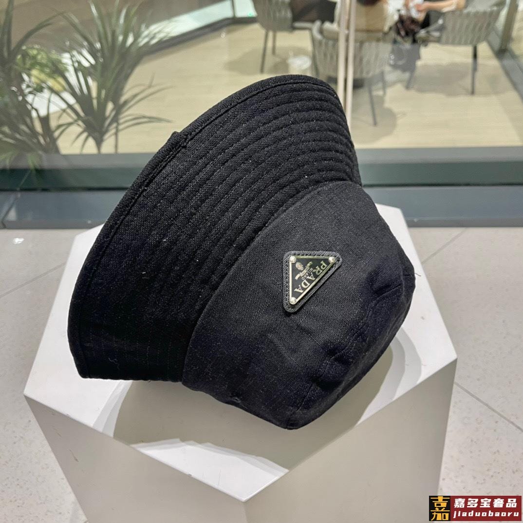 普拉达春夏款麻料渔夫帽大蝴蝶结轻奢感十足黑白小香经典色百搭时