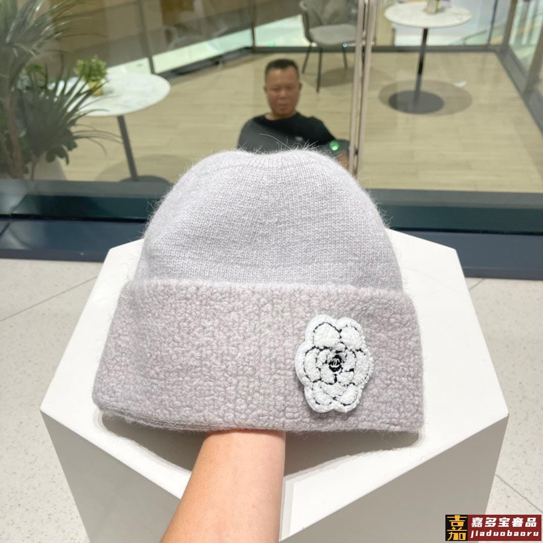 小香新款山茶花针织兔毛羊羔毛毛线帽简约帅气新标志超酷时尚街头
