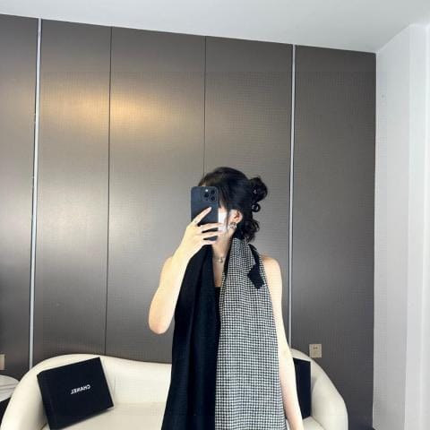 CHANEL香奶奶尾单新款B千鸟格拼色羊绒围巾,直接出欧洲的