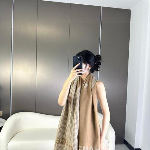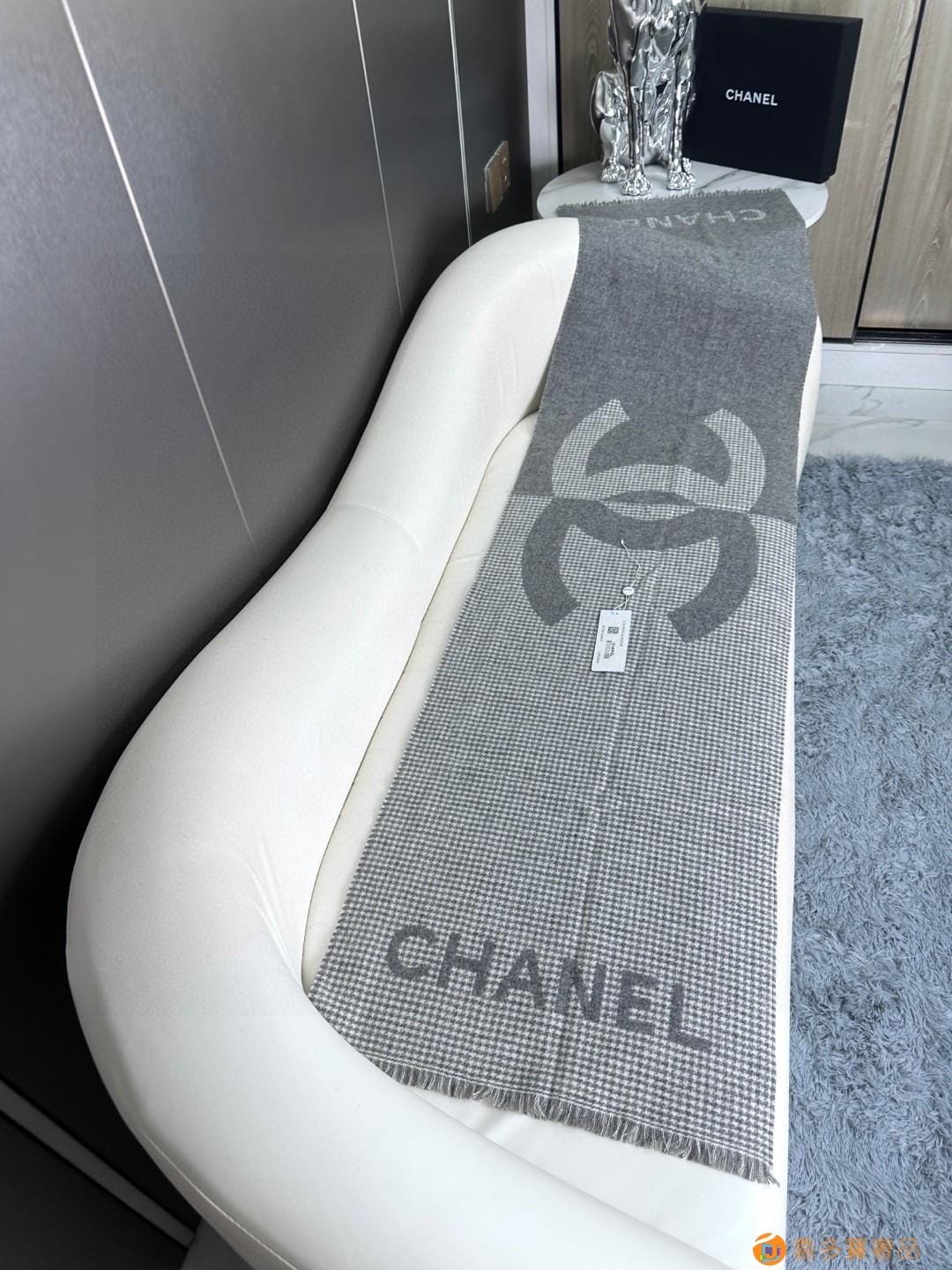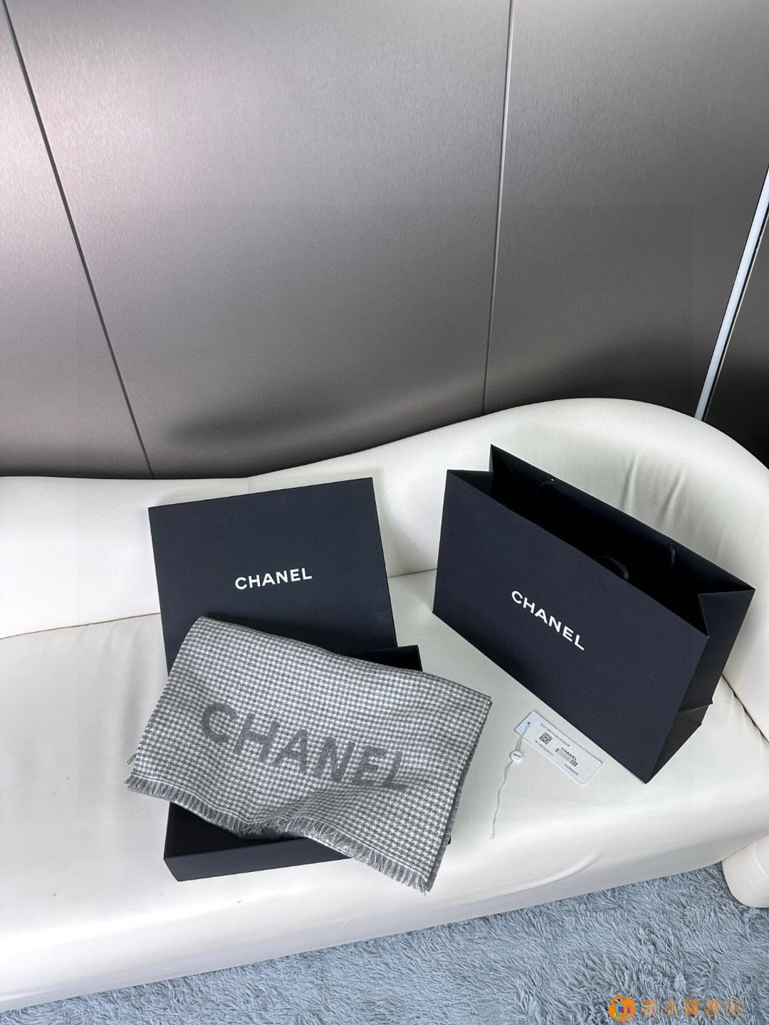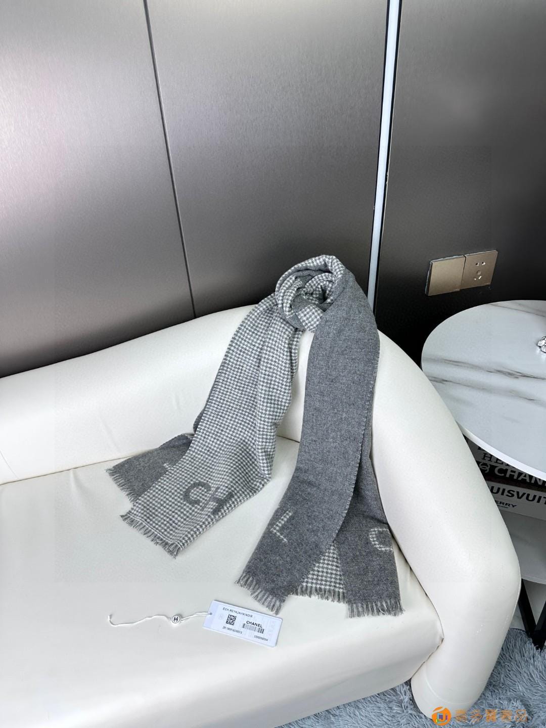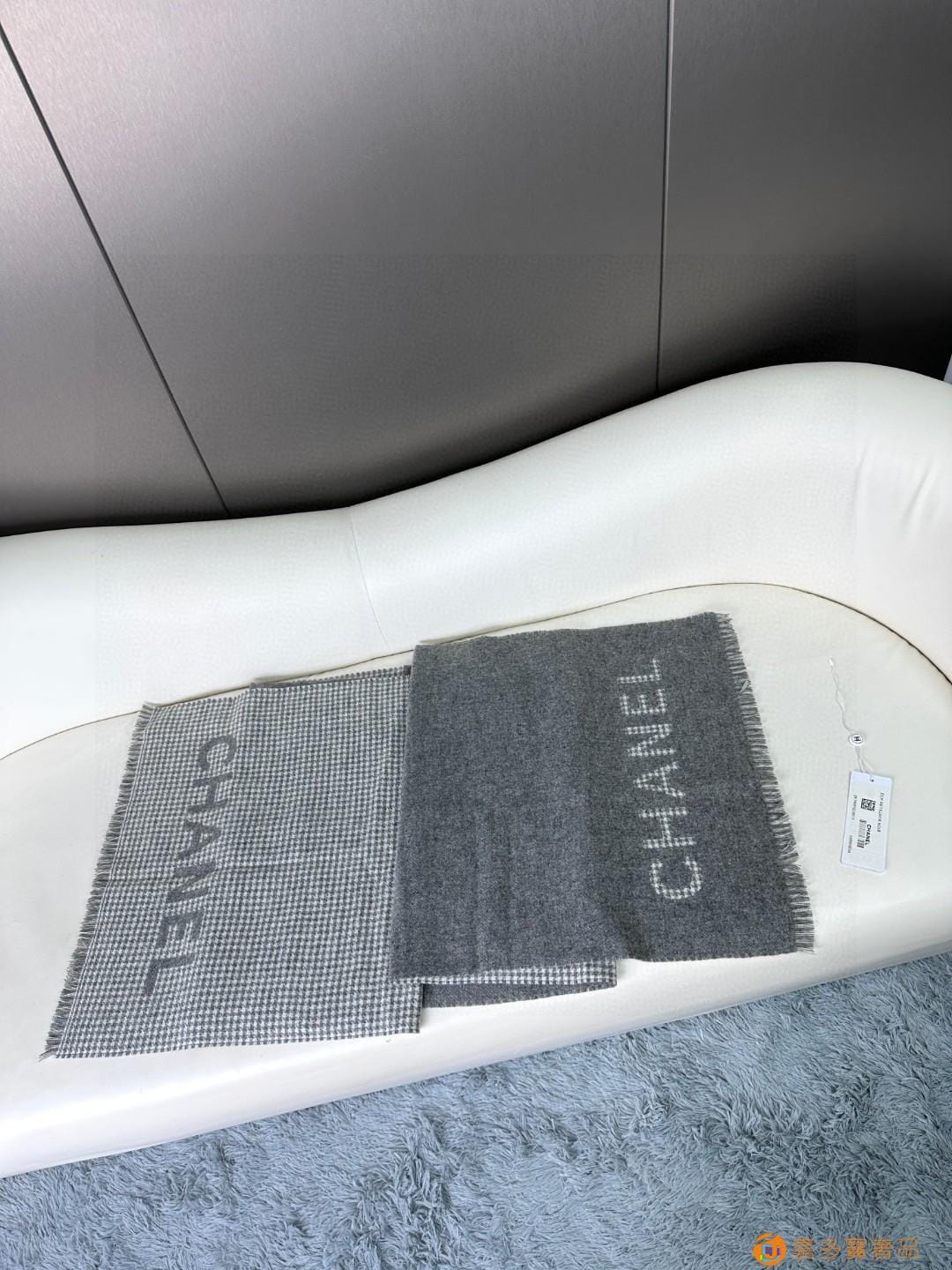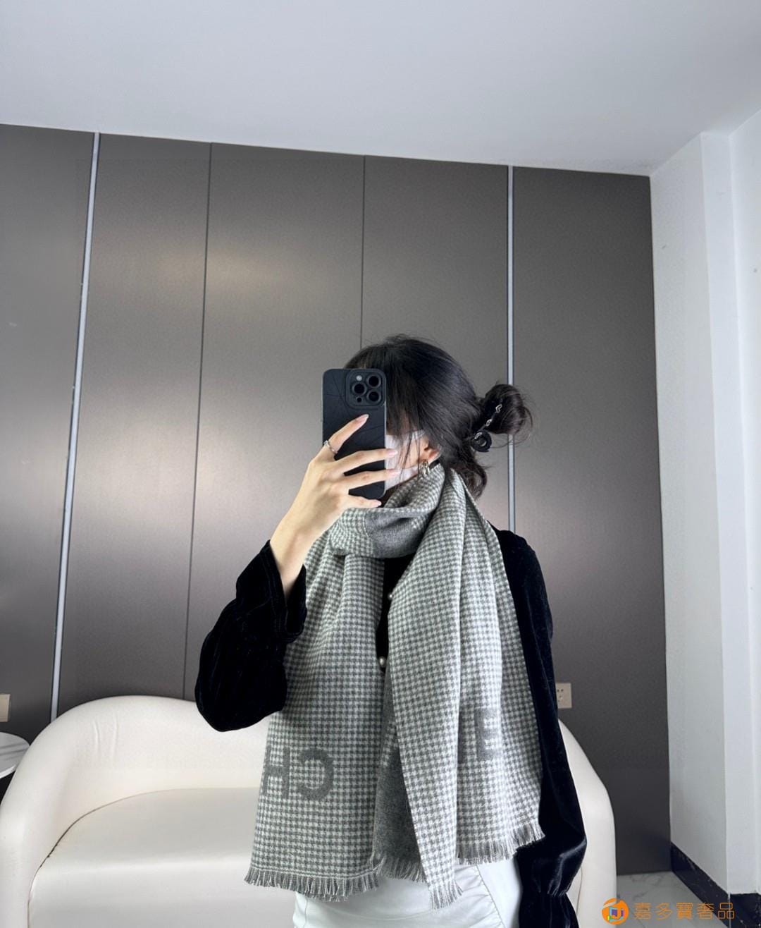CHANEL香奶奶尾单新款B千鸟格拼色羊绒围巾,直接出欧洲的