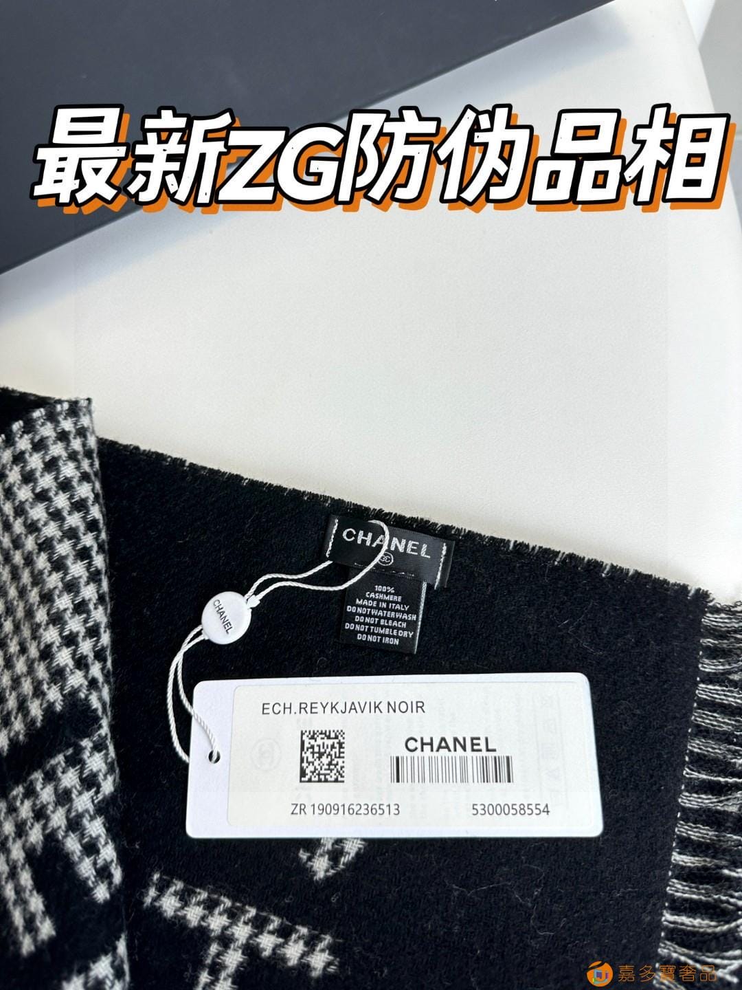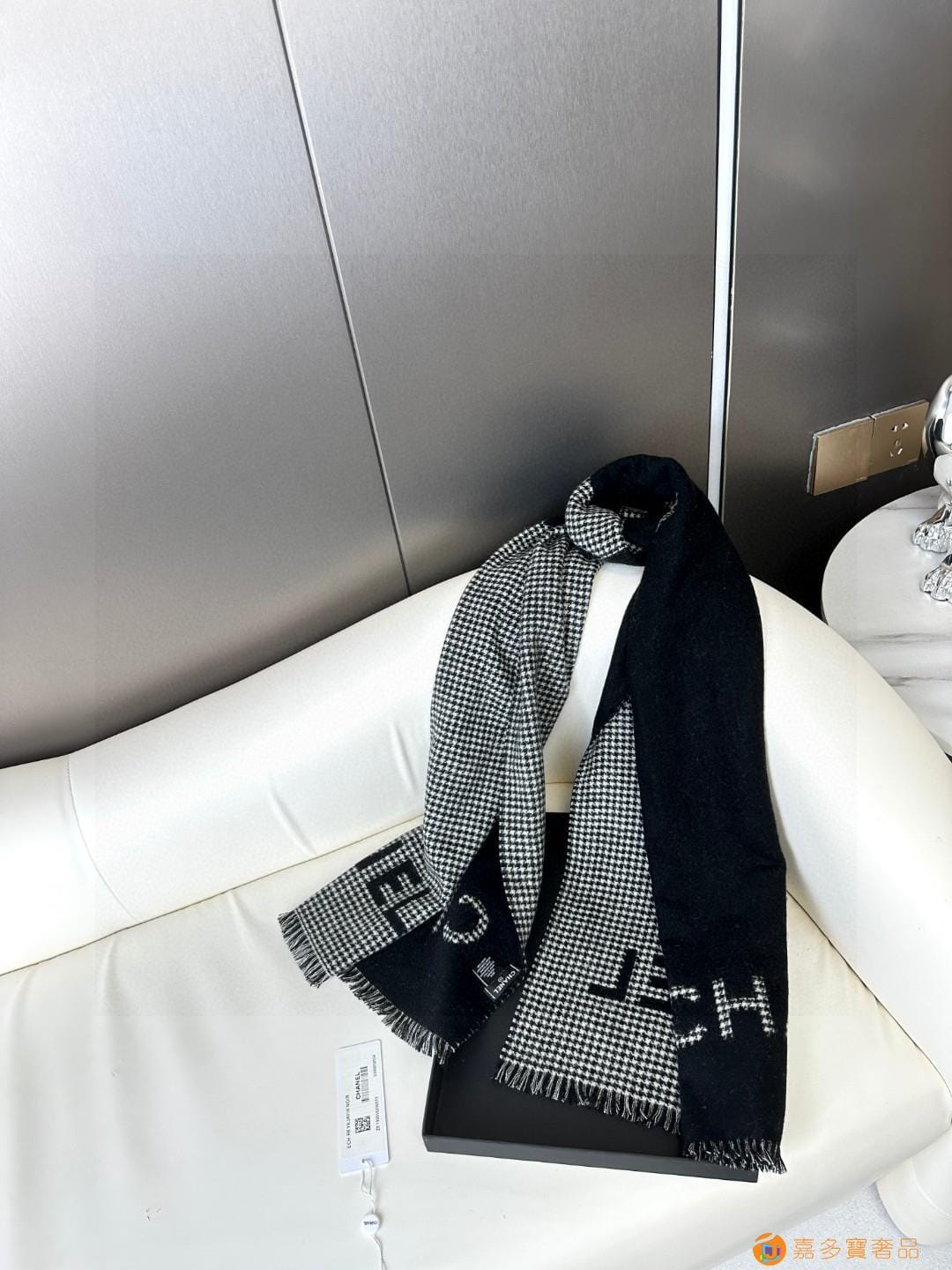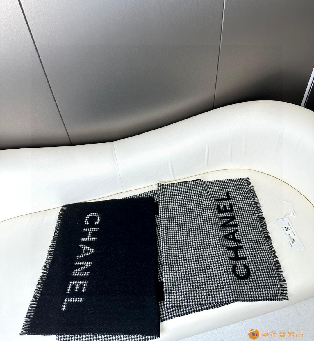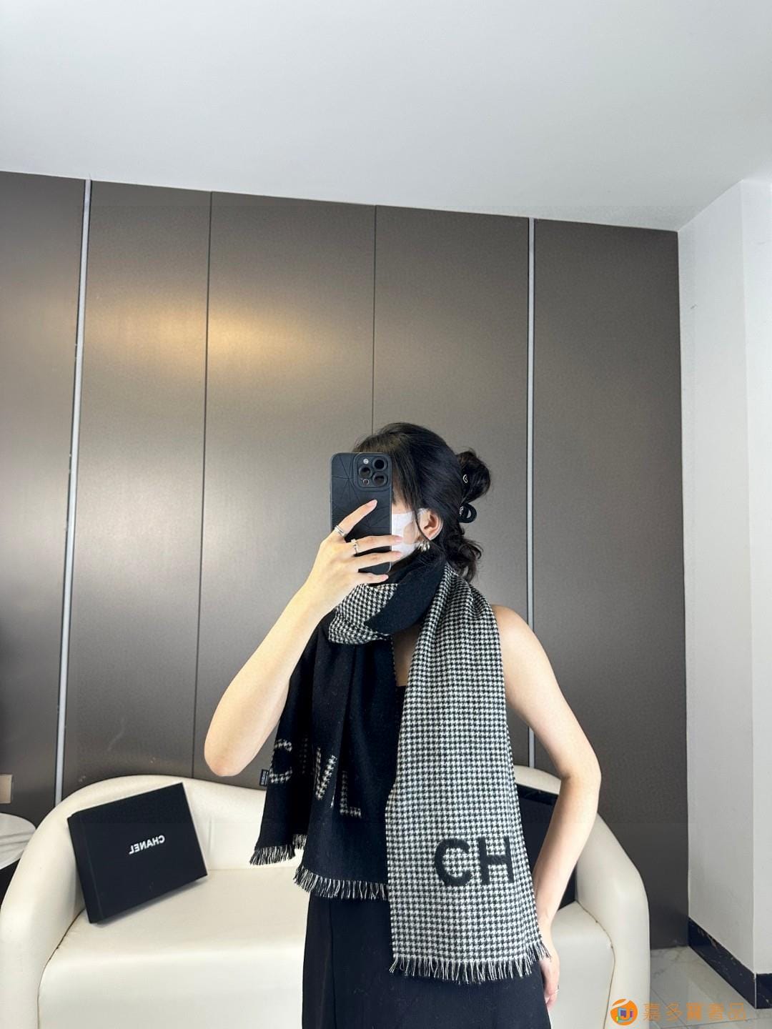 CHANEL香奶奶尾单新款B千鸟格拼色羊绒围巾,直接出欧洲的