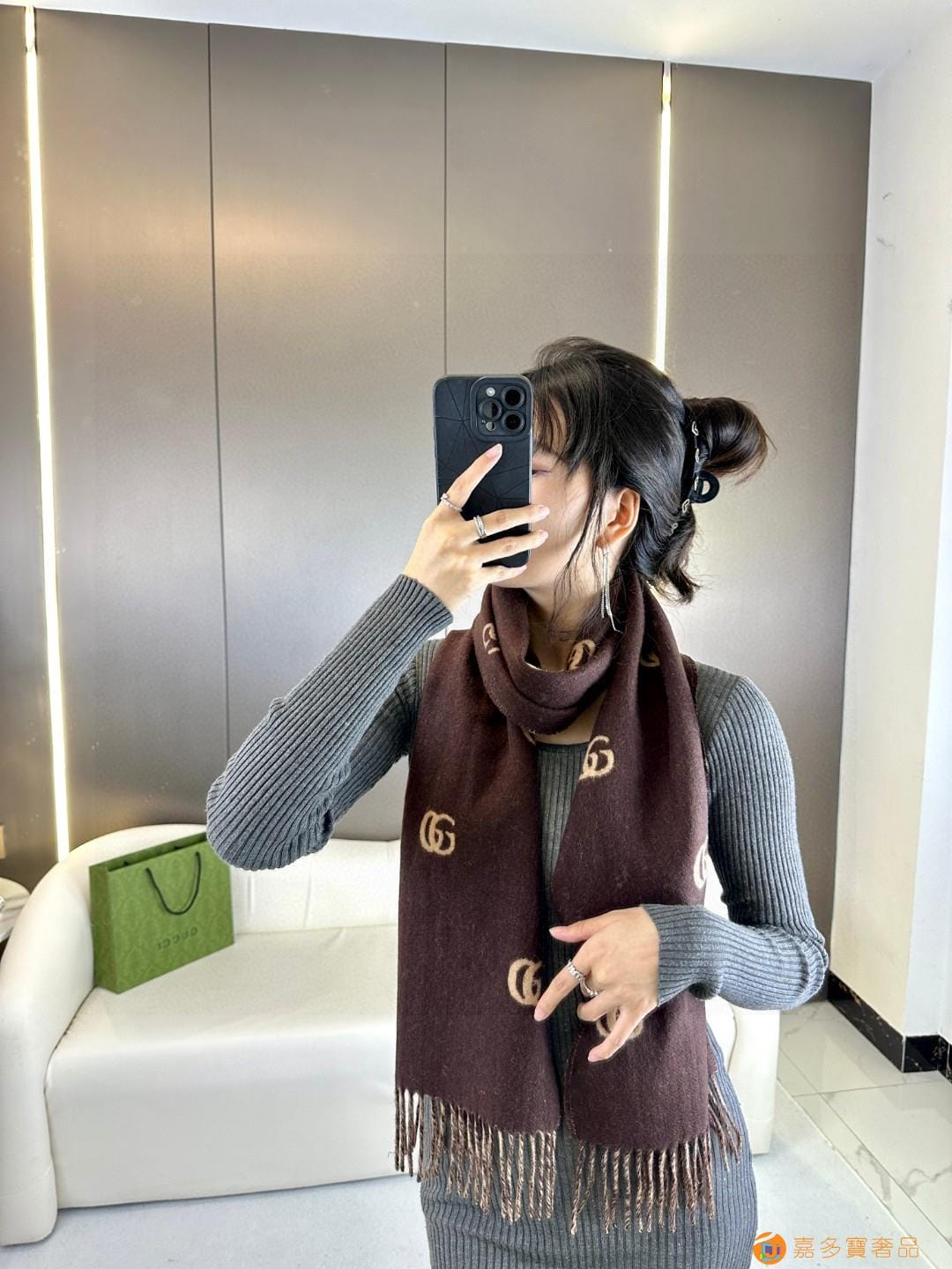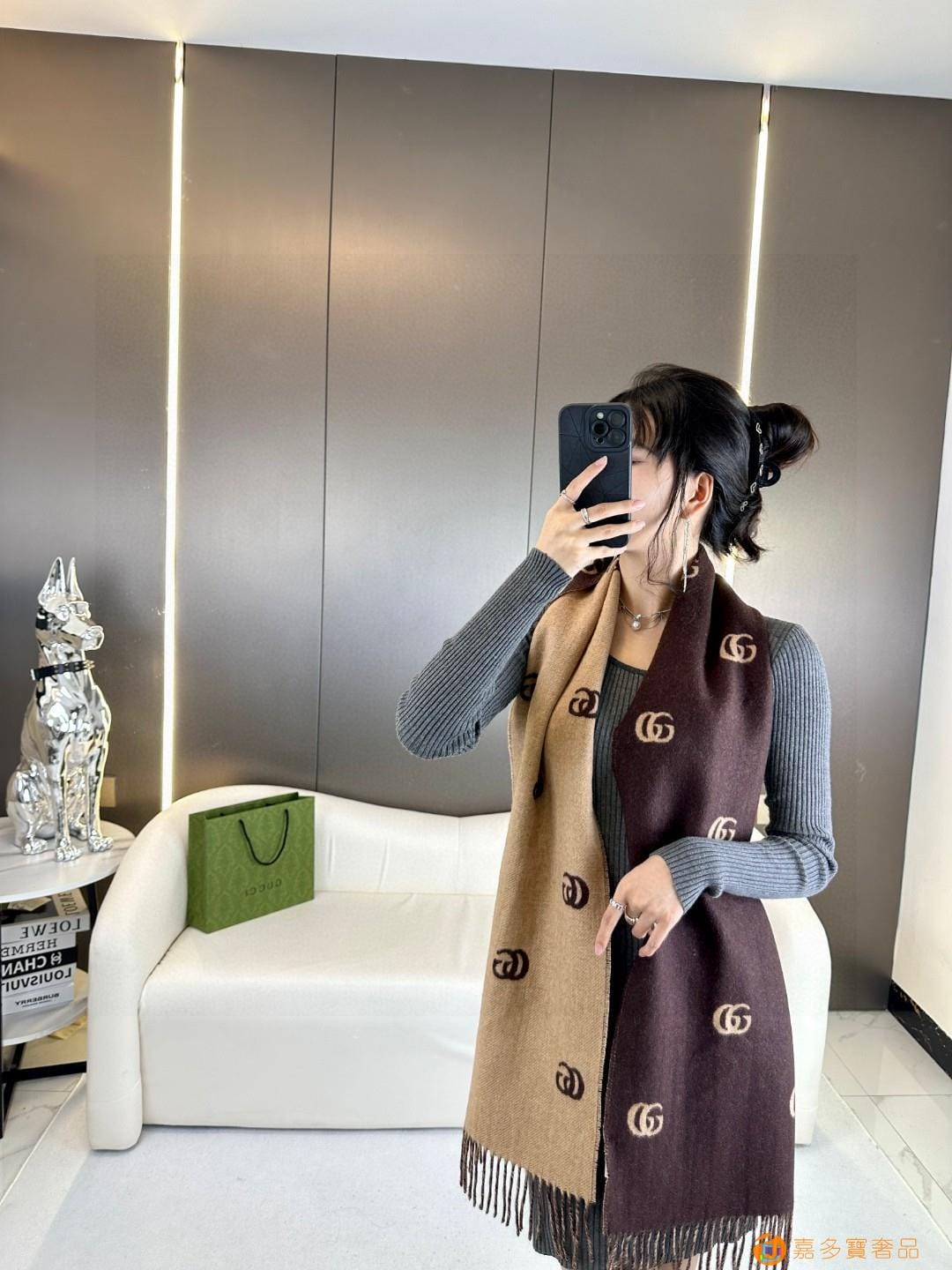 GUCCl 年新款到!代购级别!最新双面两用围巾,GG标识作