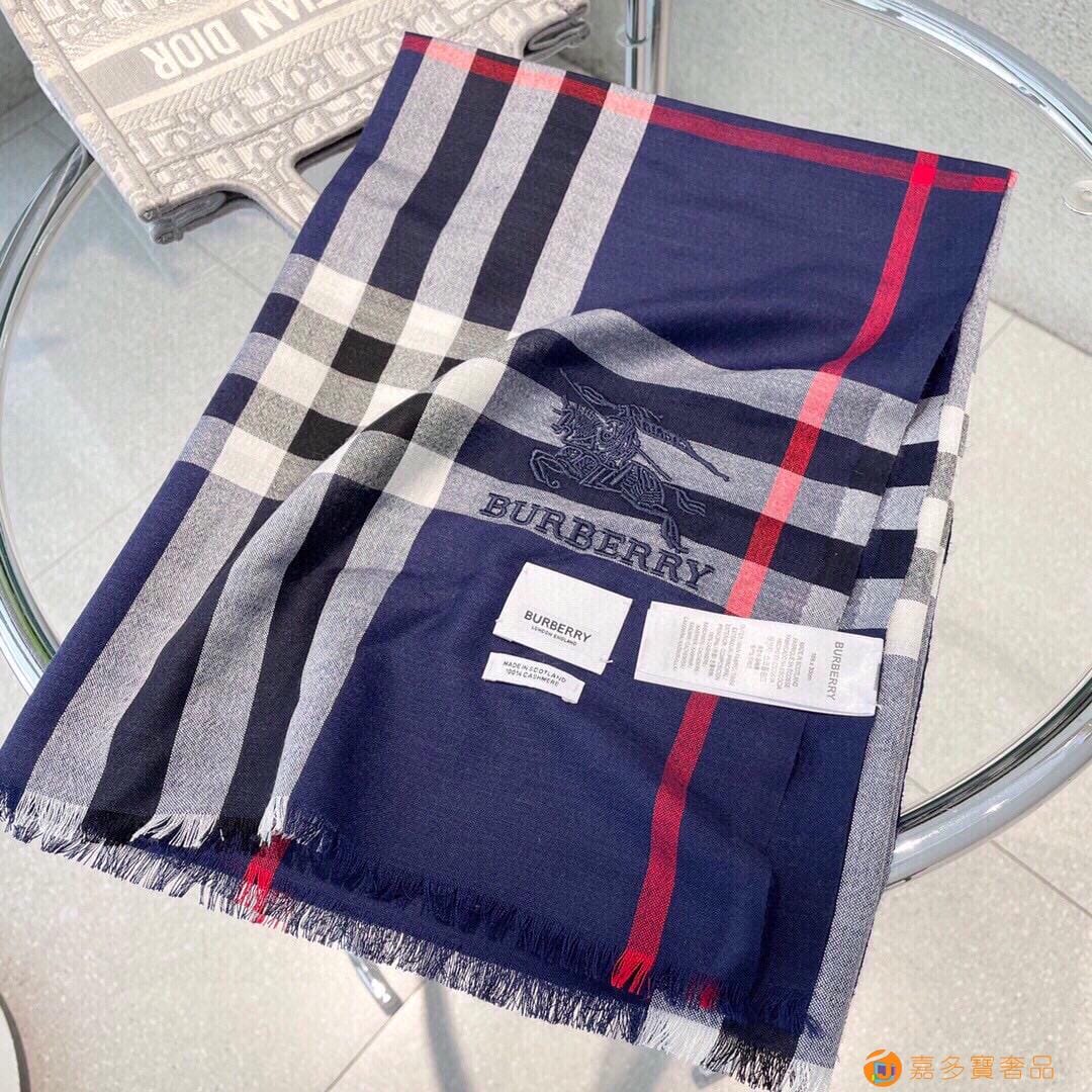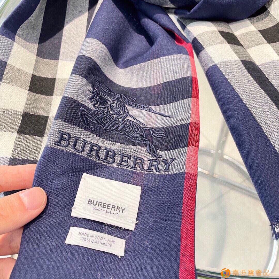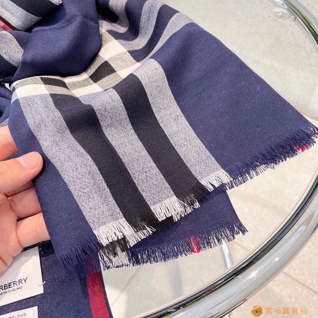 巴宝莉精制的轻盈围巾,选用格纹羊绒面料制成;边缘处装饰精致丝