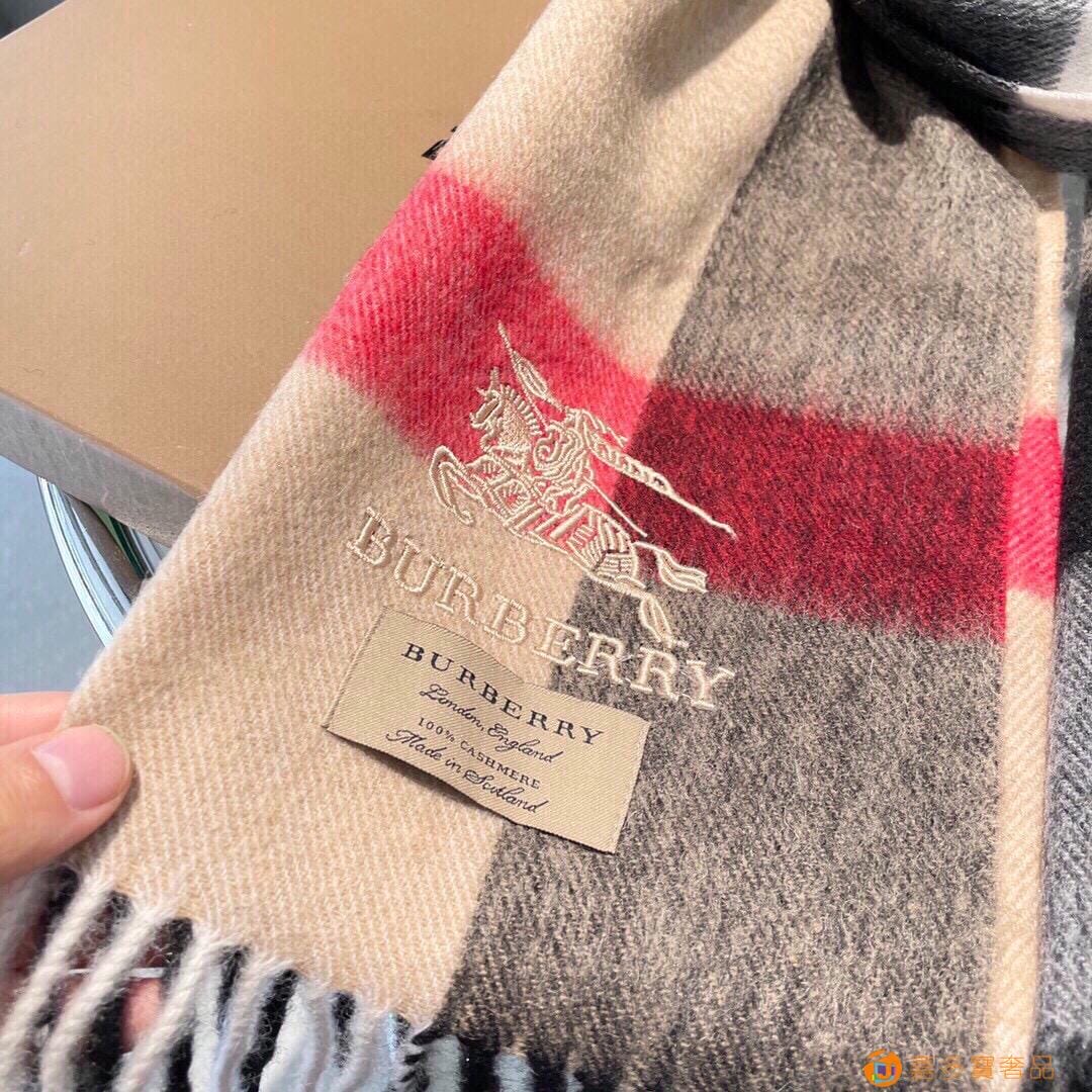 王牌口碑burberry深度水波纹经典羊绒格子围巾?专柜最新