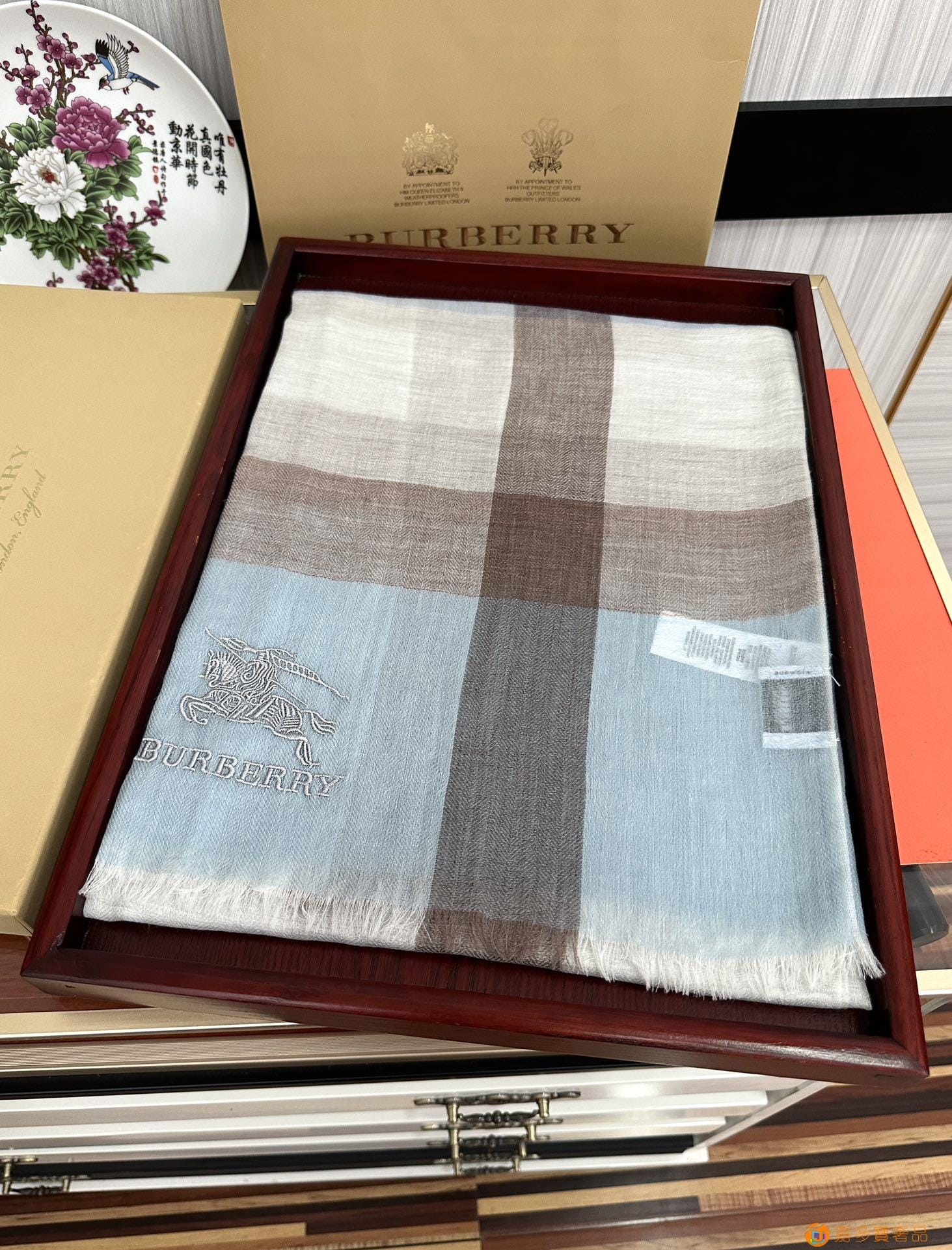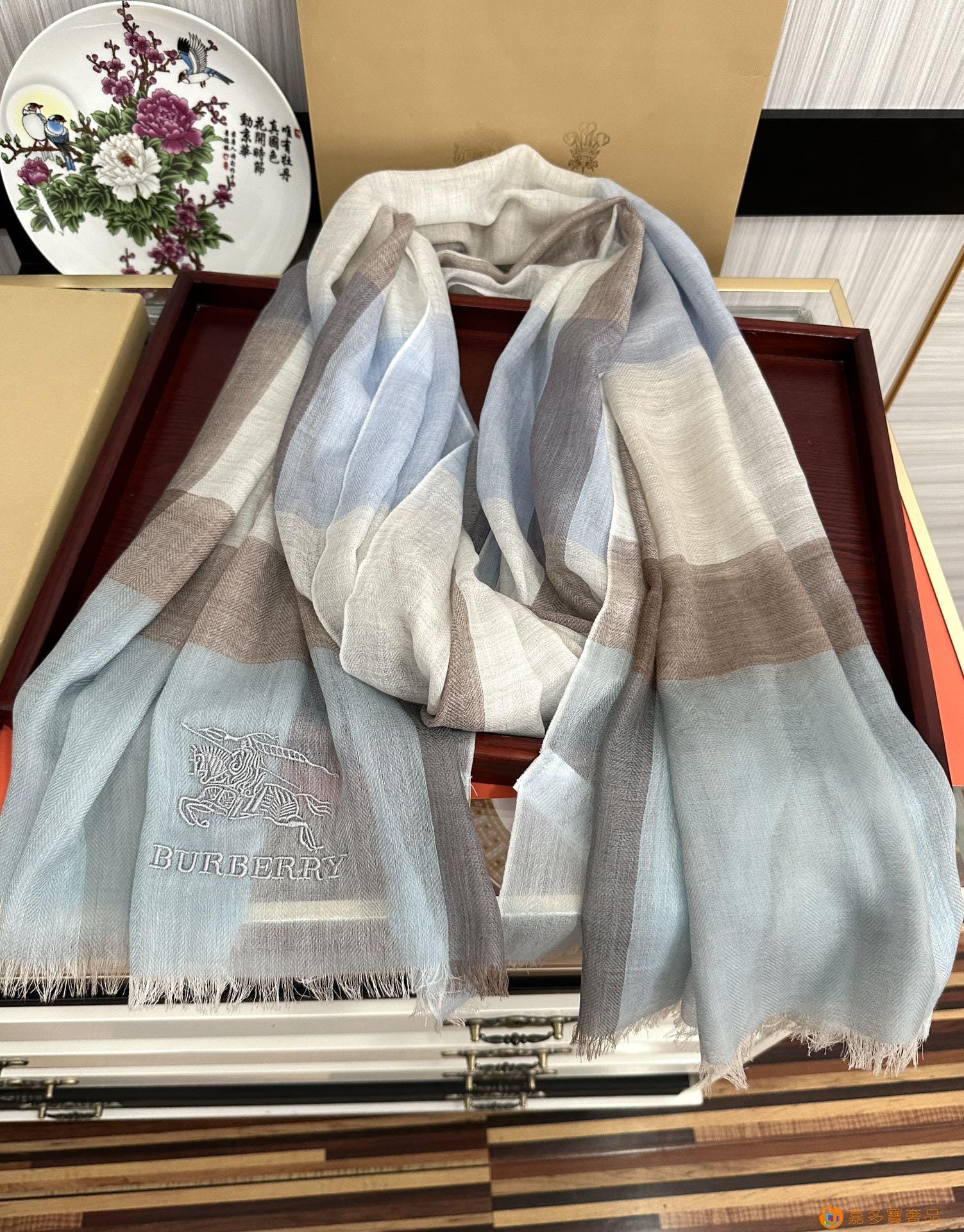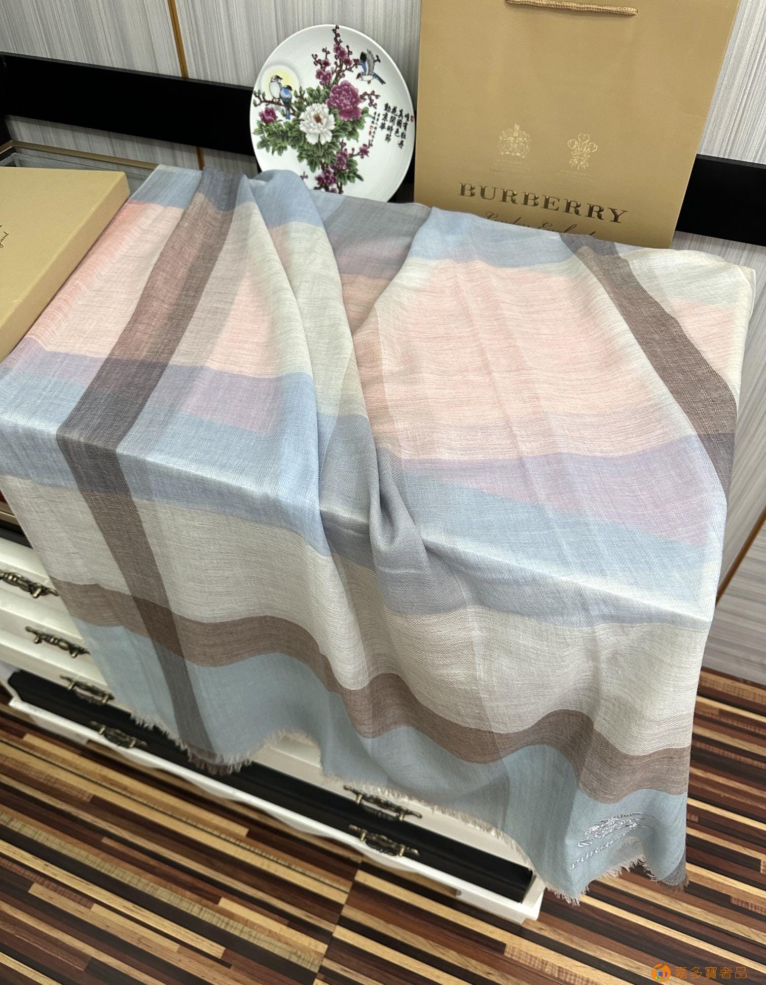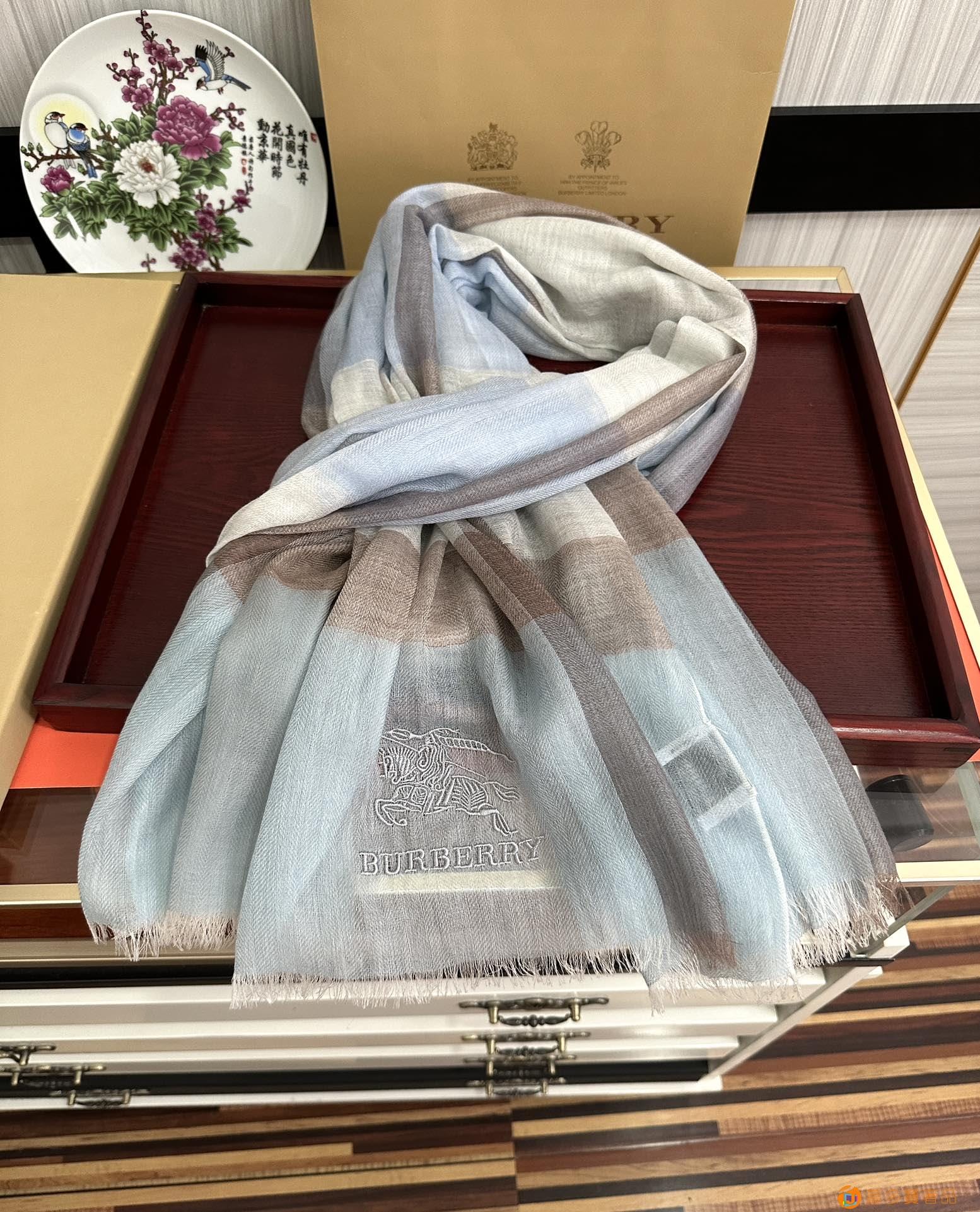 王牌口碑burberry深度水波纹经典羊绒格子围巾?专柜最新