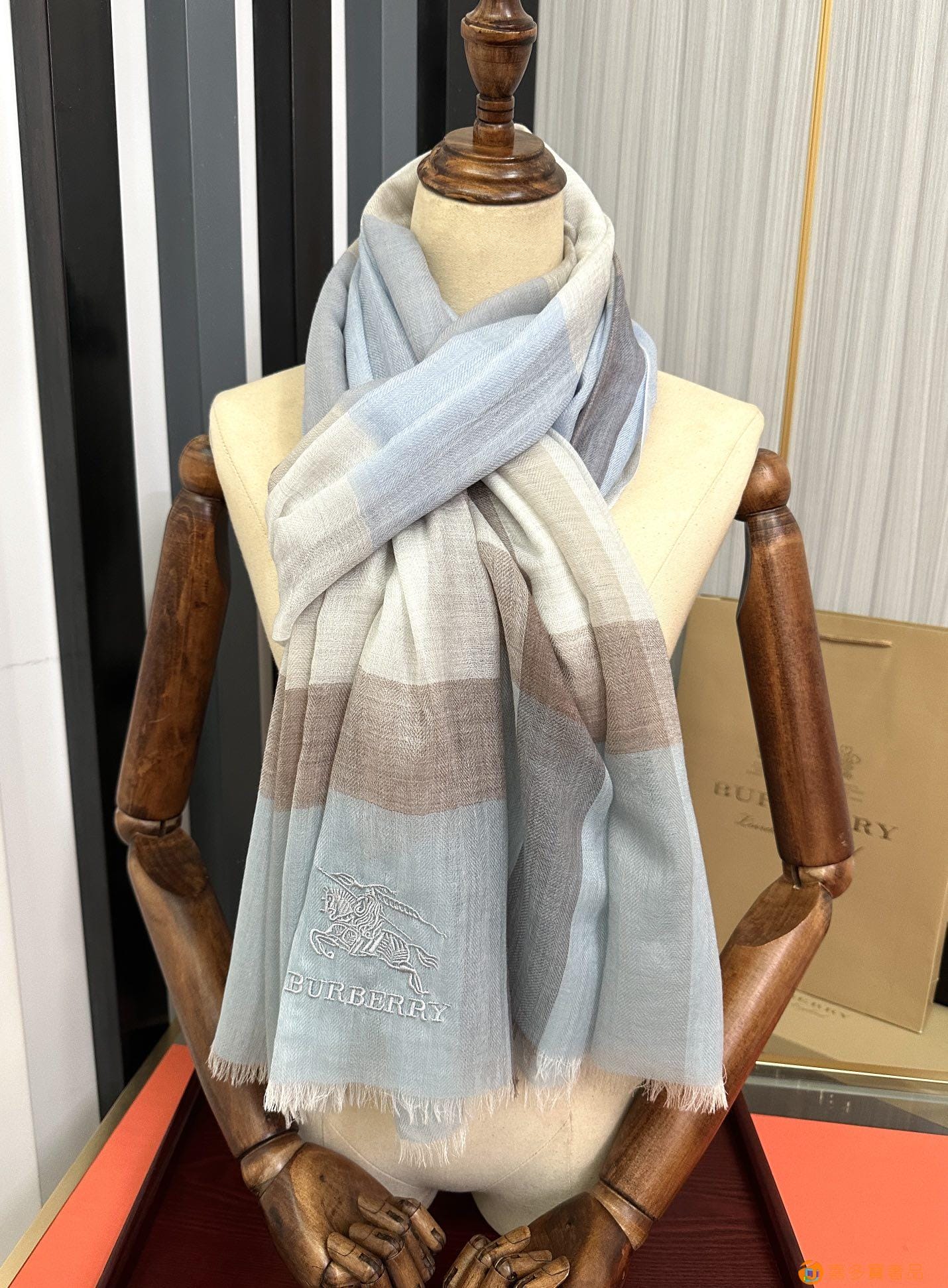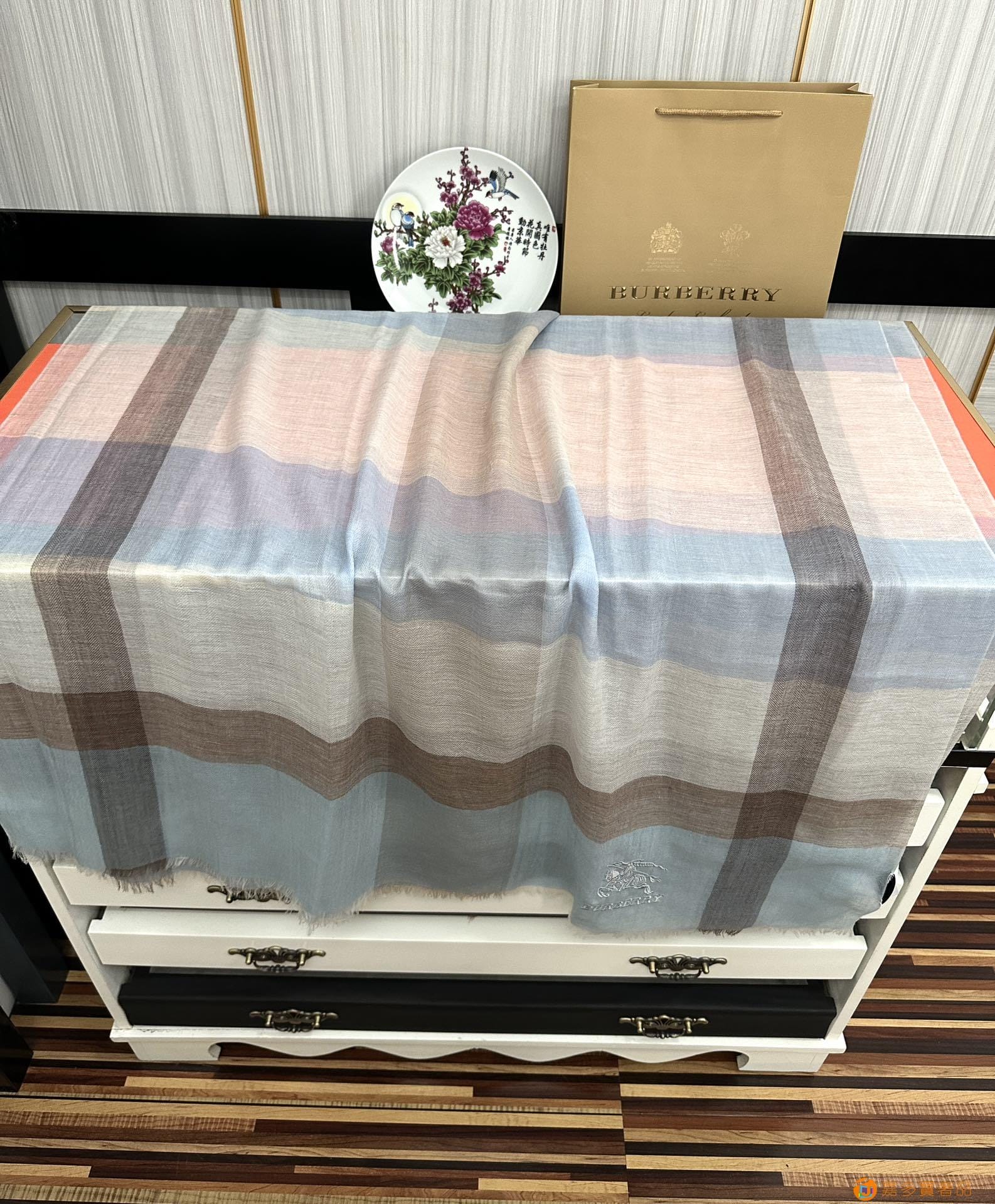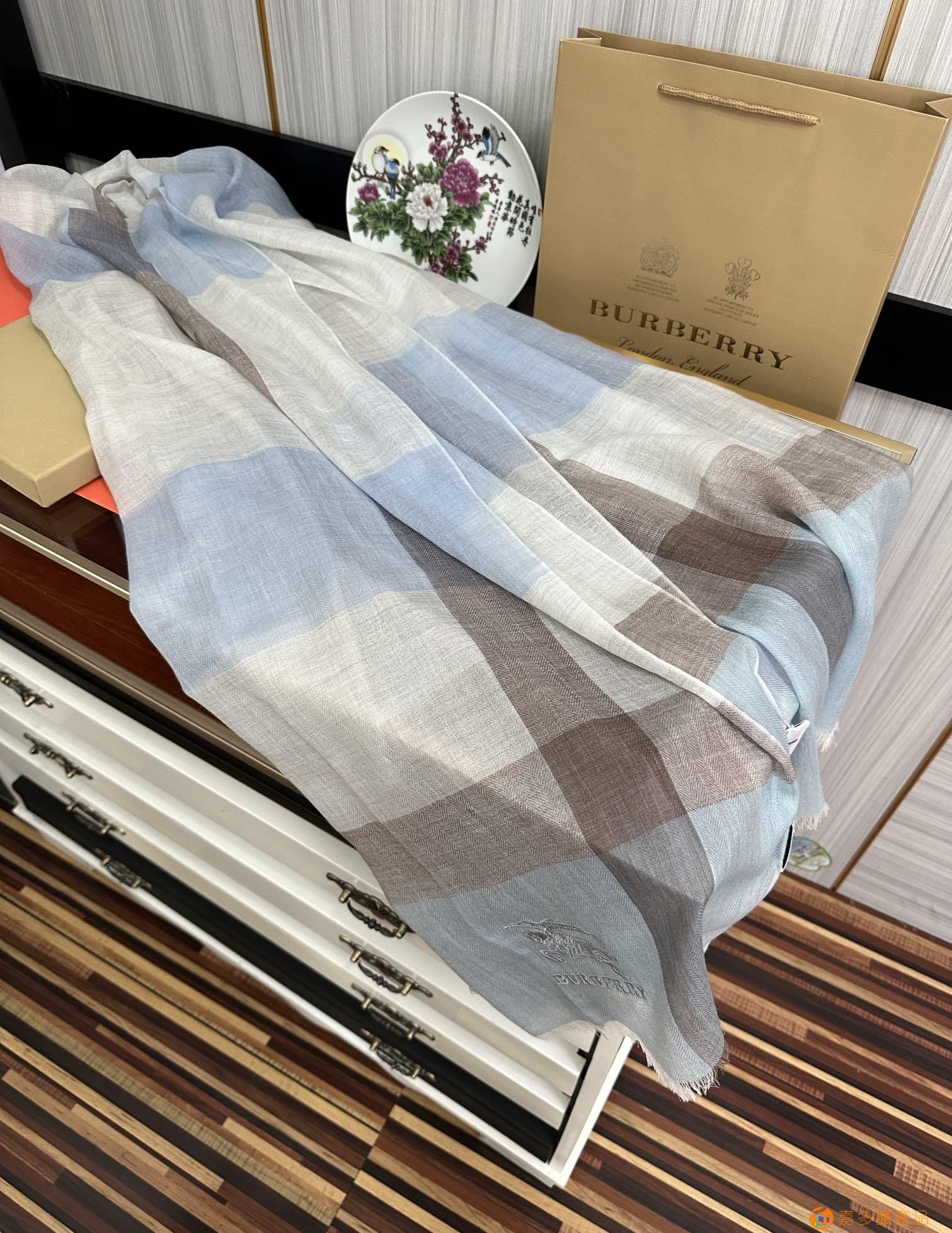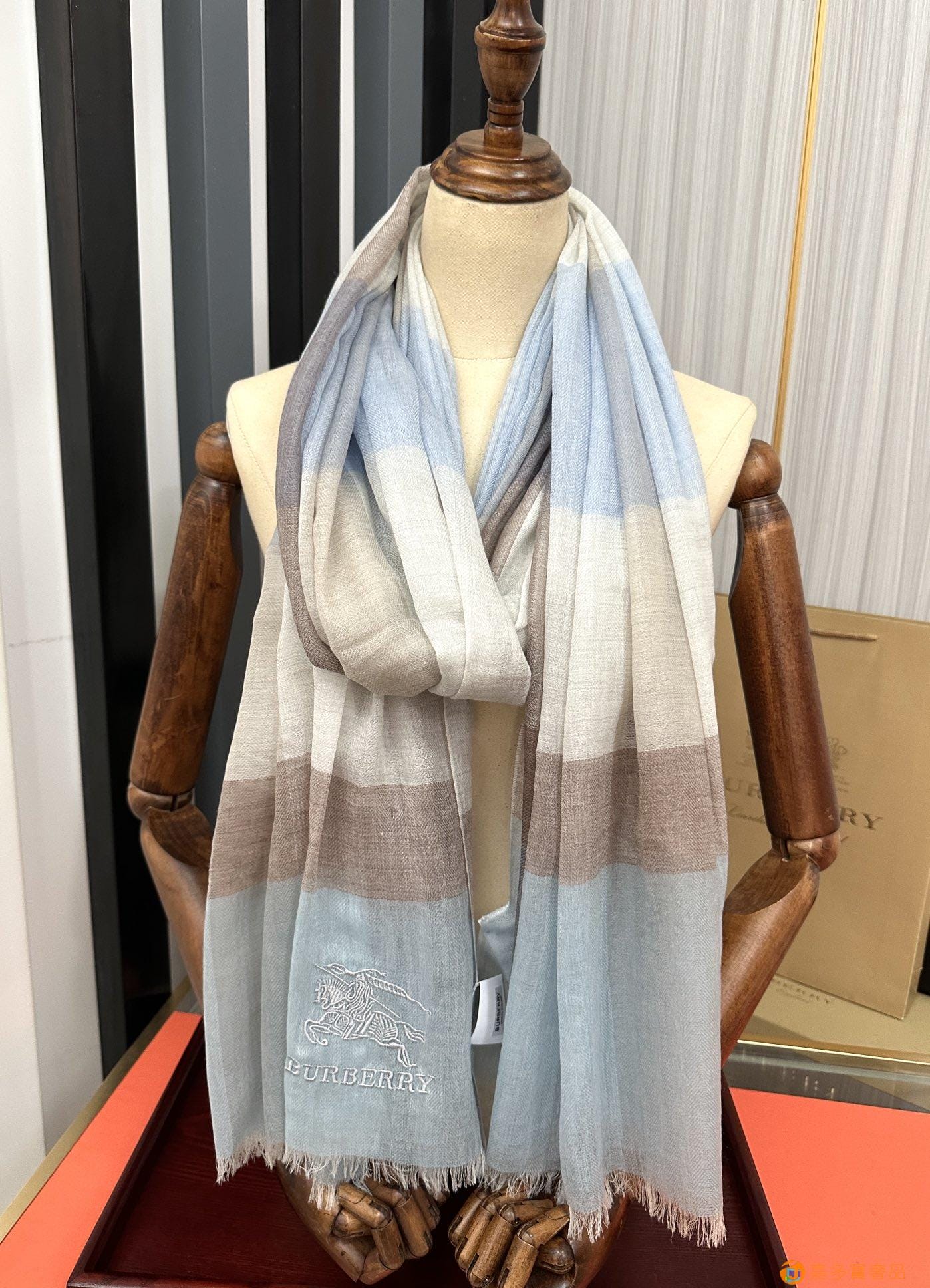 王牌口碑burberry深度水波纹经典羊绒格子围巾?专柜最新