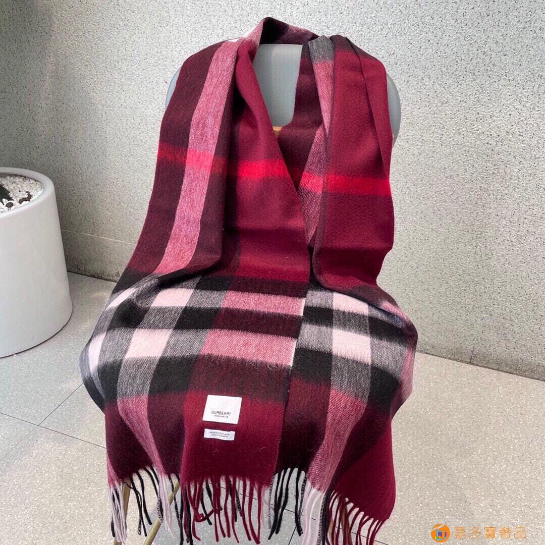 王牌口碑burberry深度水波纹经典羊绒格子围巾?专柜最新