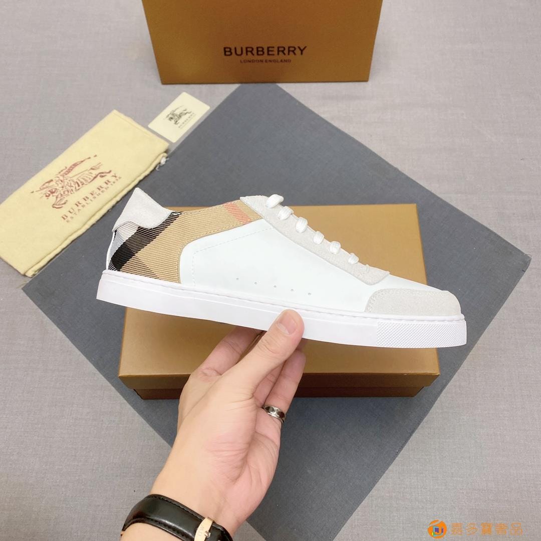最新爆款【巴宝莉】休闲鞋上新了。采用透气防水布十小牛皮,羊皮
