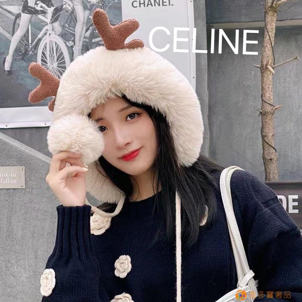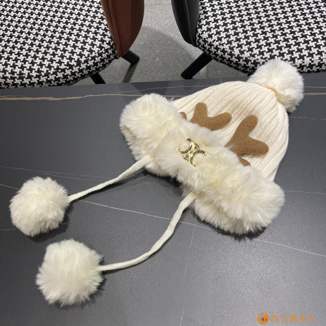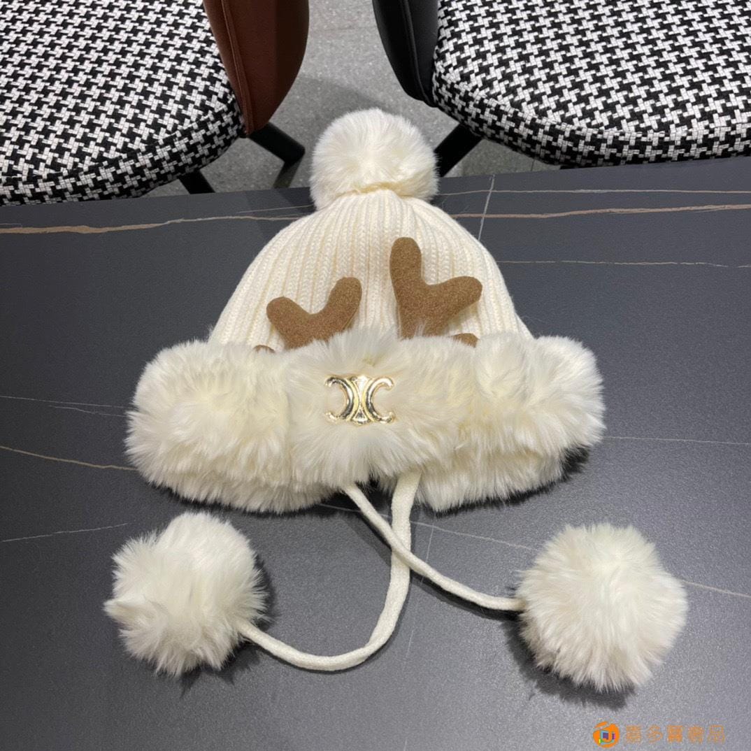 赛琳CELINE新款圣诞鹿角保暖针织帽韩版护耳帽子秋冬季三毛