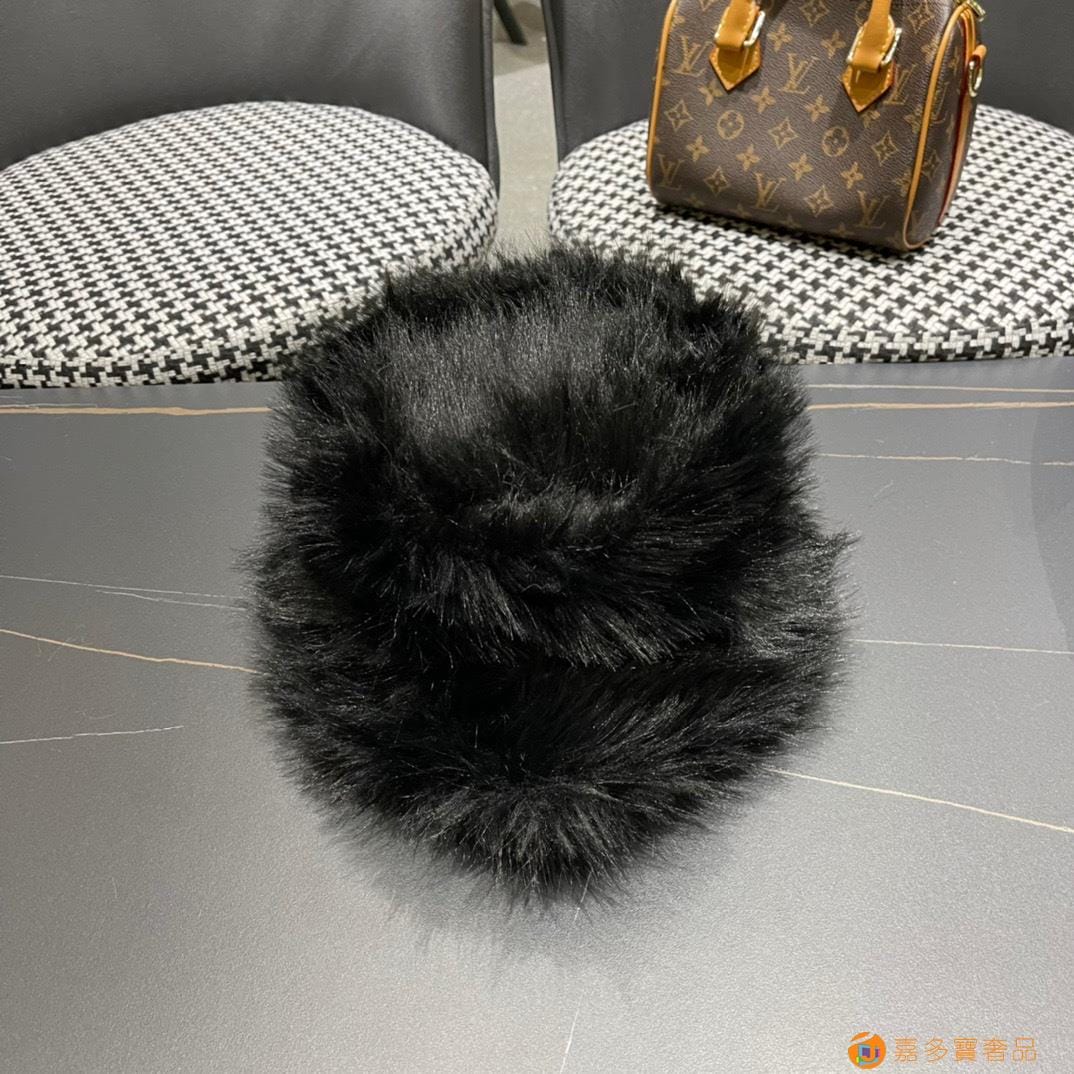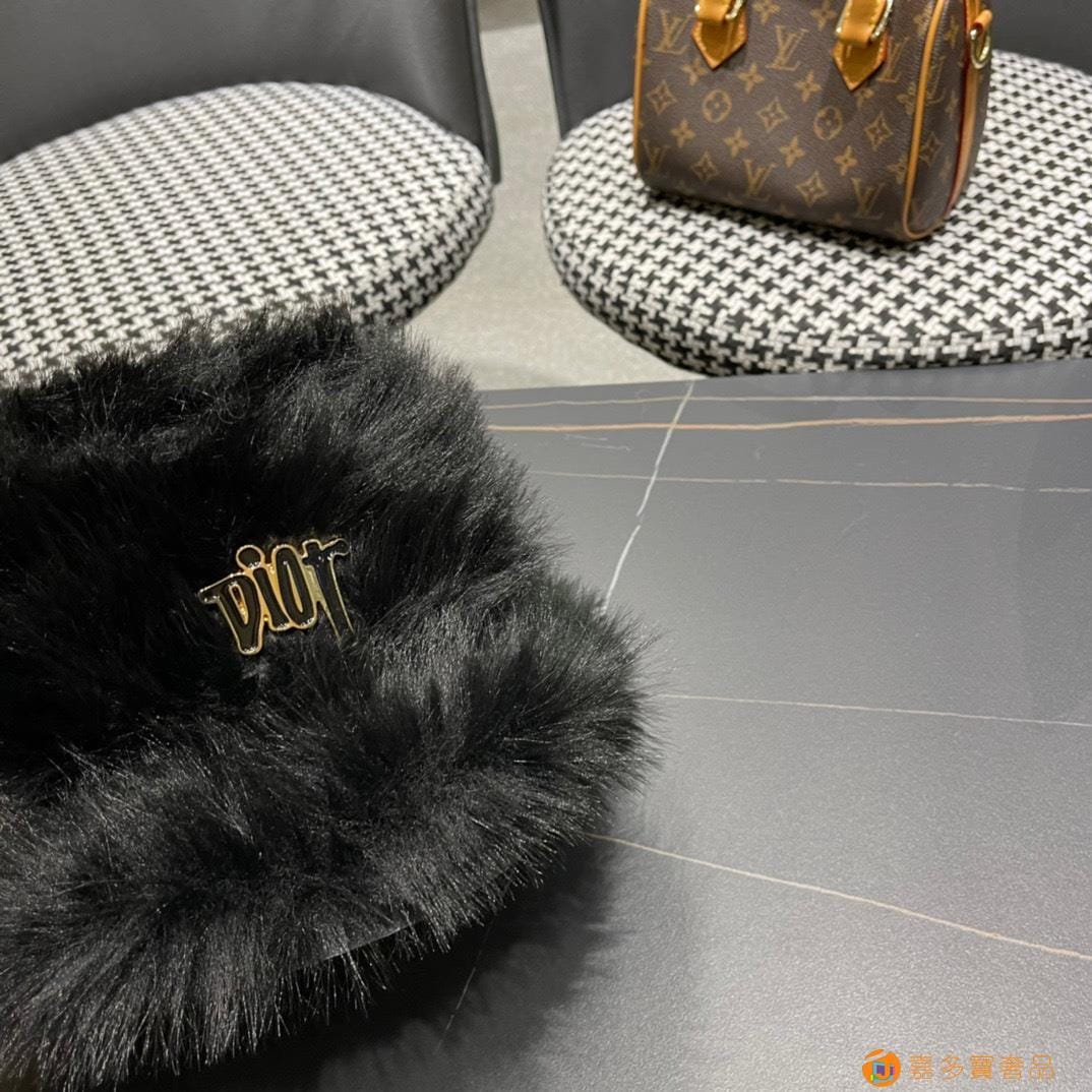 迪奥Dior仿皮草貂毛帽子女秋冬季毛绒渔夫帽卡其高级显脸小保
