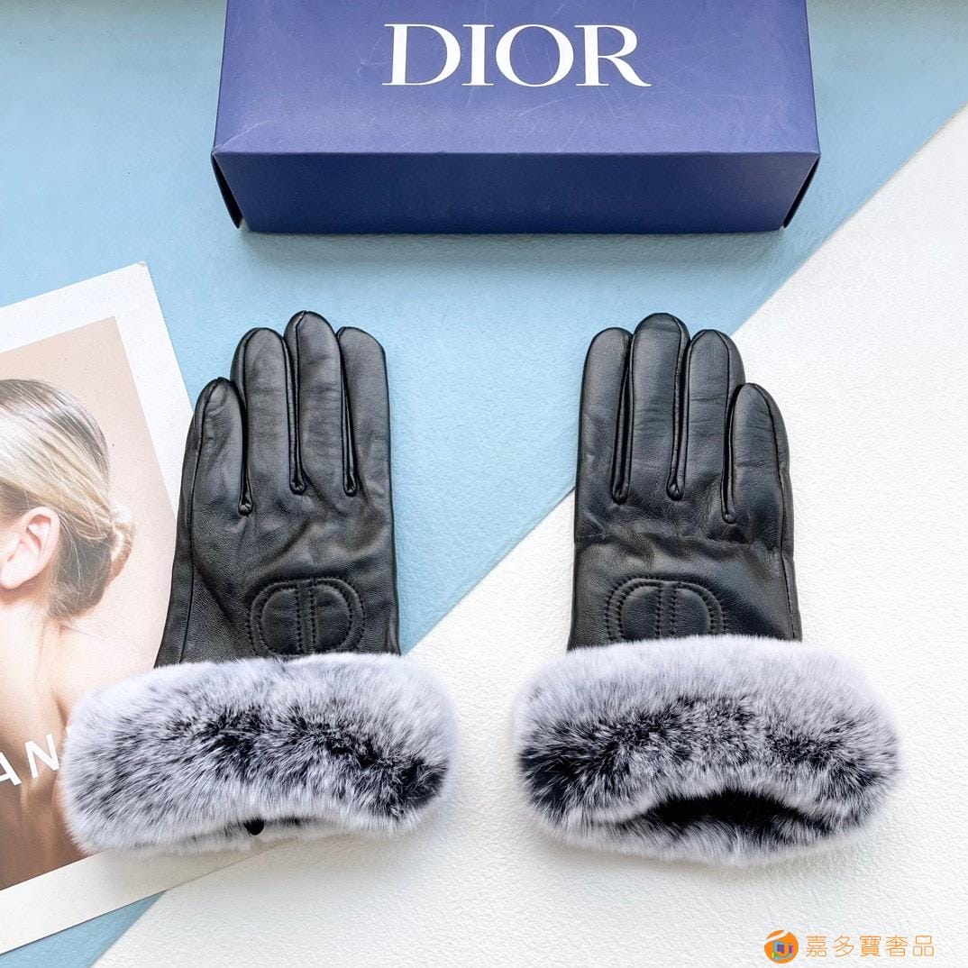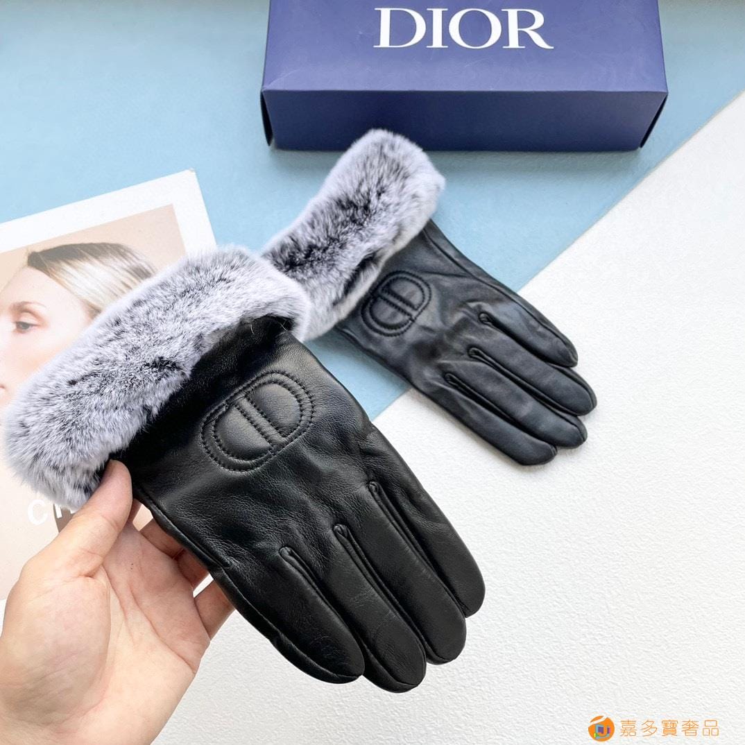配包装?女款??迪奥DIDR新款秋冬懒兔毛CD羊皮刺绣手套?