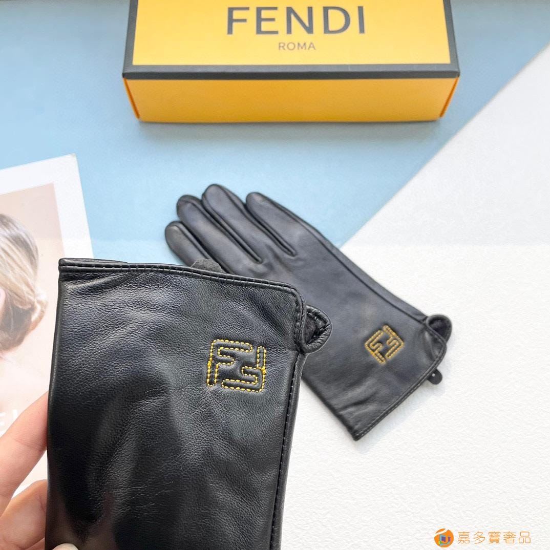 配包装?女款?芬迪FENDI?秋冬羊皮刺绣手套?手机触屏,值