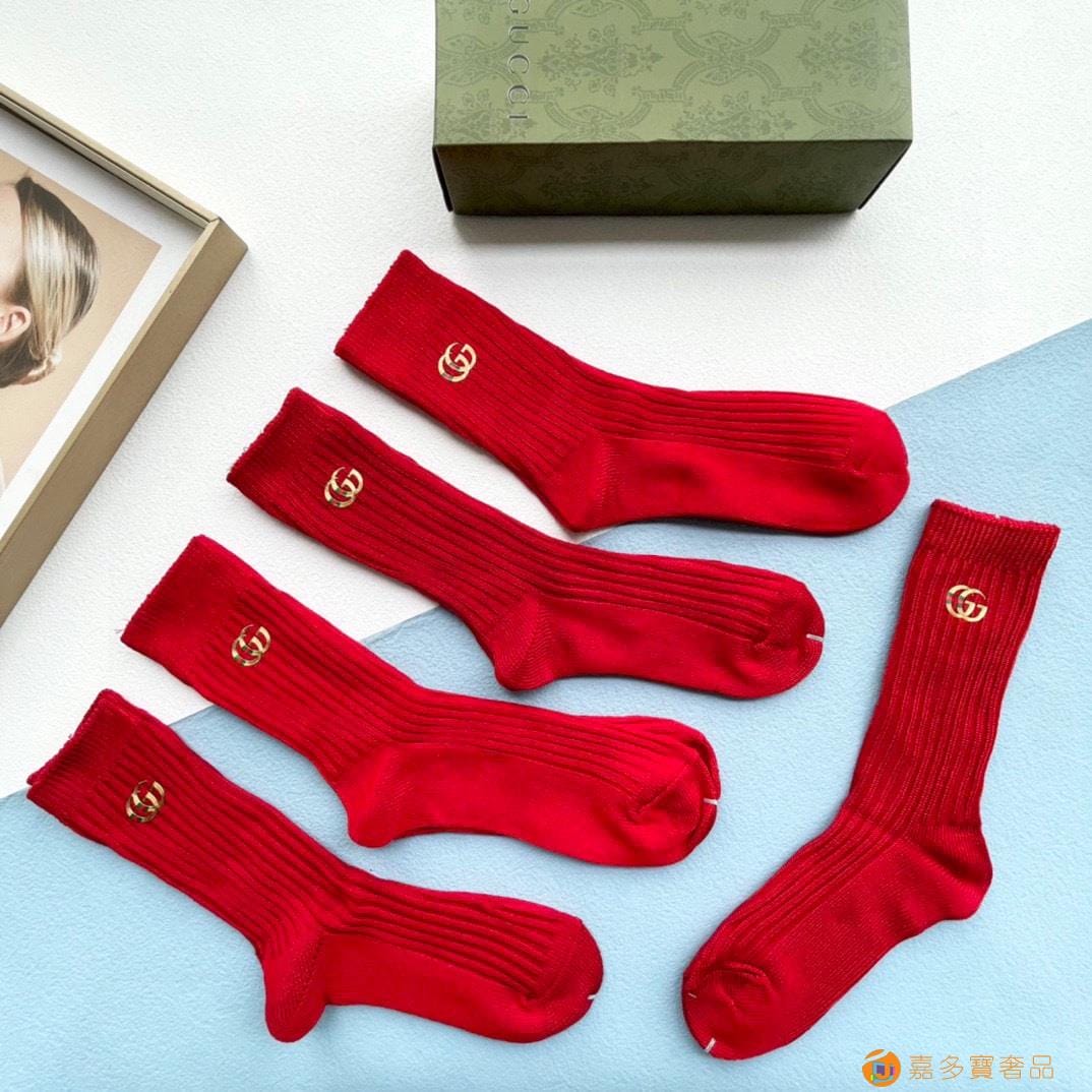 配包装【一盒五双】?GUCCI 古奇 ?红红火火过年袜?专柜