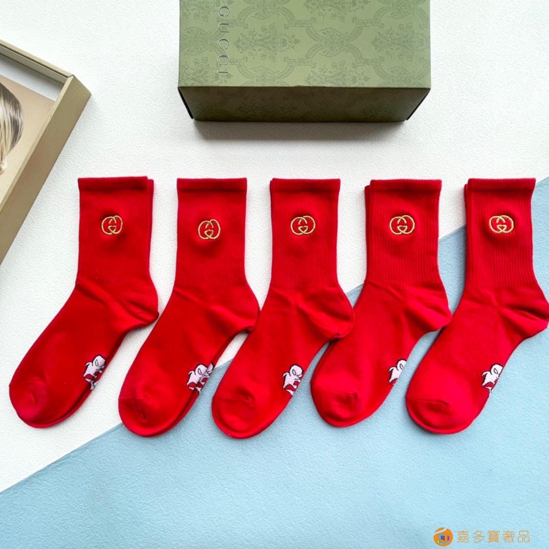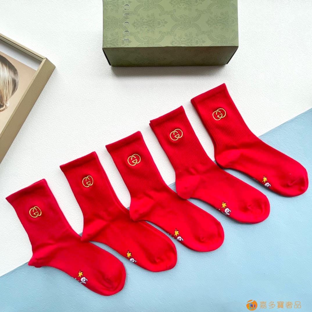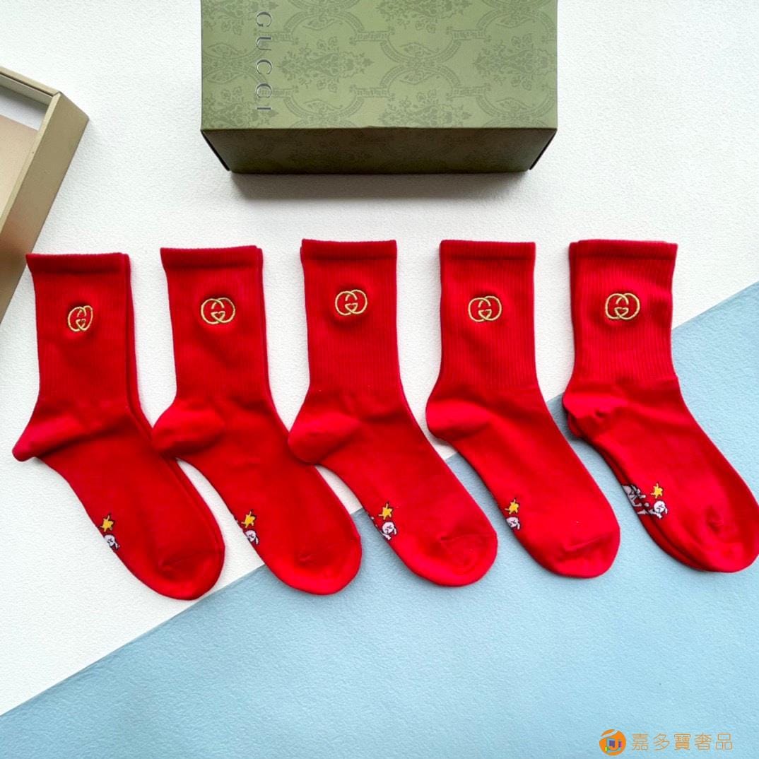 配包装【一盒五双】?GUCCI 古奇 ?红红火火过年袜?专柜