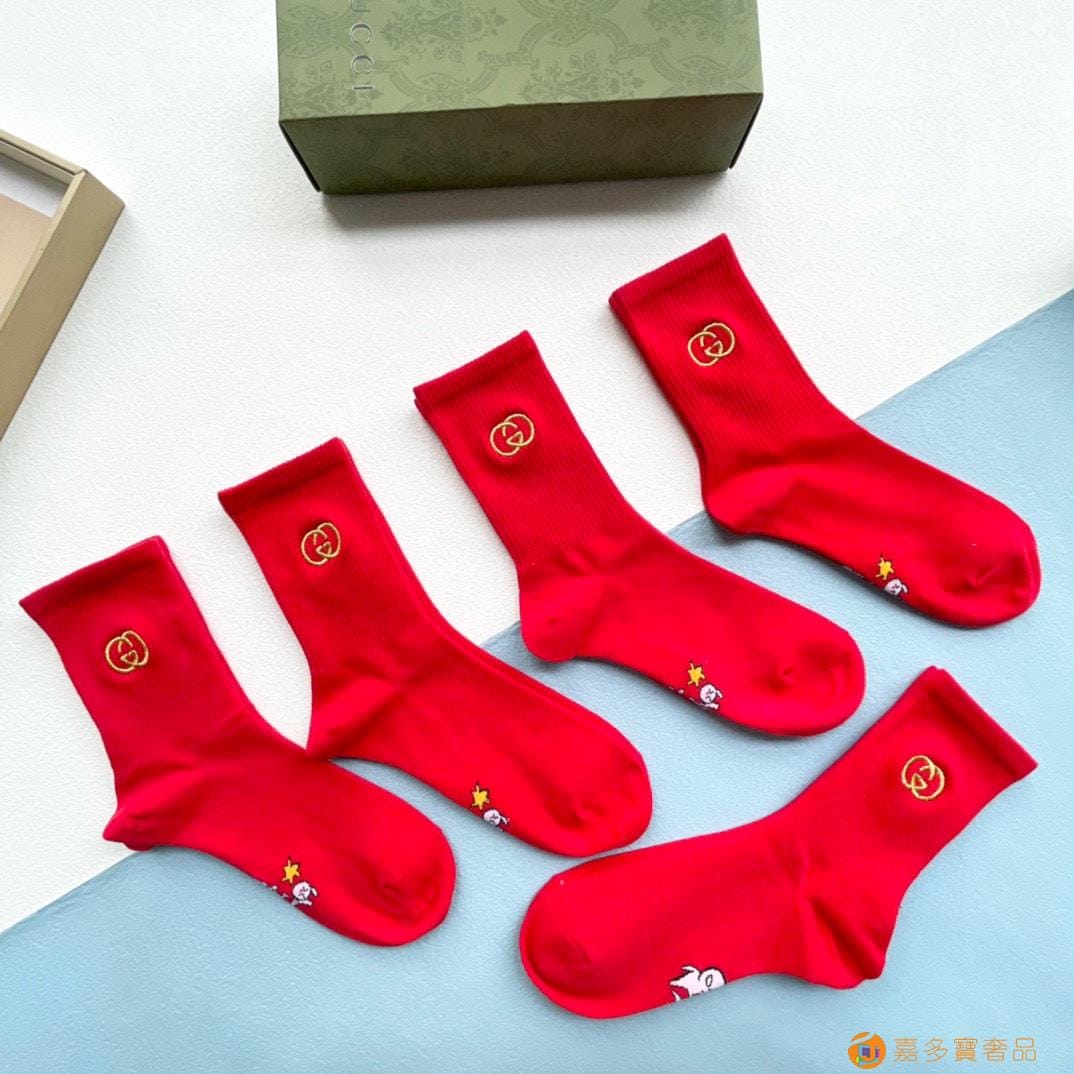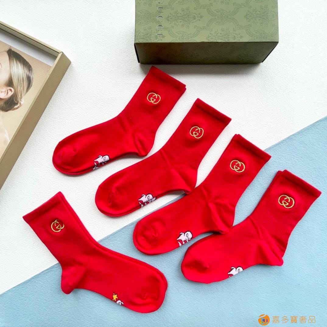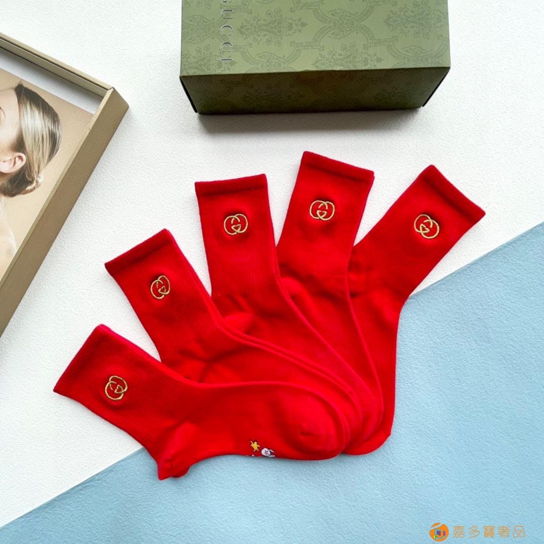配包装【一盒五双】?GUCCI 古奇 ?红红火火过年袜?专柜