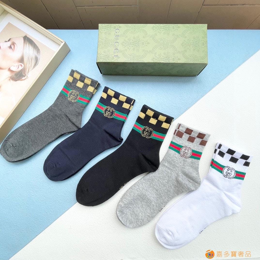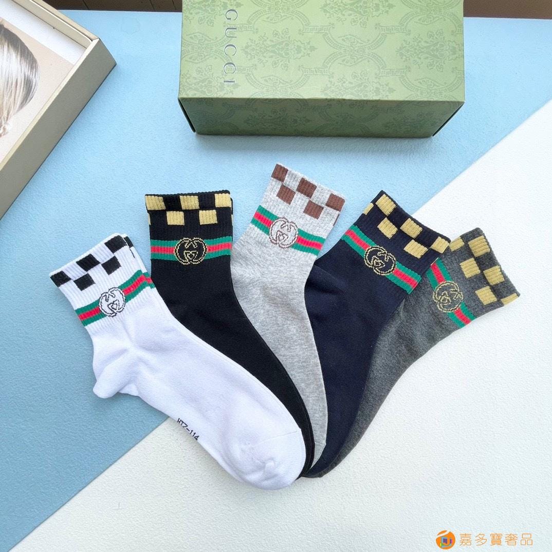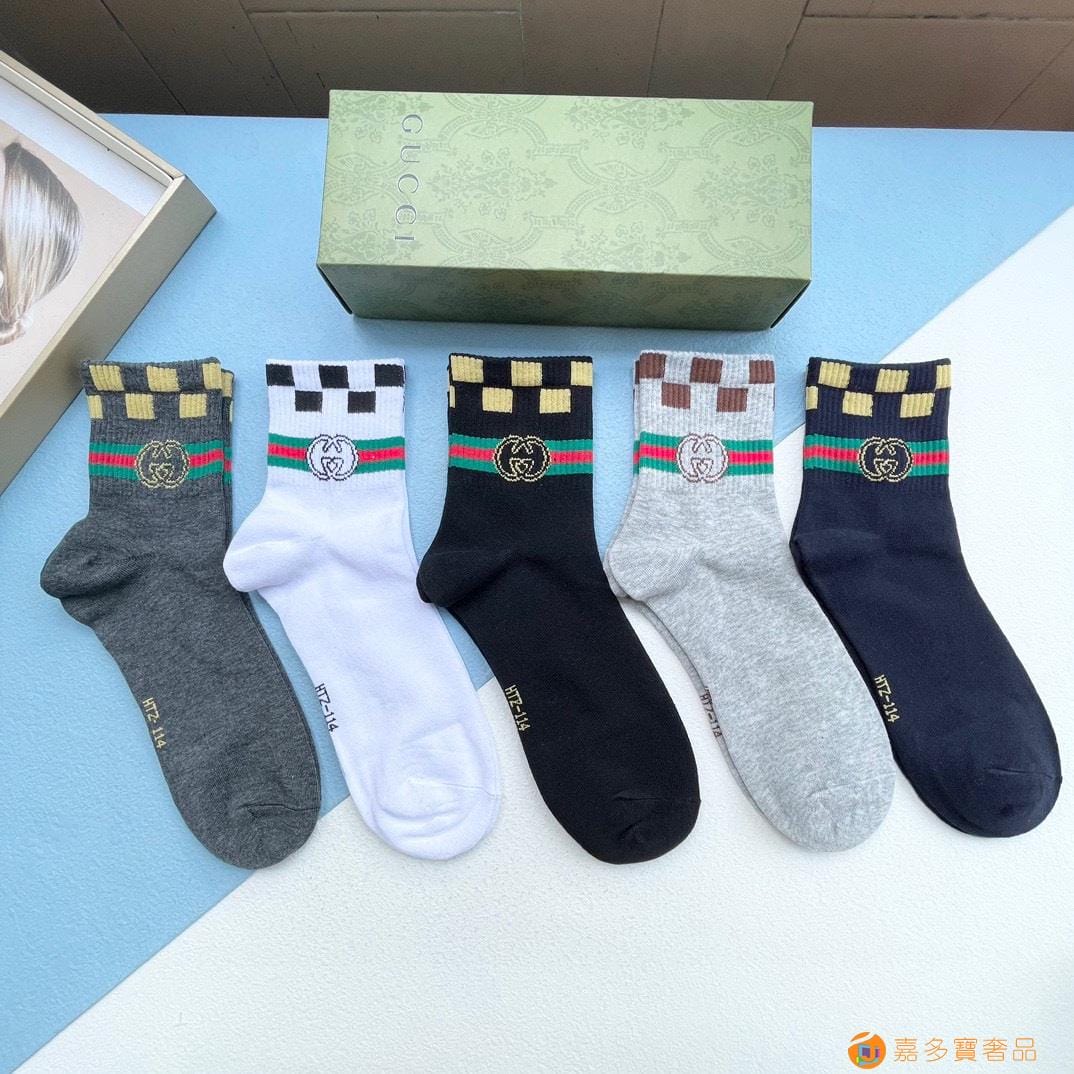 配送包装【一盒五双】 古奇gucci专柜新款男女款中筒袜子