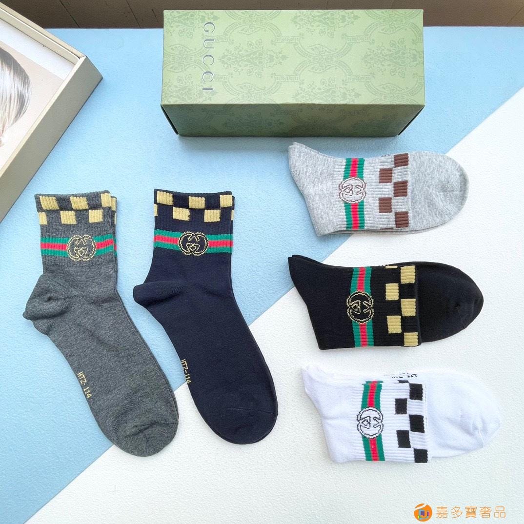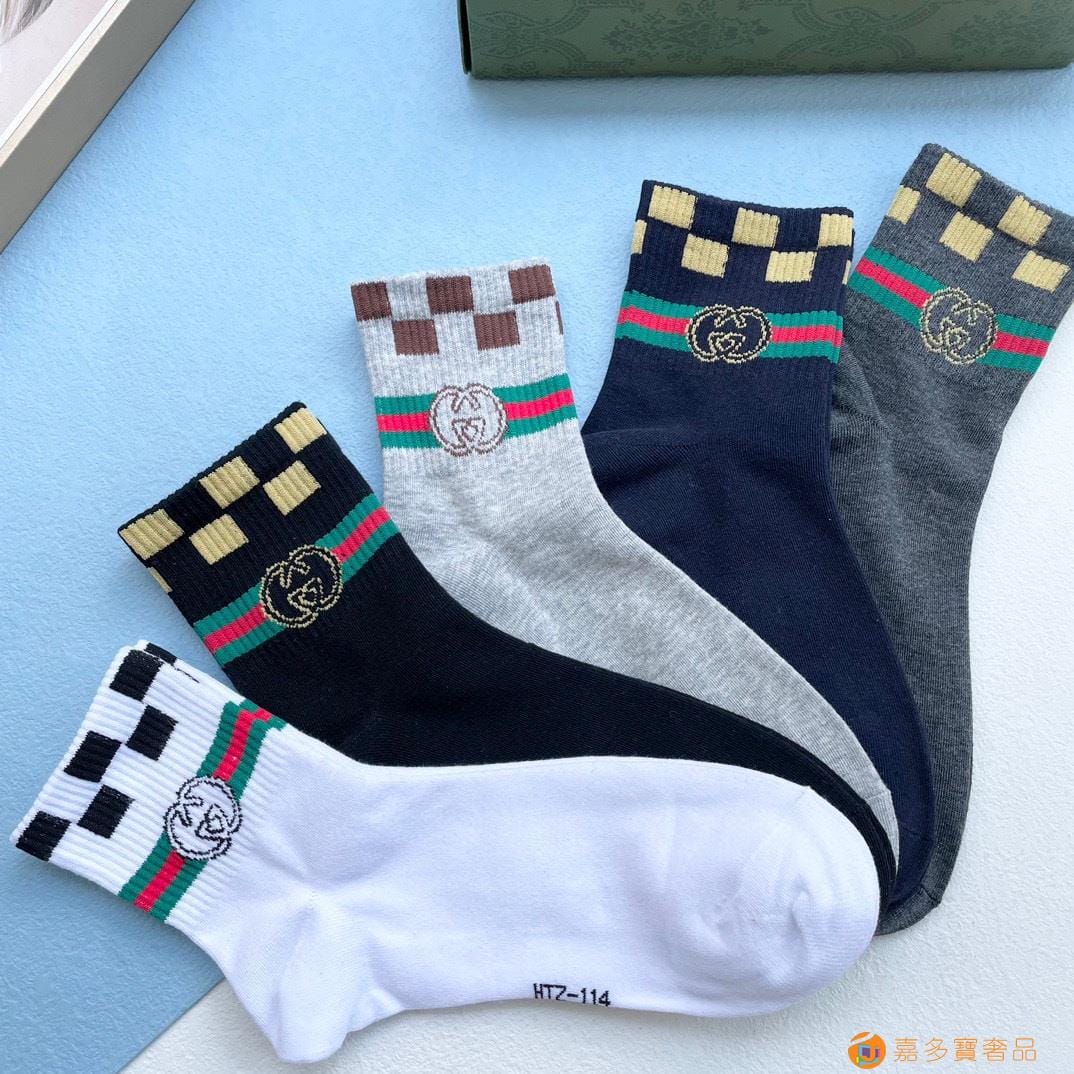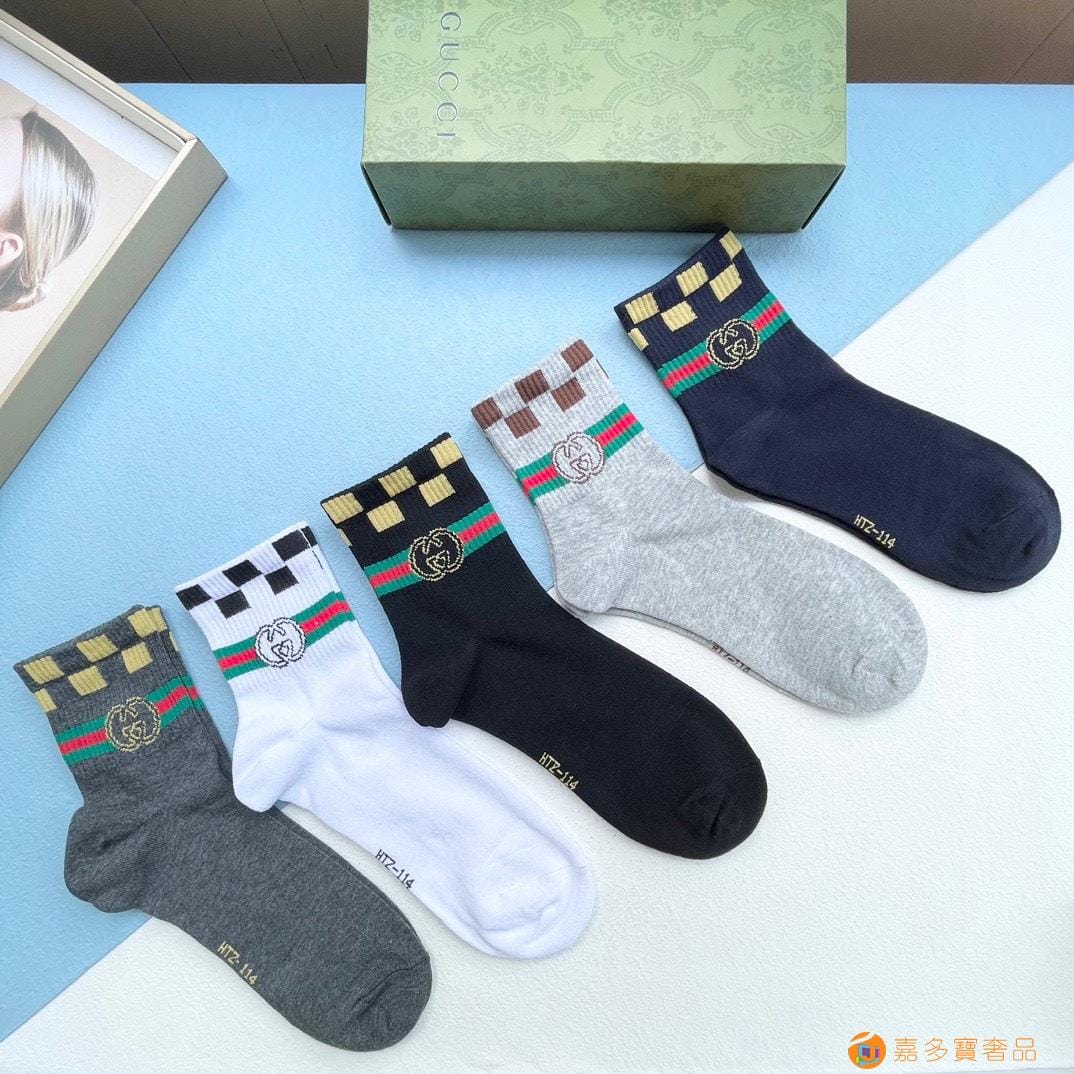 配送包装【一盒五双】 古奇gucci专柜新款男女款中筒袜子