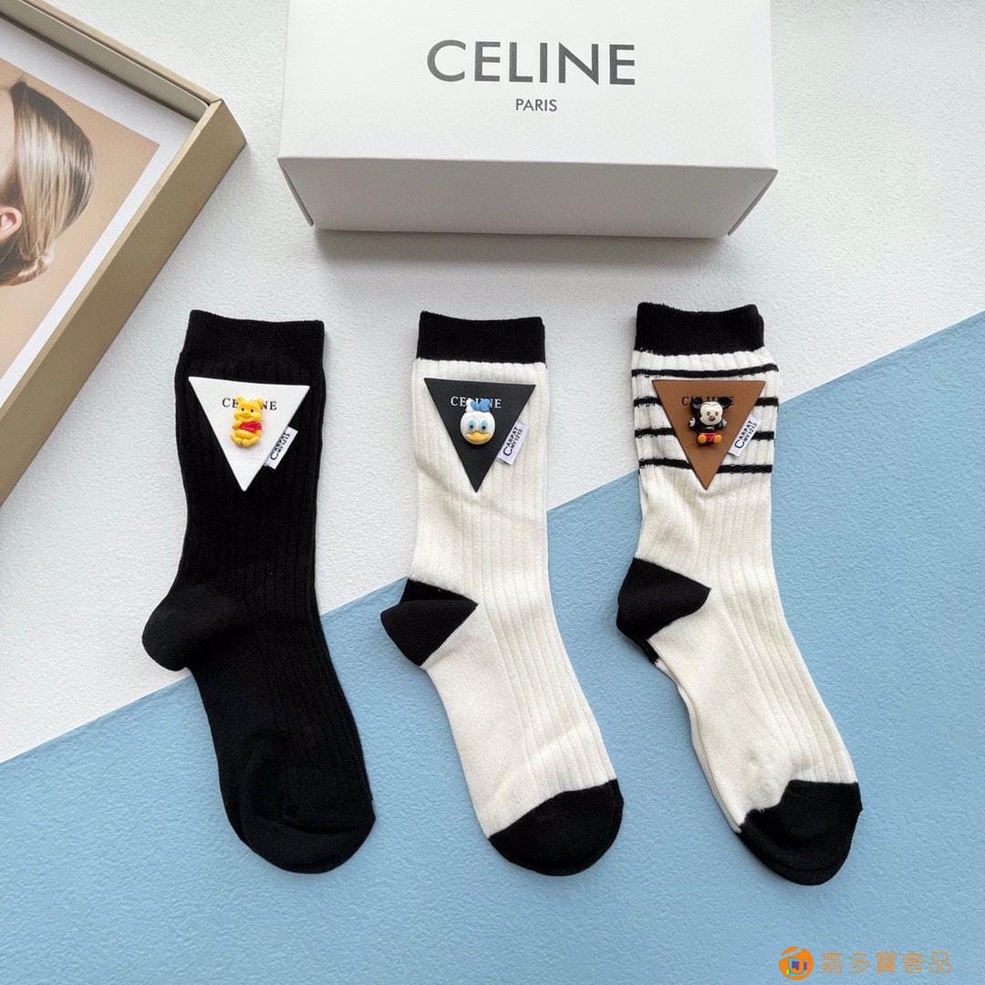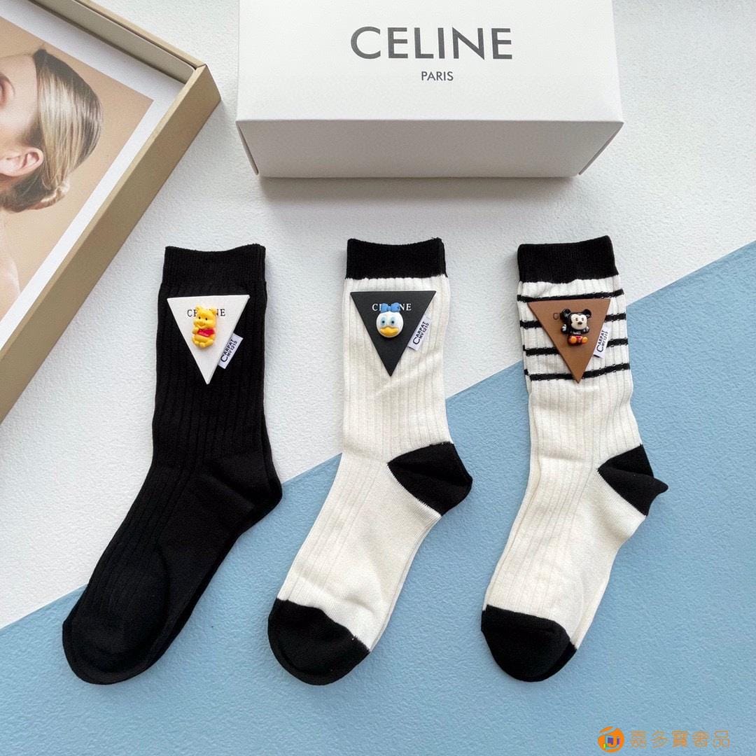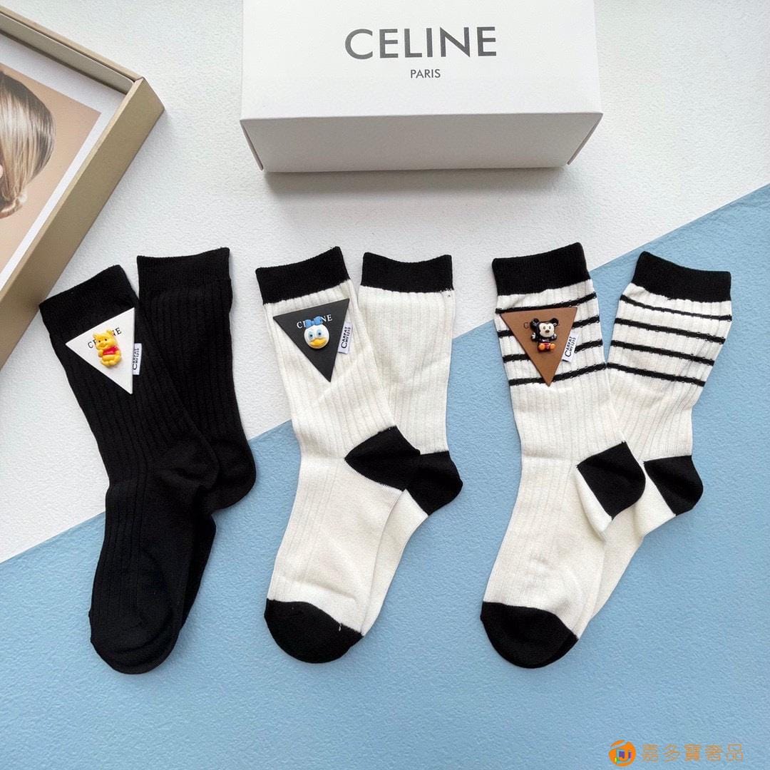 配包装【一盒三双】?Celine赛琳 爆款中筒袜?高版本