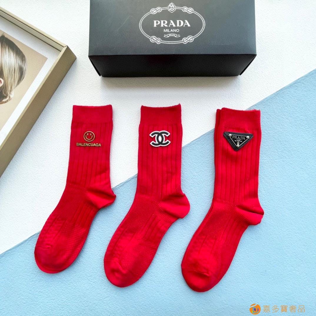 配包装【一盒三双】? 欧美大牌?红红火火?过年袜?爆款重工饰