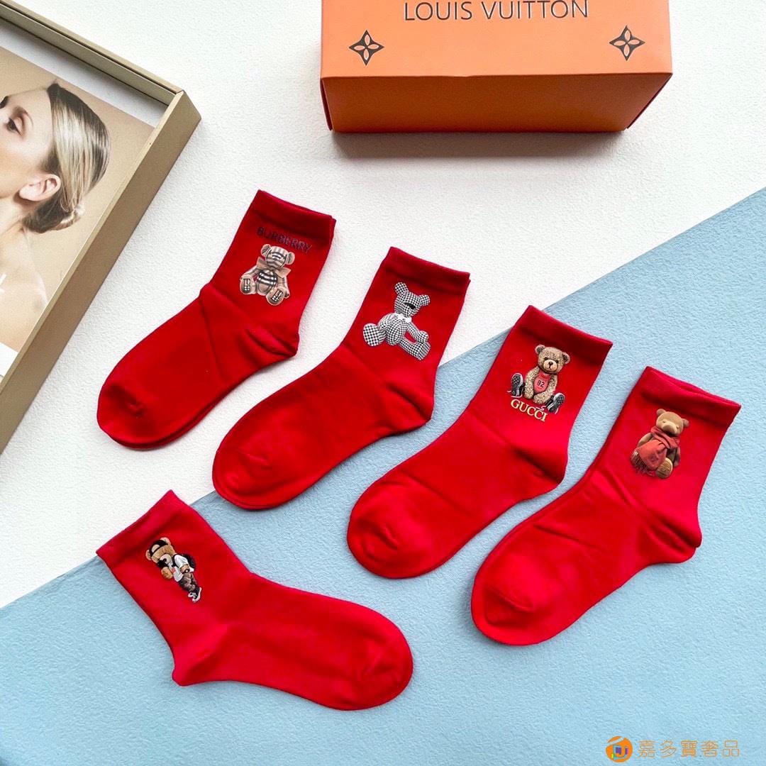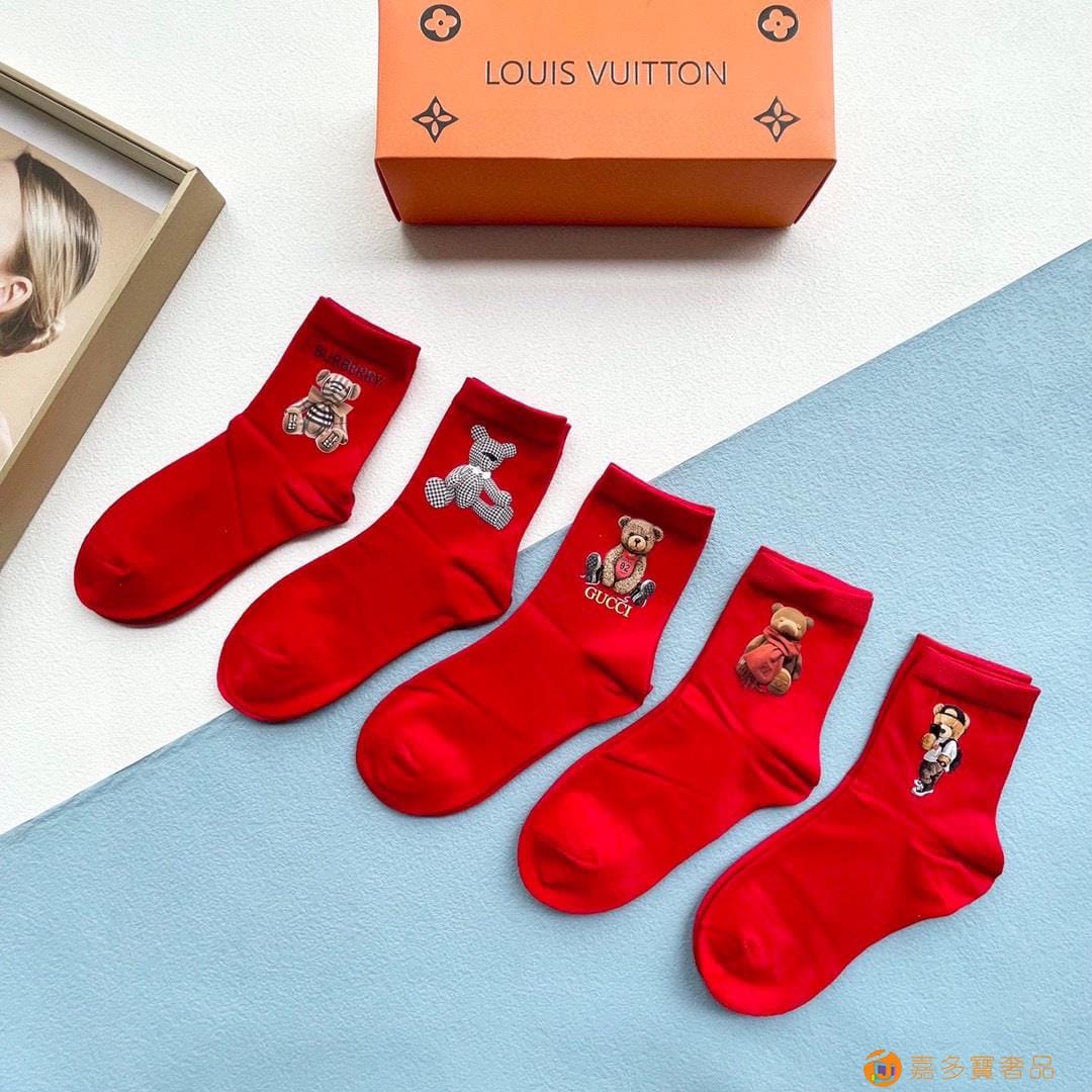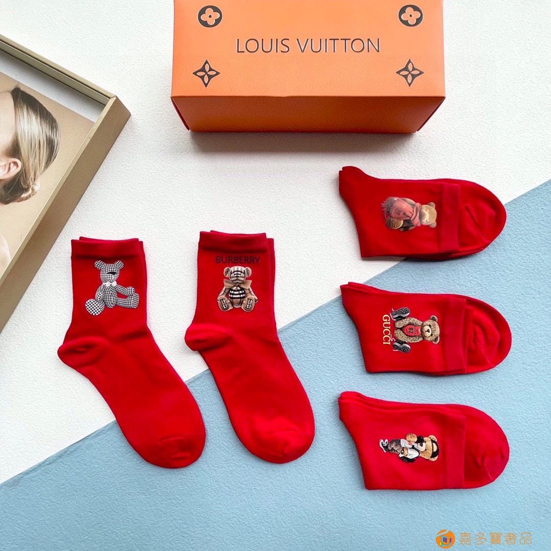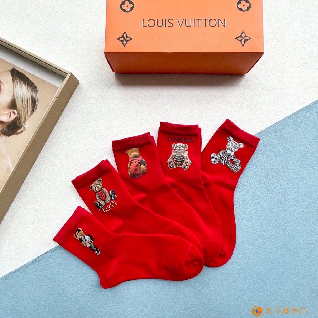 配包装【一盒五双】红红火火?过年红袜?LV 路易威登 欧美大