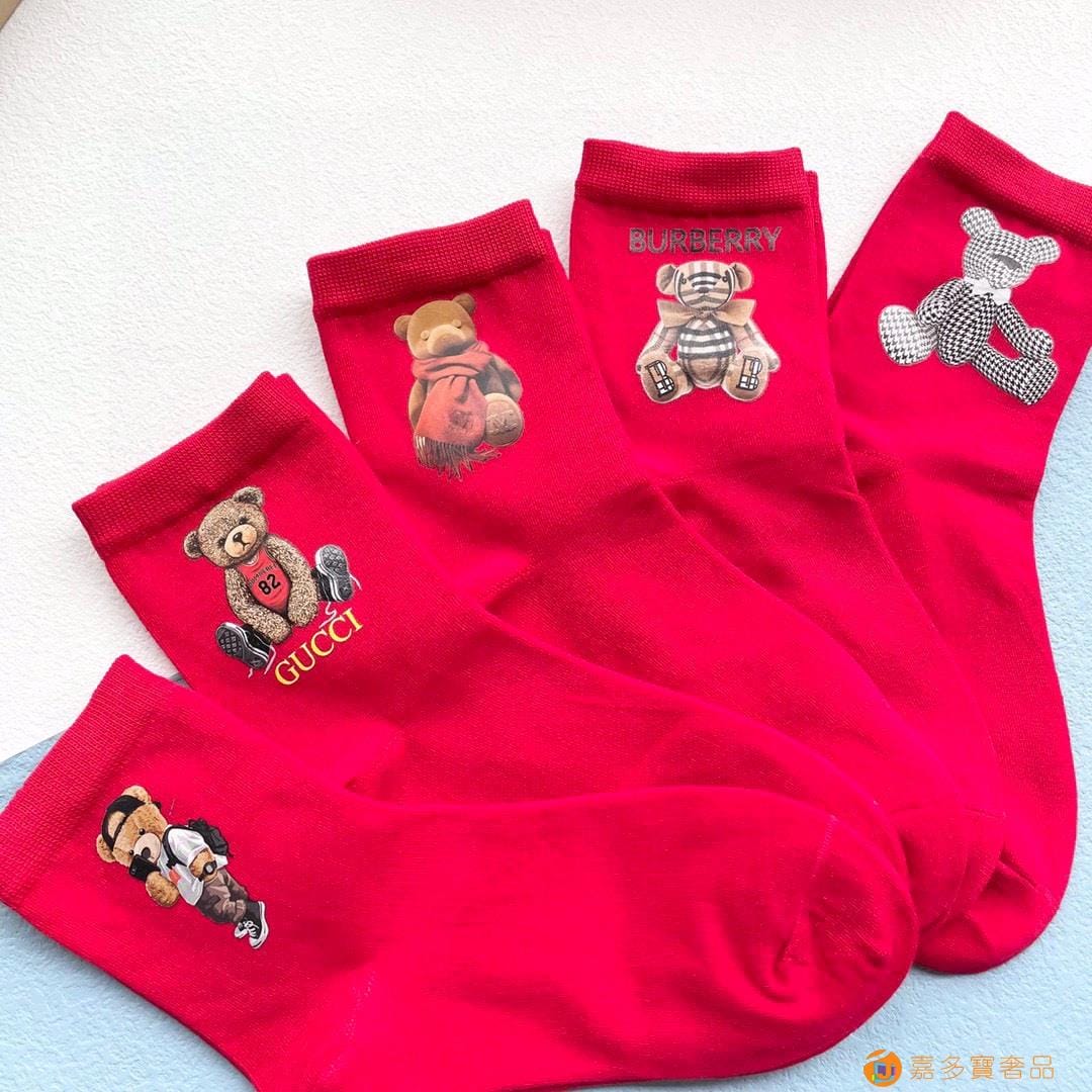 配包装【一盒五双】?欧美大牌?红红火火过年袜 ?官网同款字母