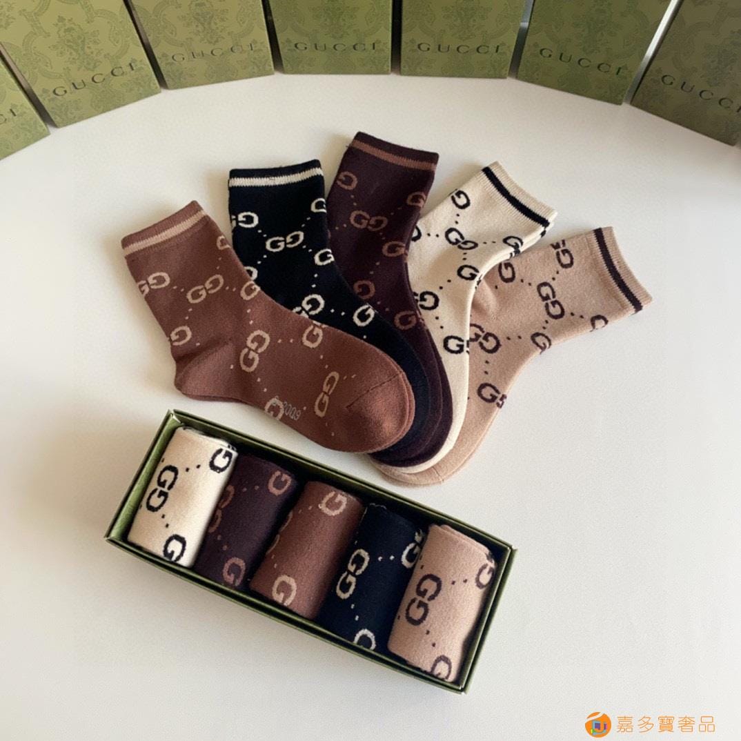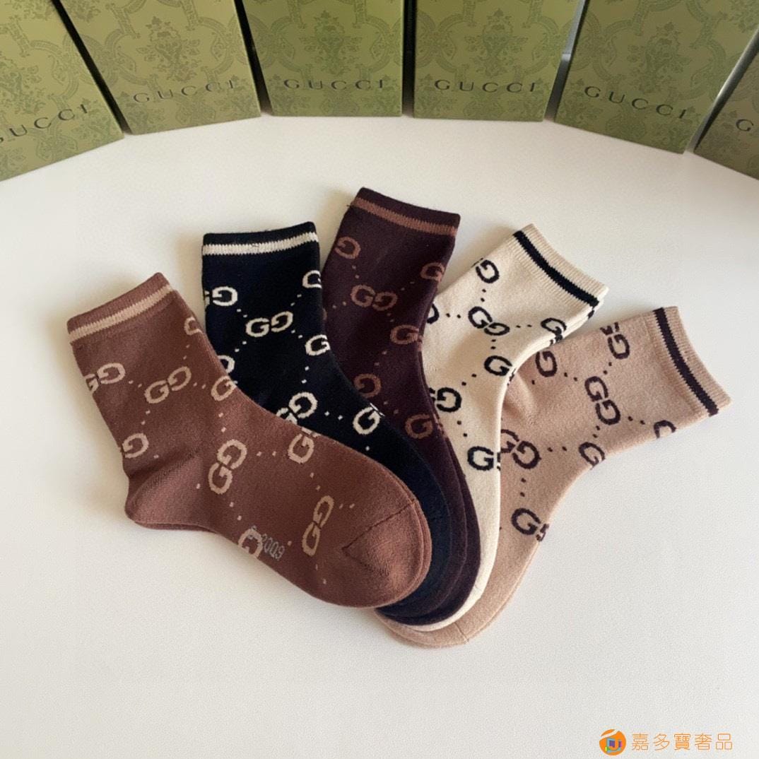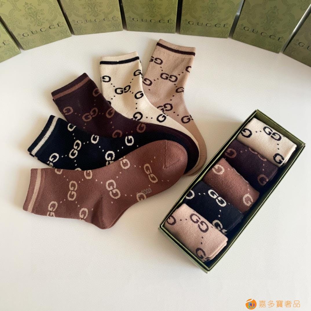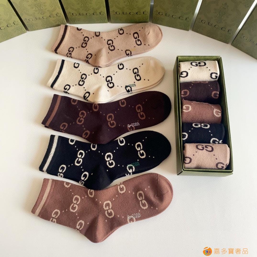 Gucci(古驰)新款经典中长款堆堆袜袜子!一盒五