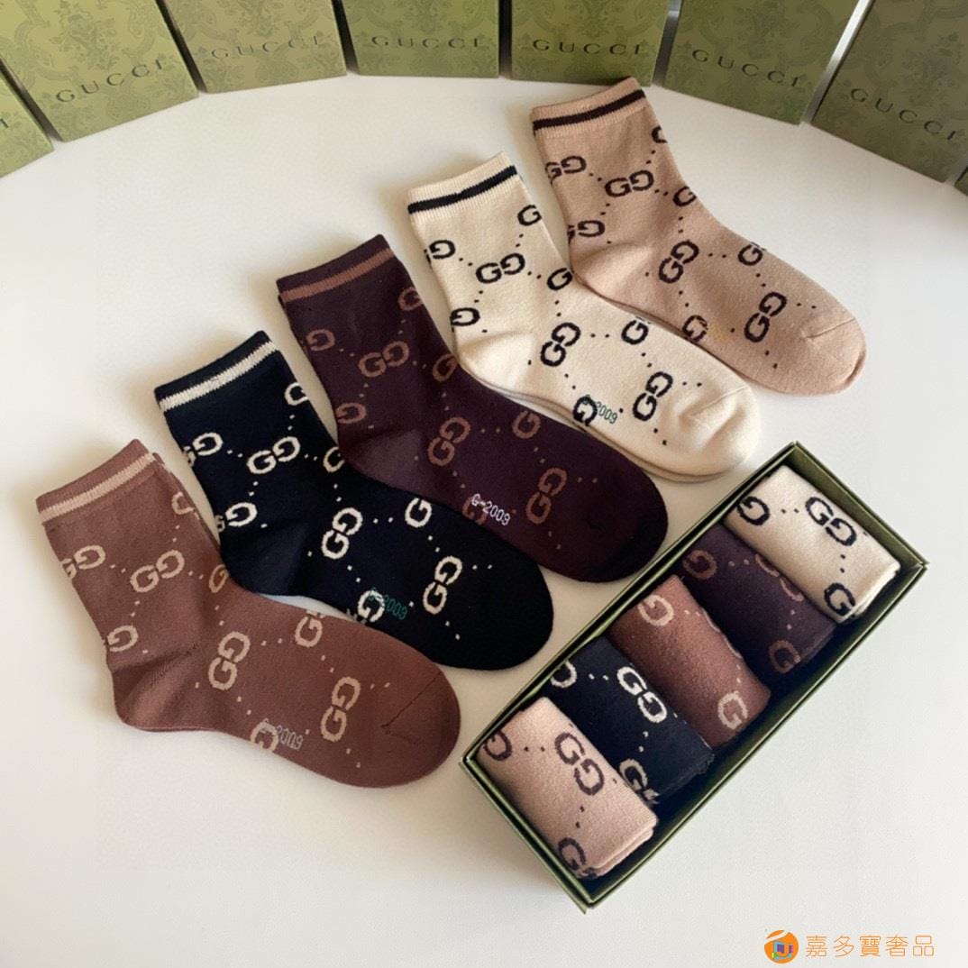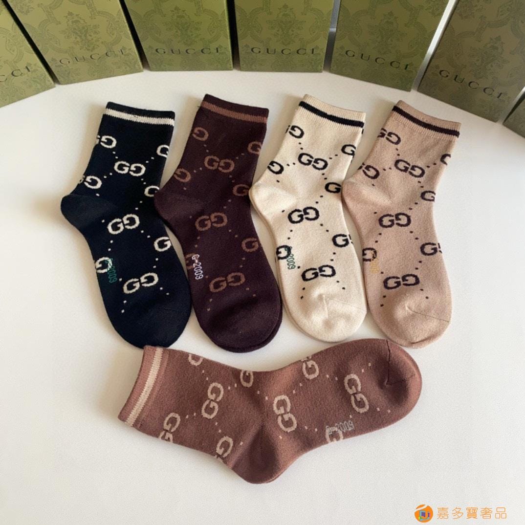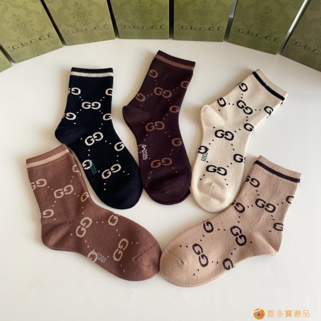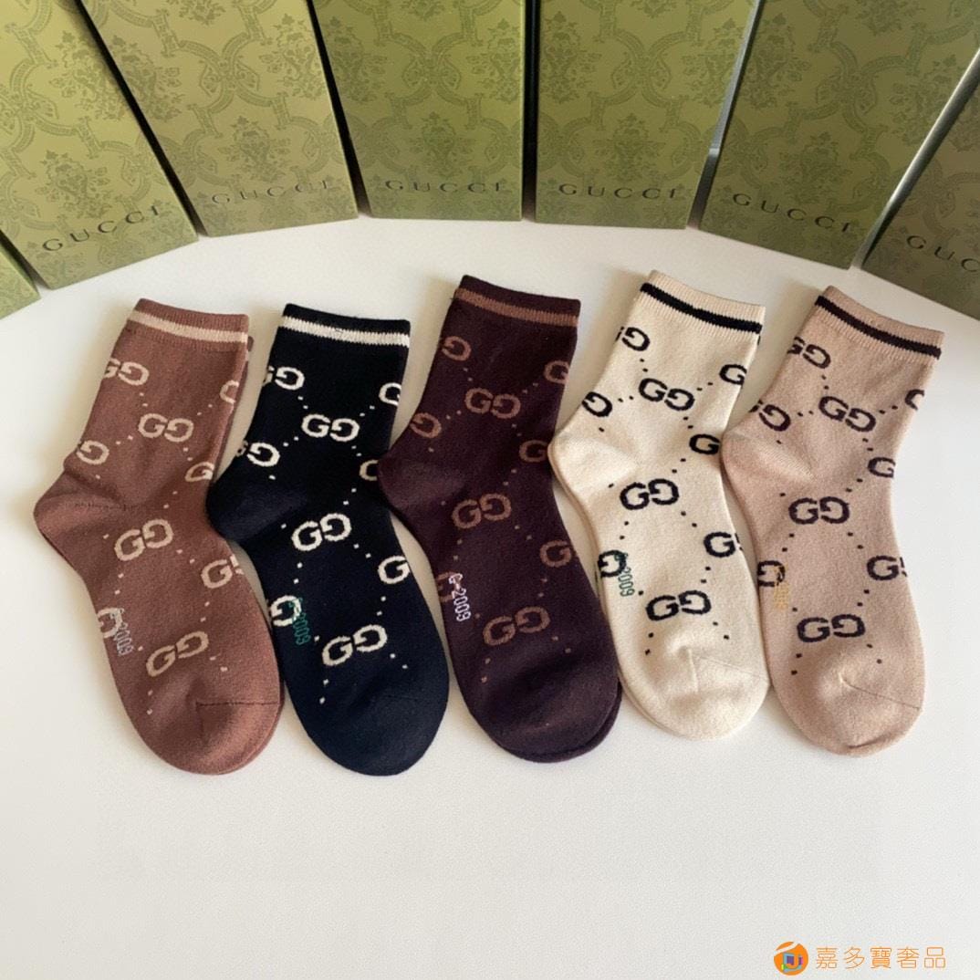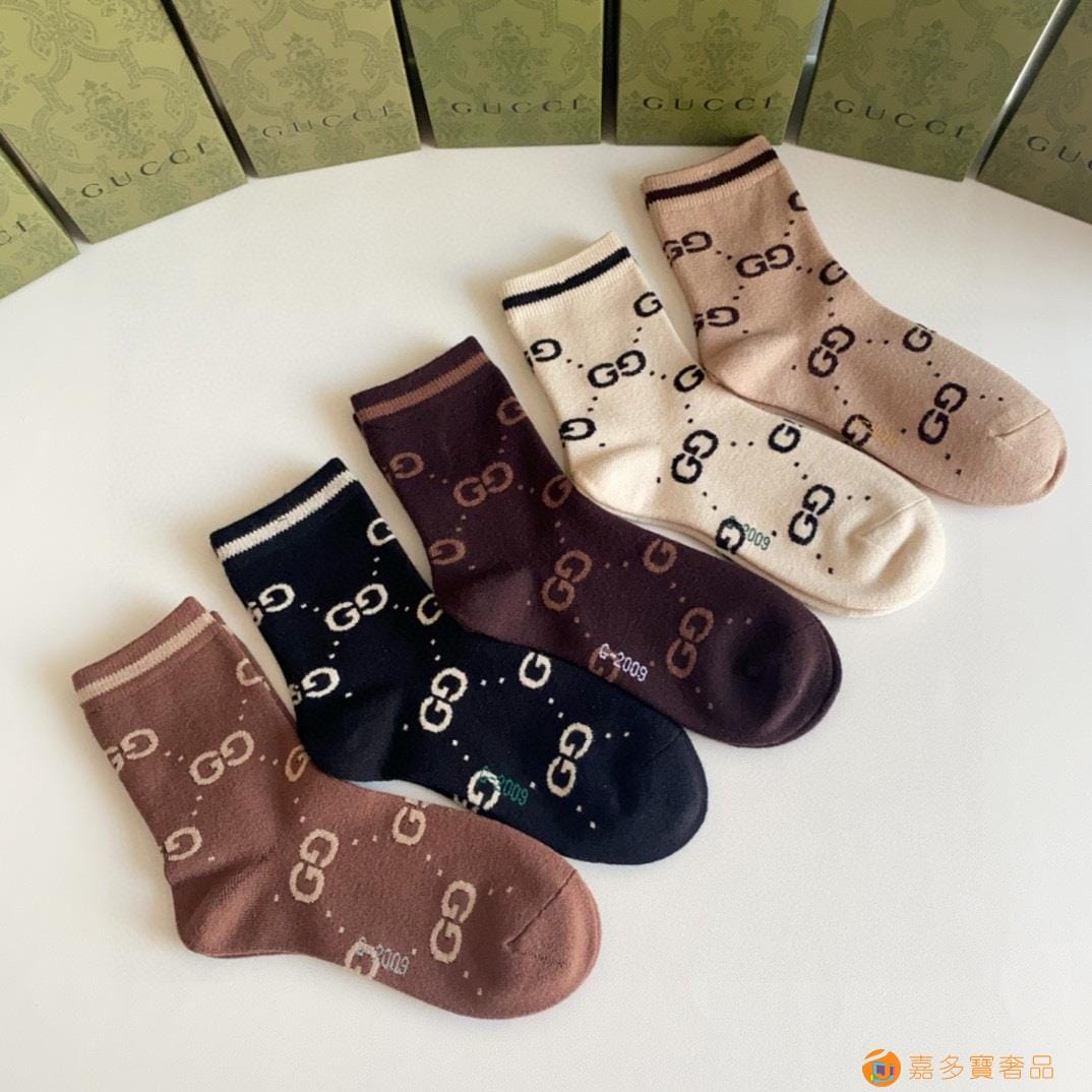 Gucci(古驰)新款经典中长款堆堆袜袜子!一盒五