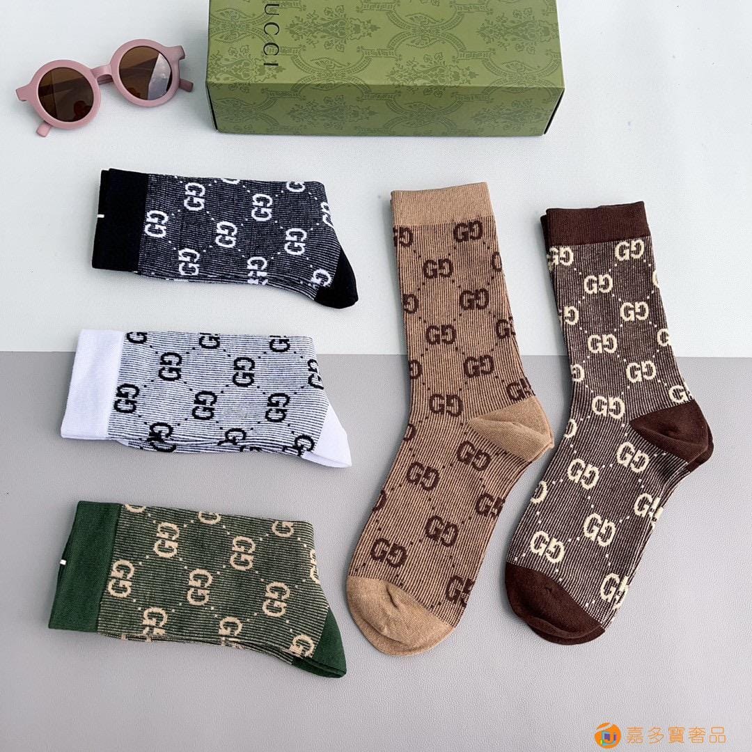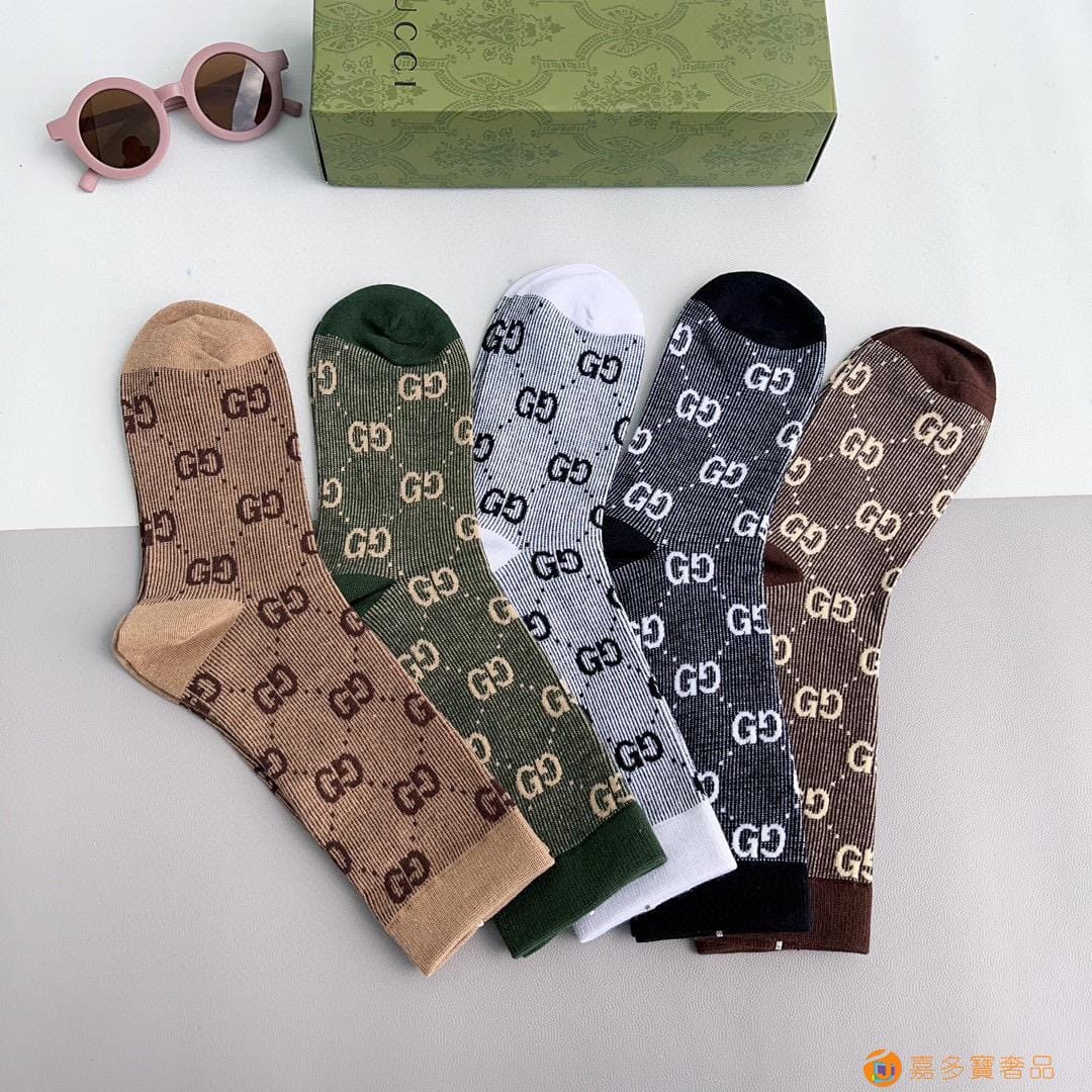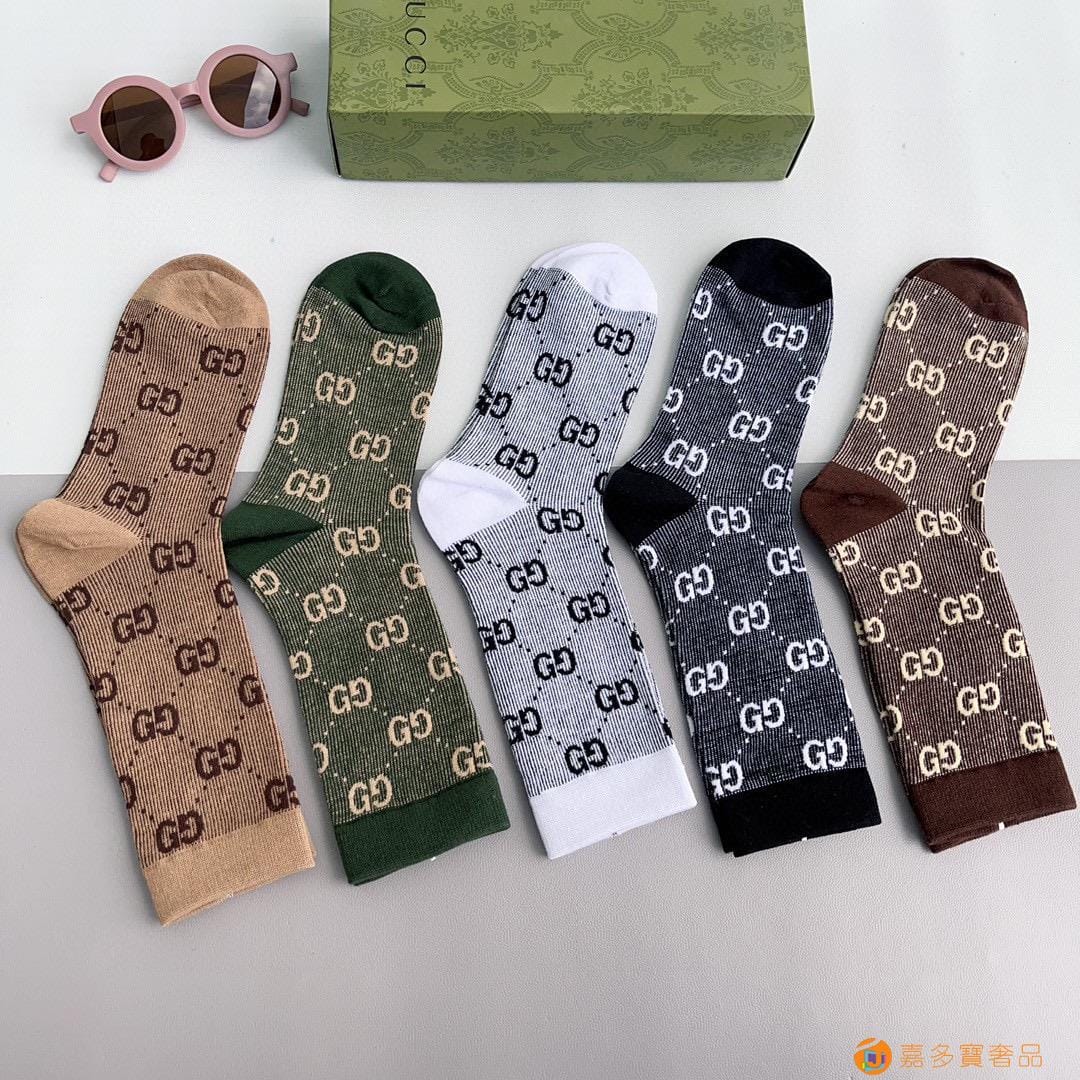 Gucci(古驰)新款经典中长款堆堆袜袜子!一盒五