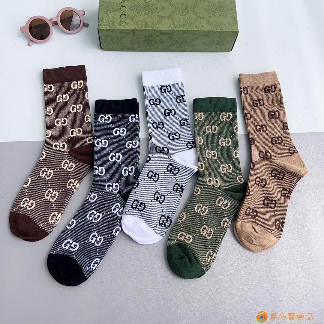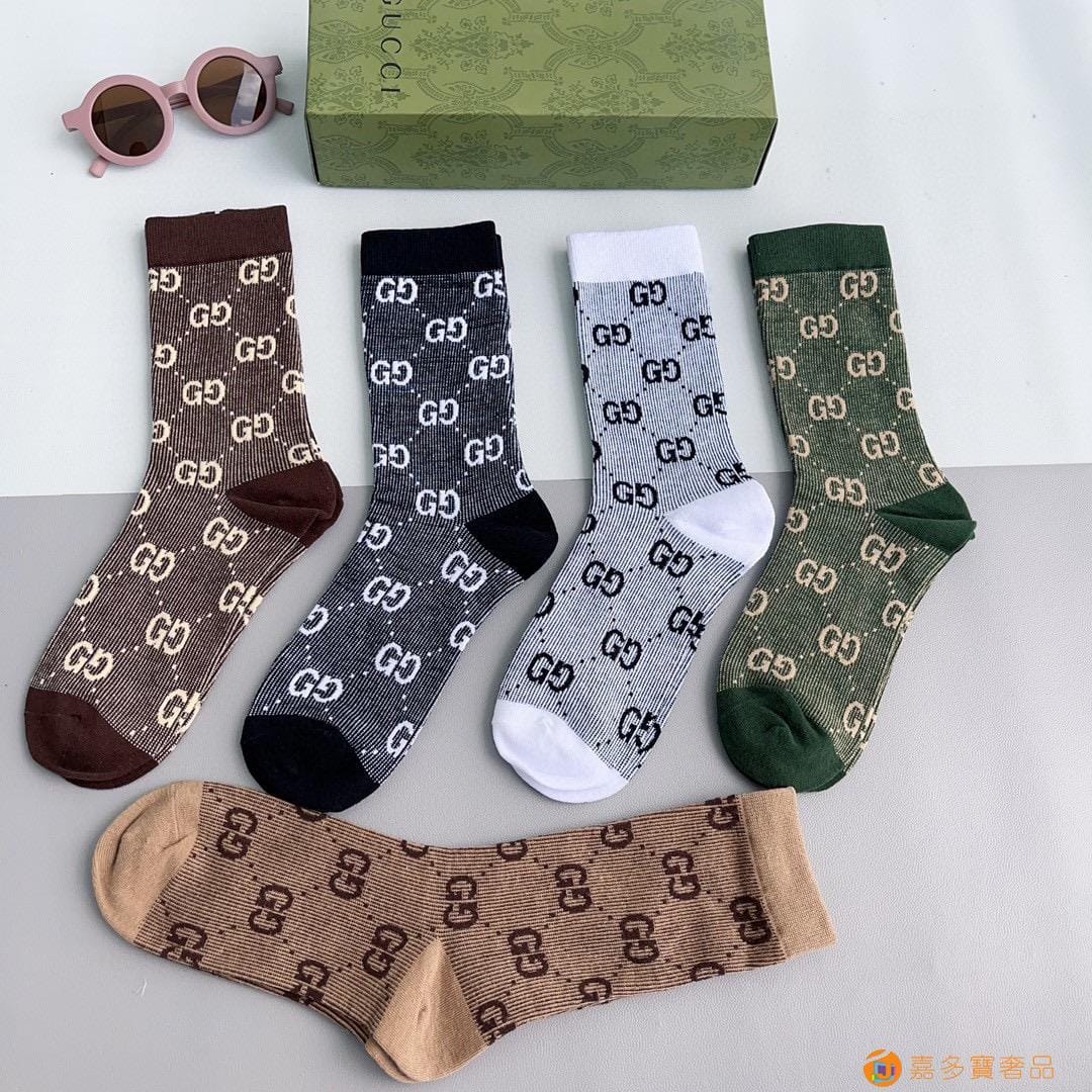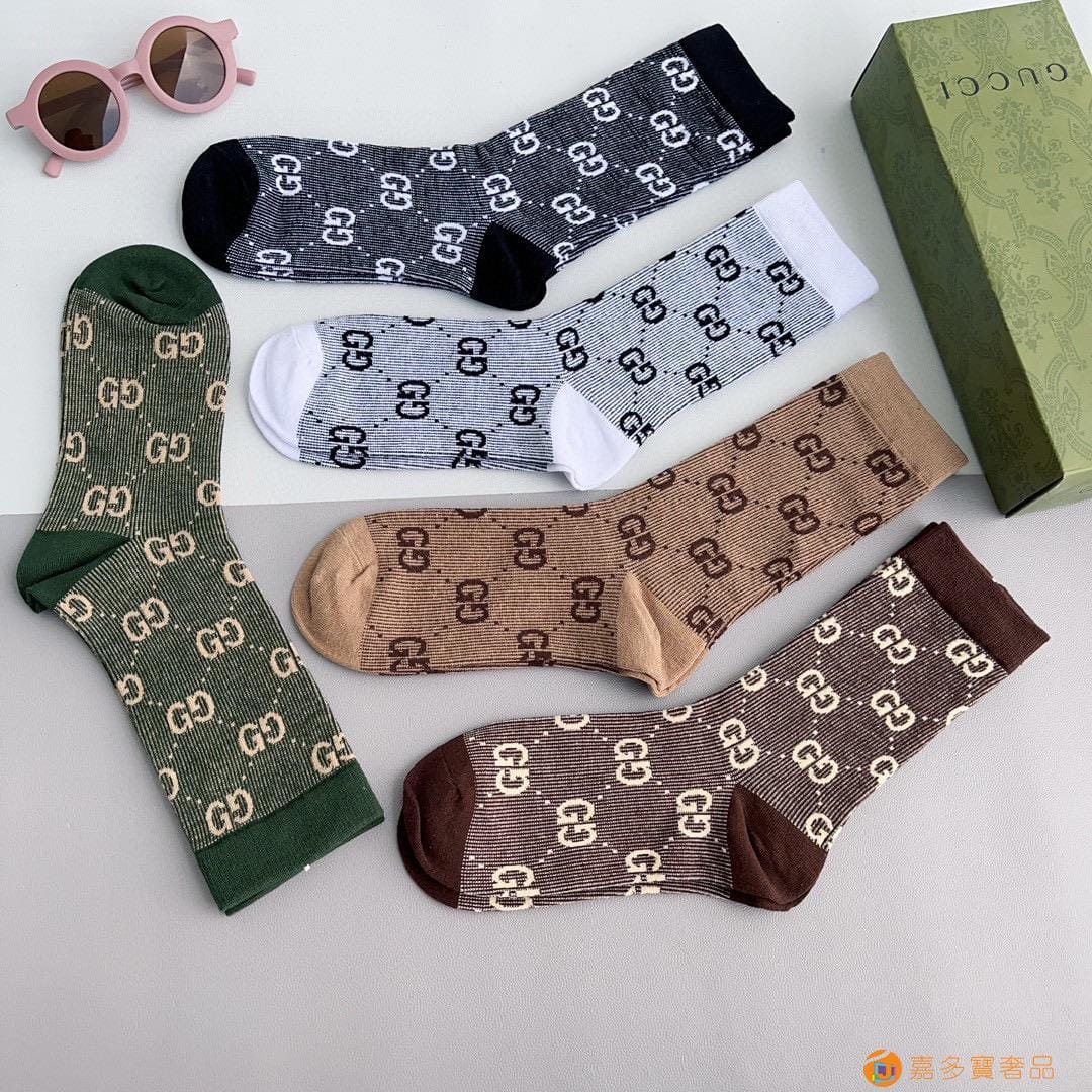 Gucci(古驰)新款经典中长款堆堆袜袜子!一盒五