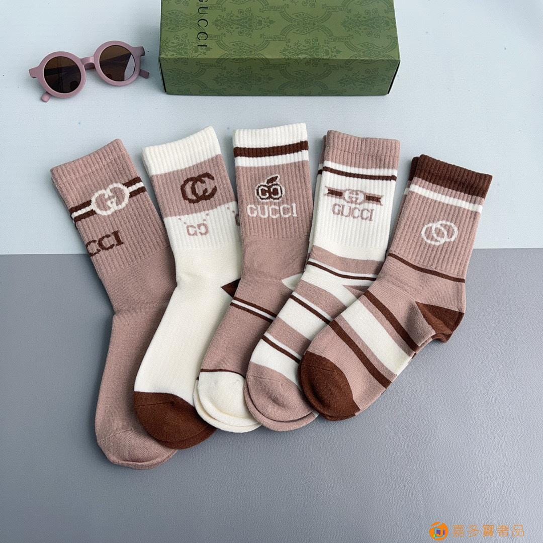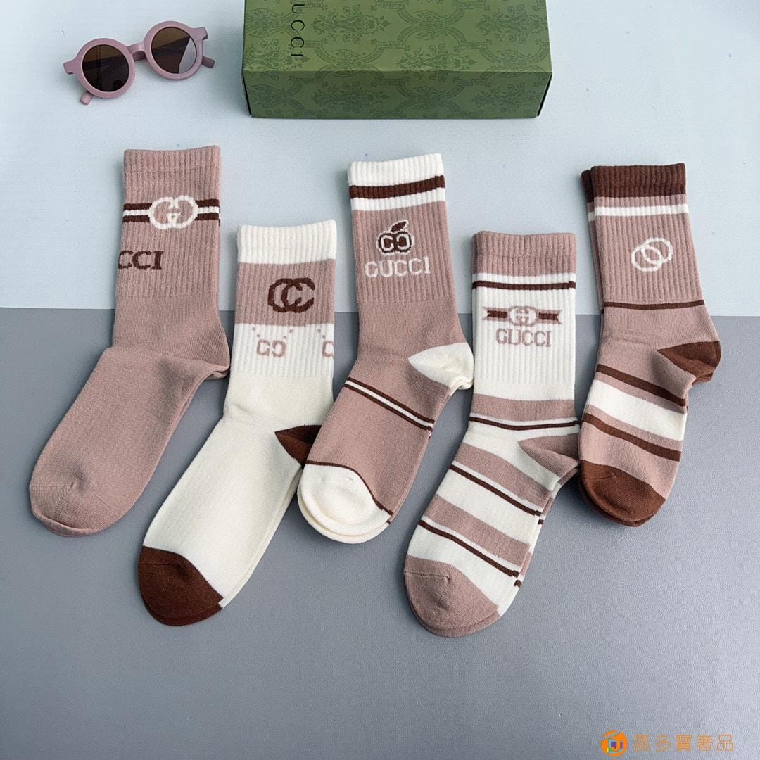 Gucci(古驰)新款经典中长款堆堆袜袜子!一盒五