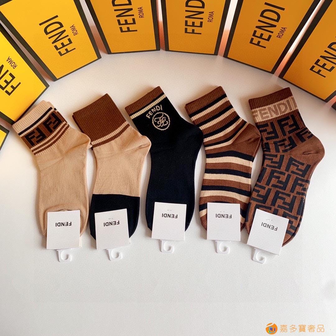 FENDI(芬迪)新款经典中长款堆堆袜袜子!一盒五