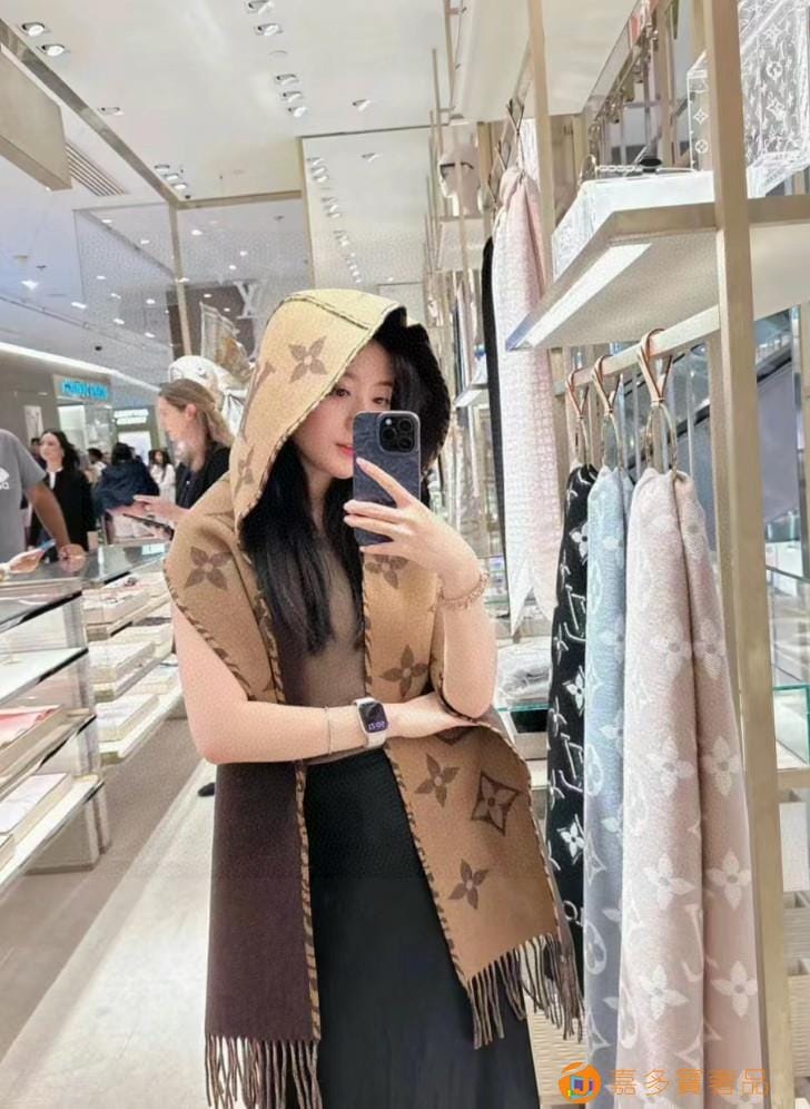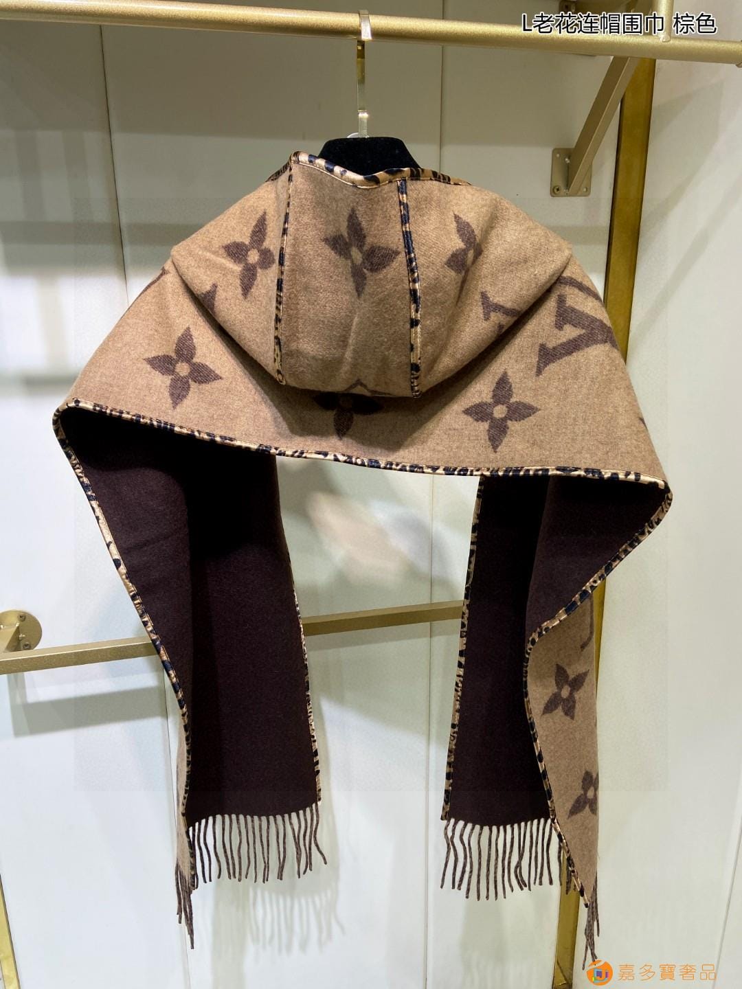 ?驴家ZG同步【L老花连帽围巾】火爆全球?Fall For You 连帽围巾取材丰盈毛绒混纺,拥有 Monogram 提花织纹和沉稳素色两面选择。宽幅尺寸和连帽设计为深秋着装注入前卫气息。尺寸: x 厘米 %绵羊毛, %山羊绒, %桑蚕丝, 饰边:羊皮革