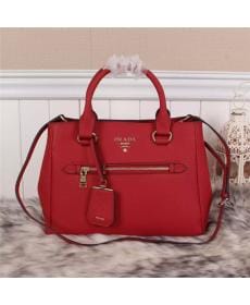 Prada普拉达 大红 女士真皮手提包 单肩包 斜挎包
