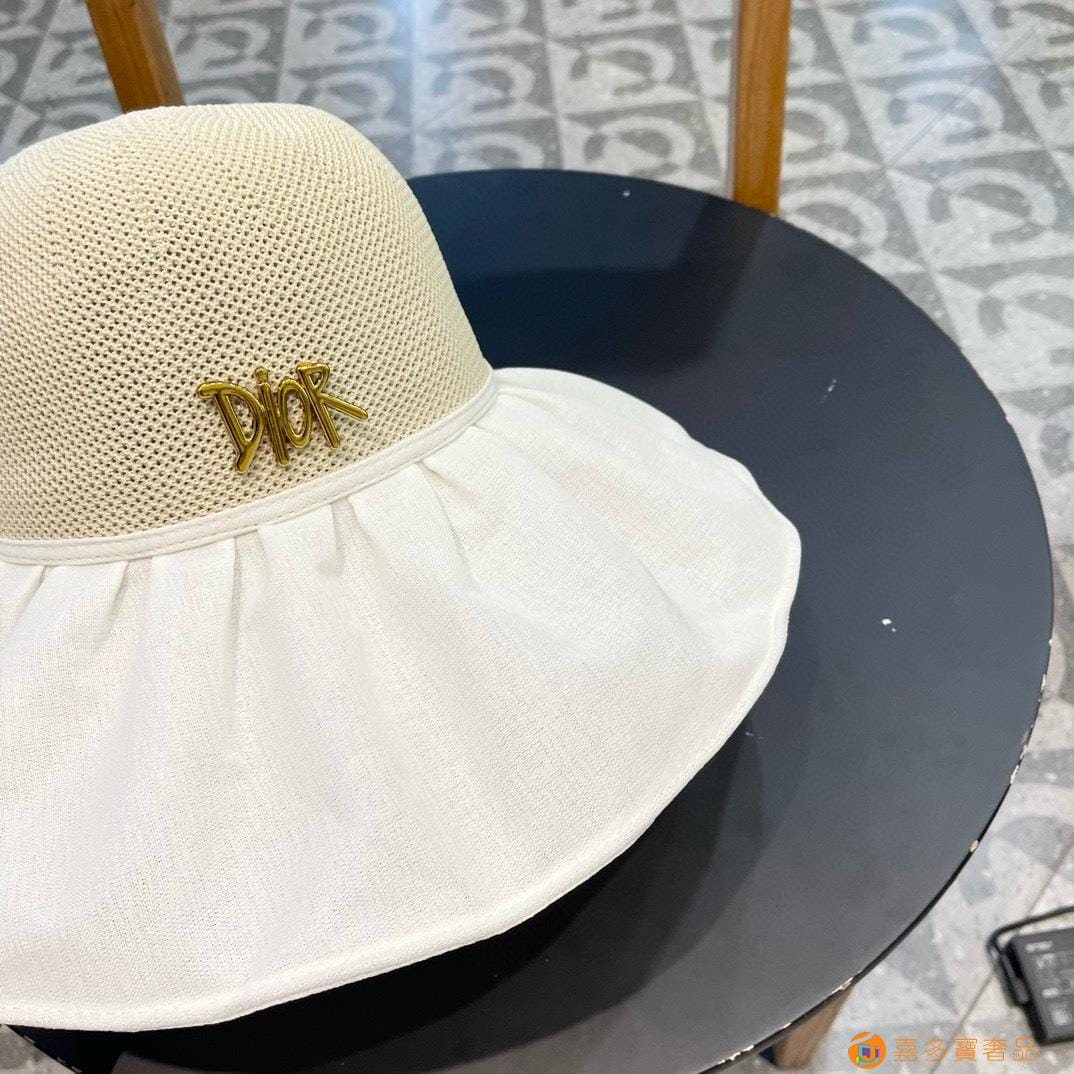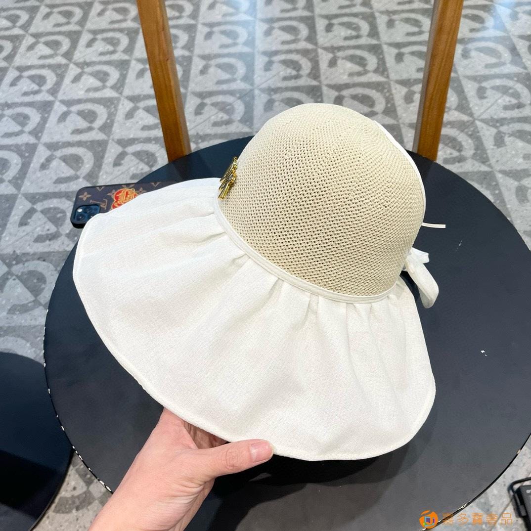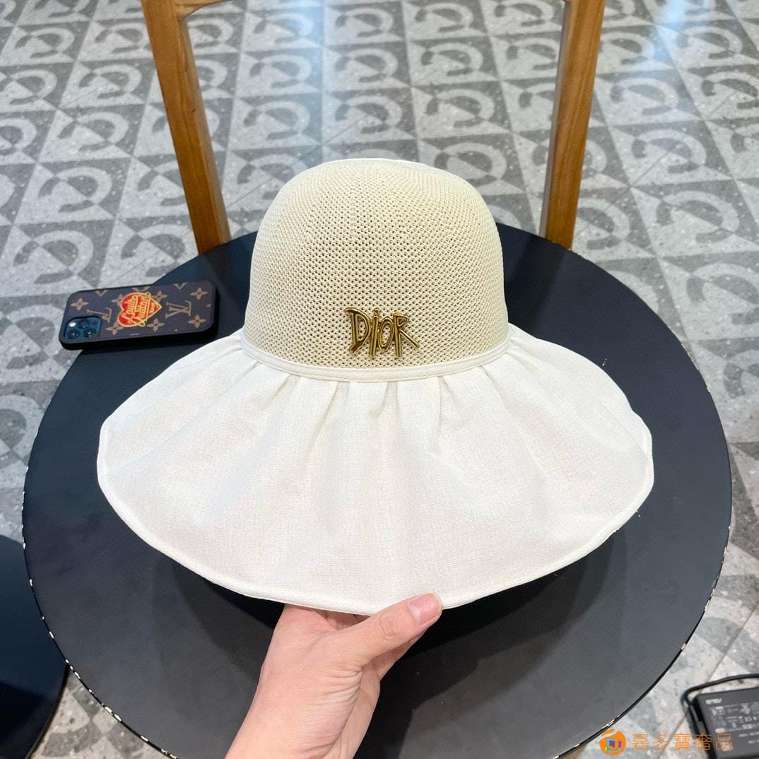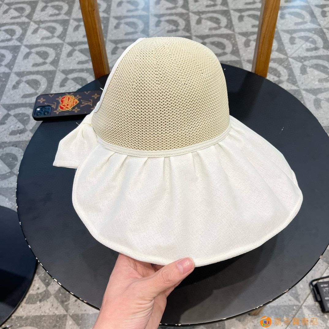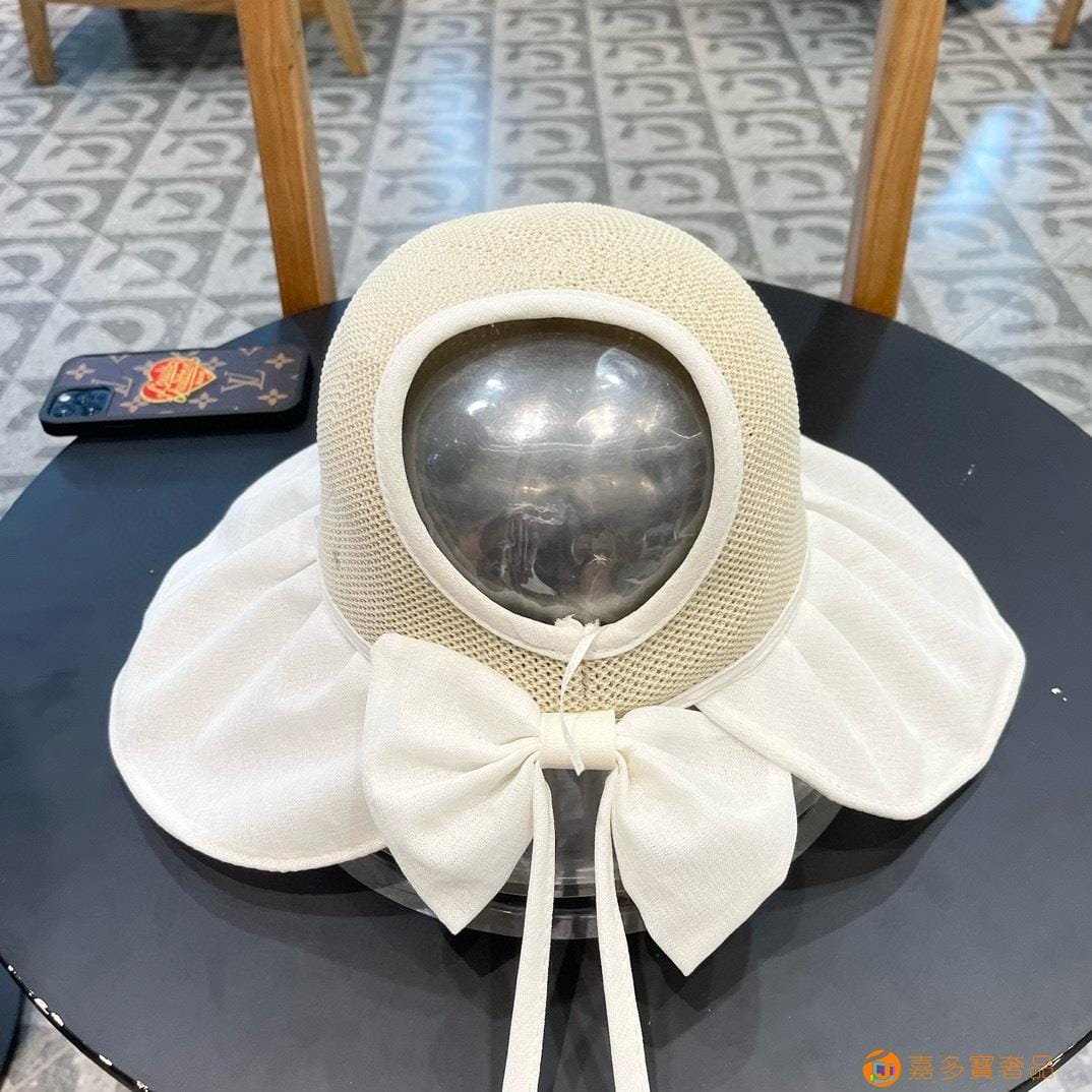 迪奥dior防紫外线超大帽檐蝴蝶结可收纳遮阳帽子女士透气遮脸