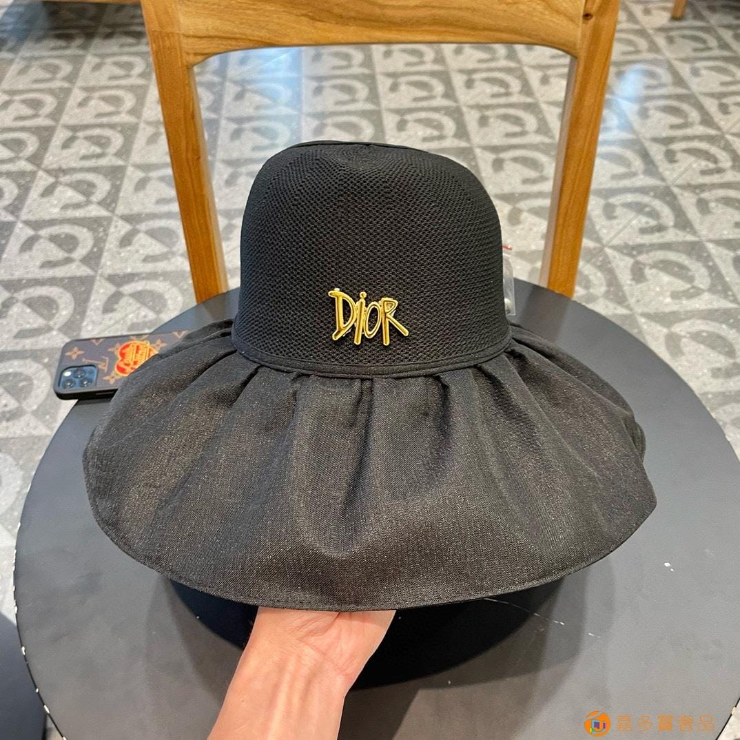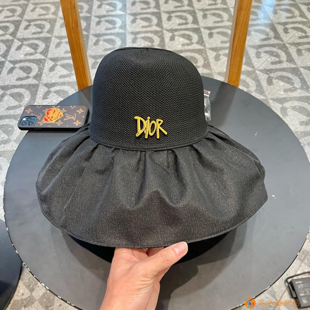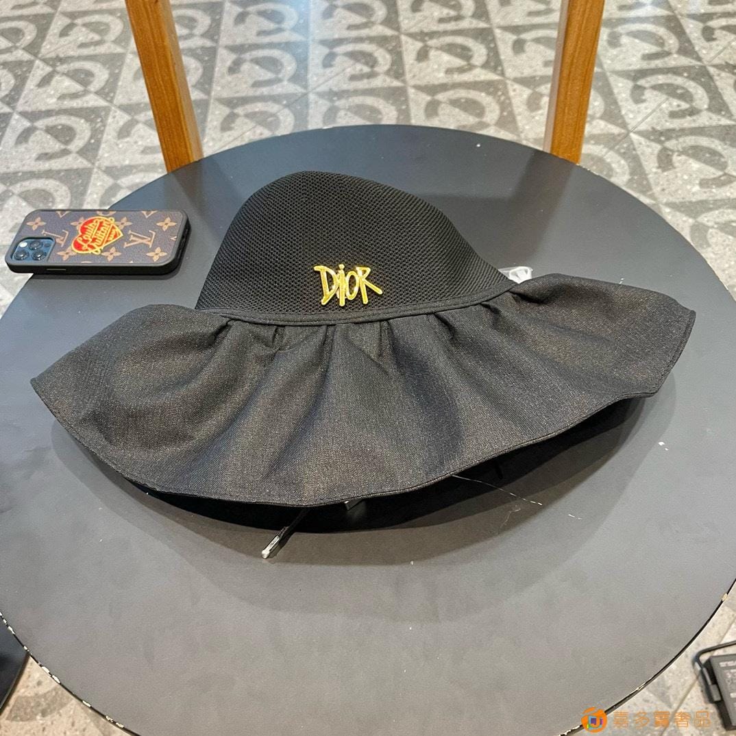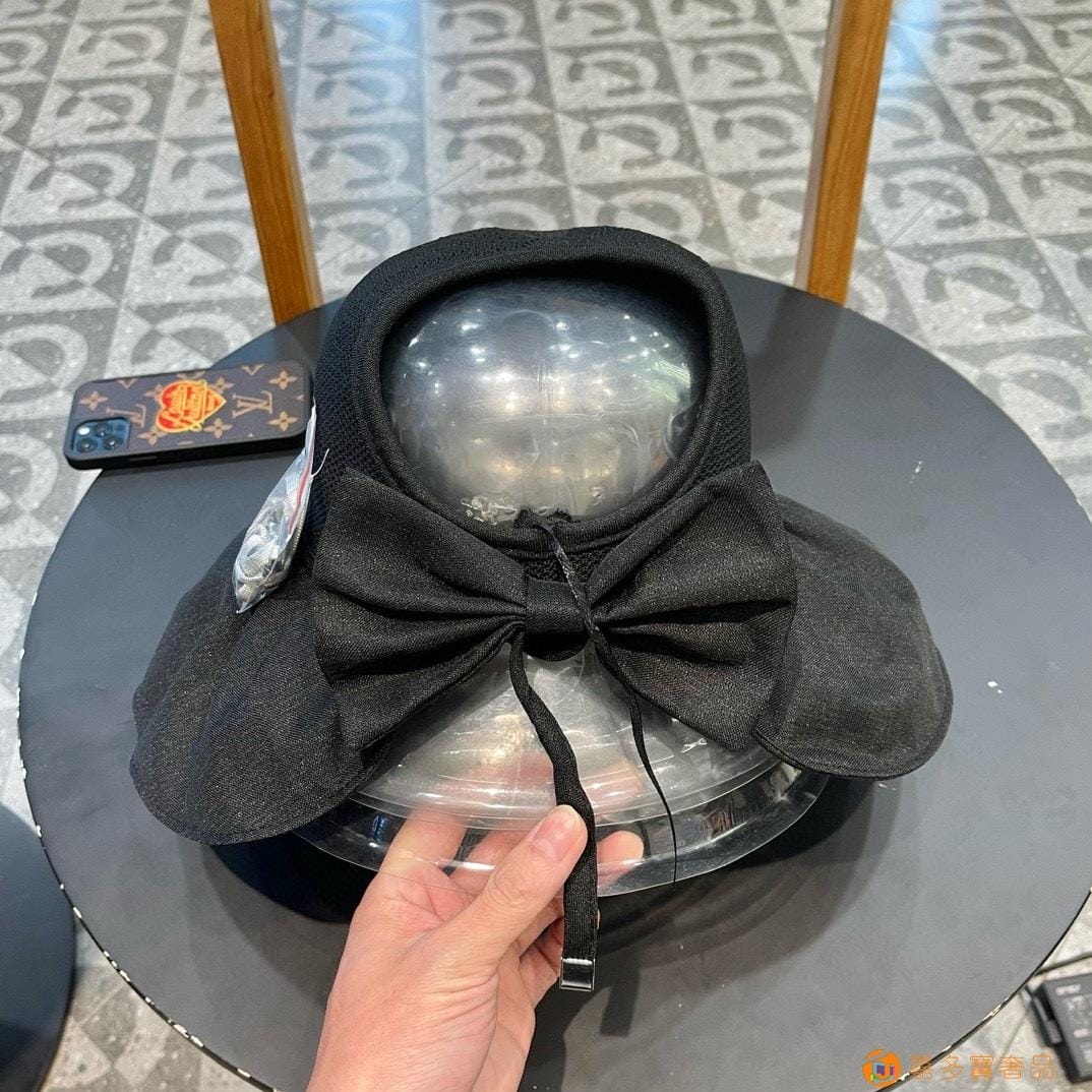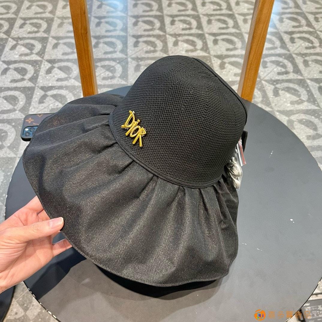 迪奥dior防紫外线超大帽檐蝴蝶结可收纳遮阳帽子女士透气遮脸