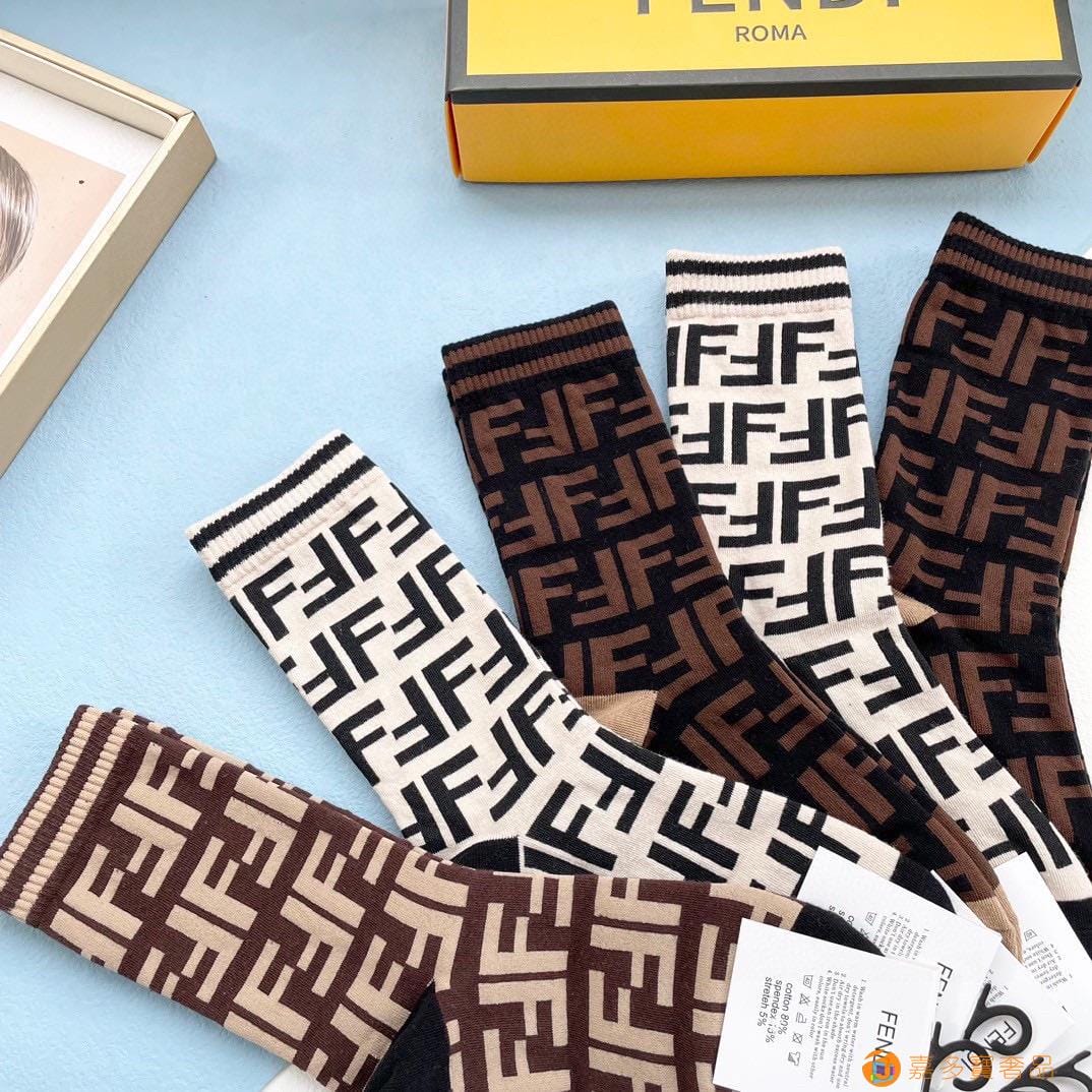 配包装【一盒五双】FENDI · 芬迪??大F新品高筒袜子?