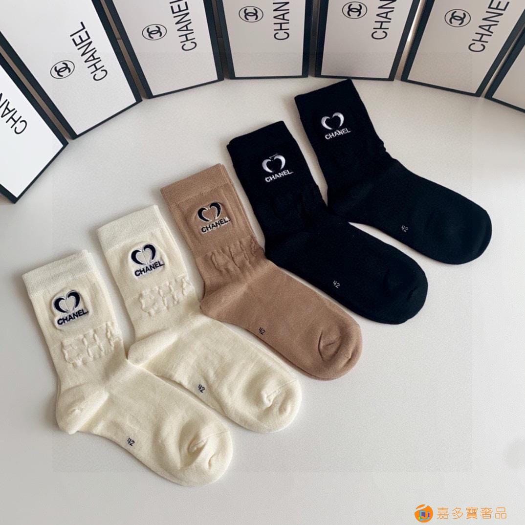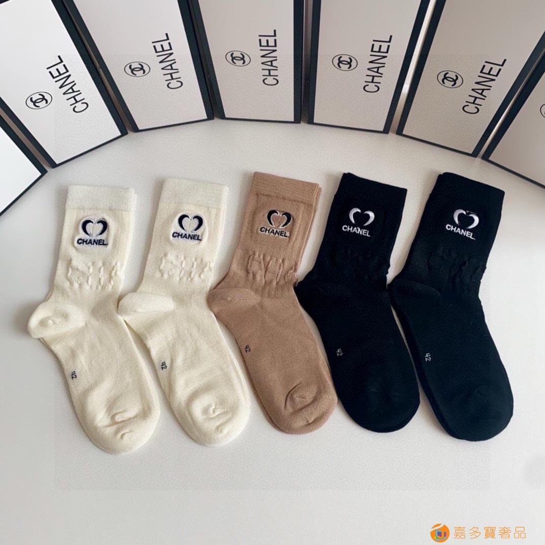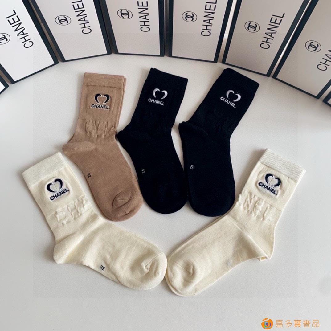 Chanel(香奈儿)新款经典刺绣中长款堆堆袜