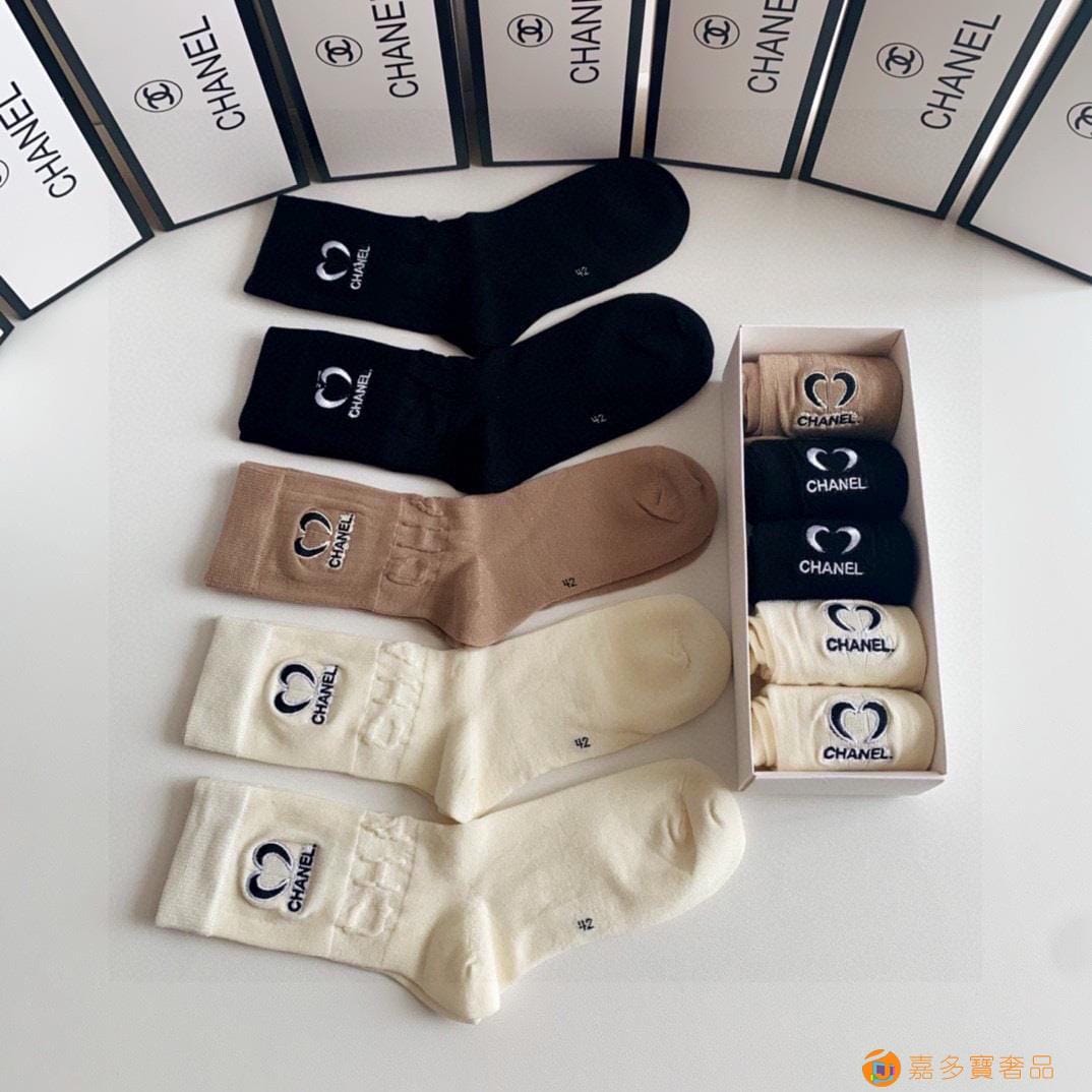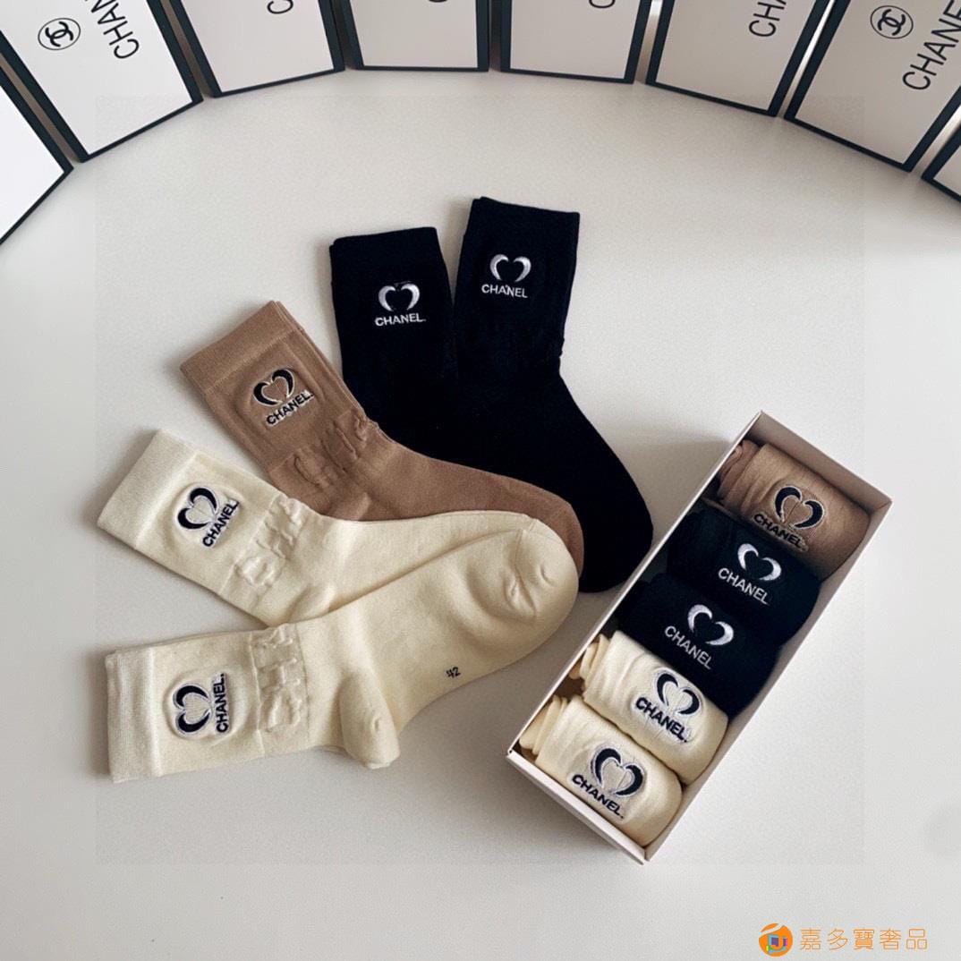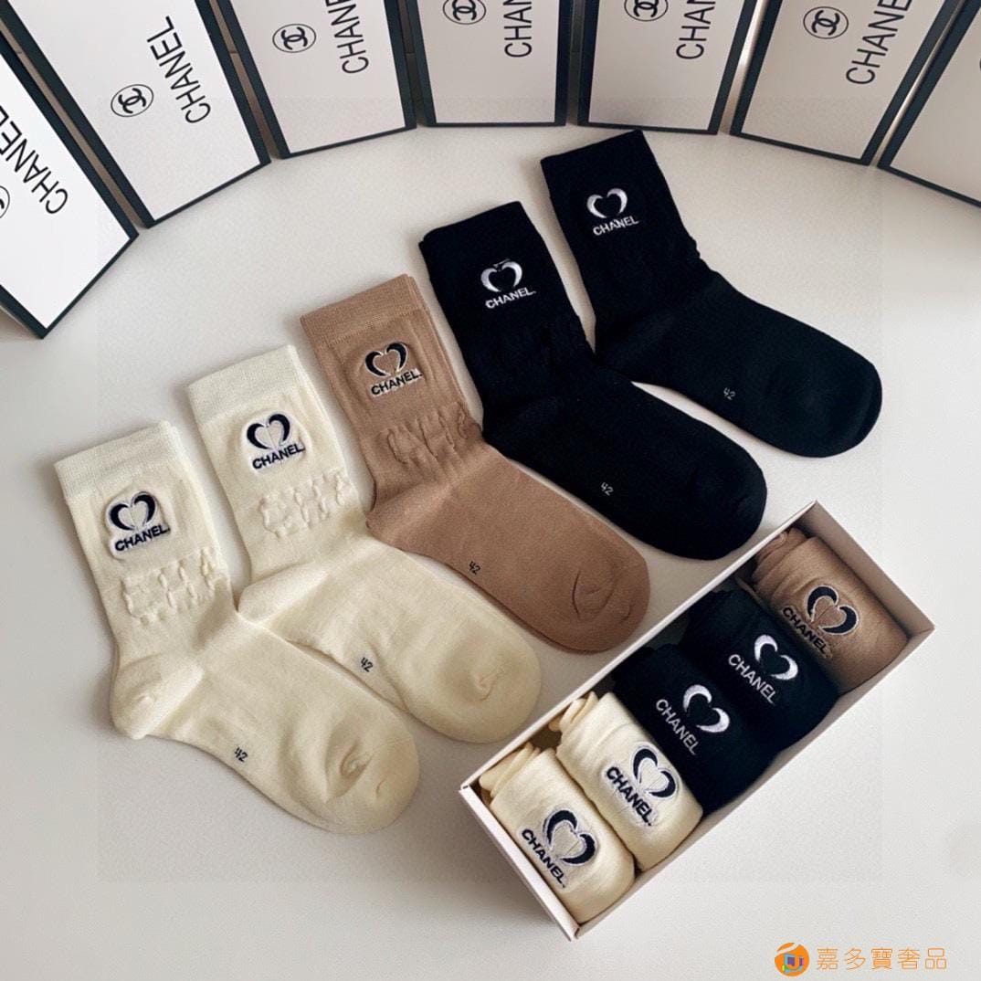 配包装【一盒二双】 香奈儿CHANEL专柜新款高筒袜子?专