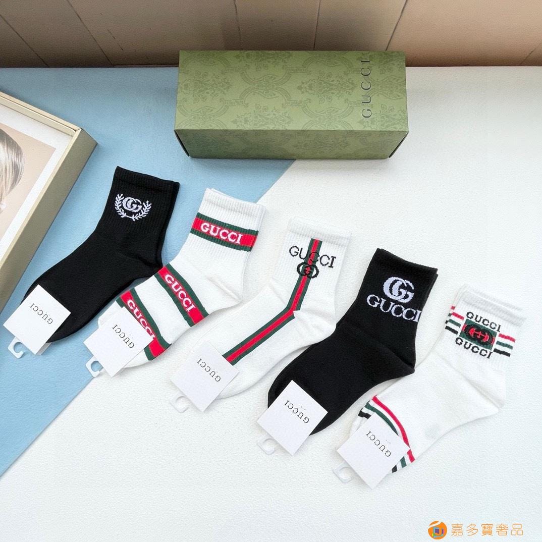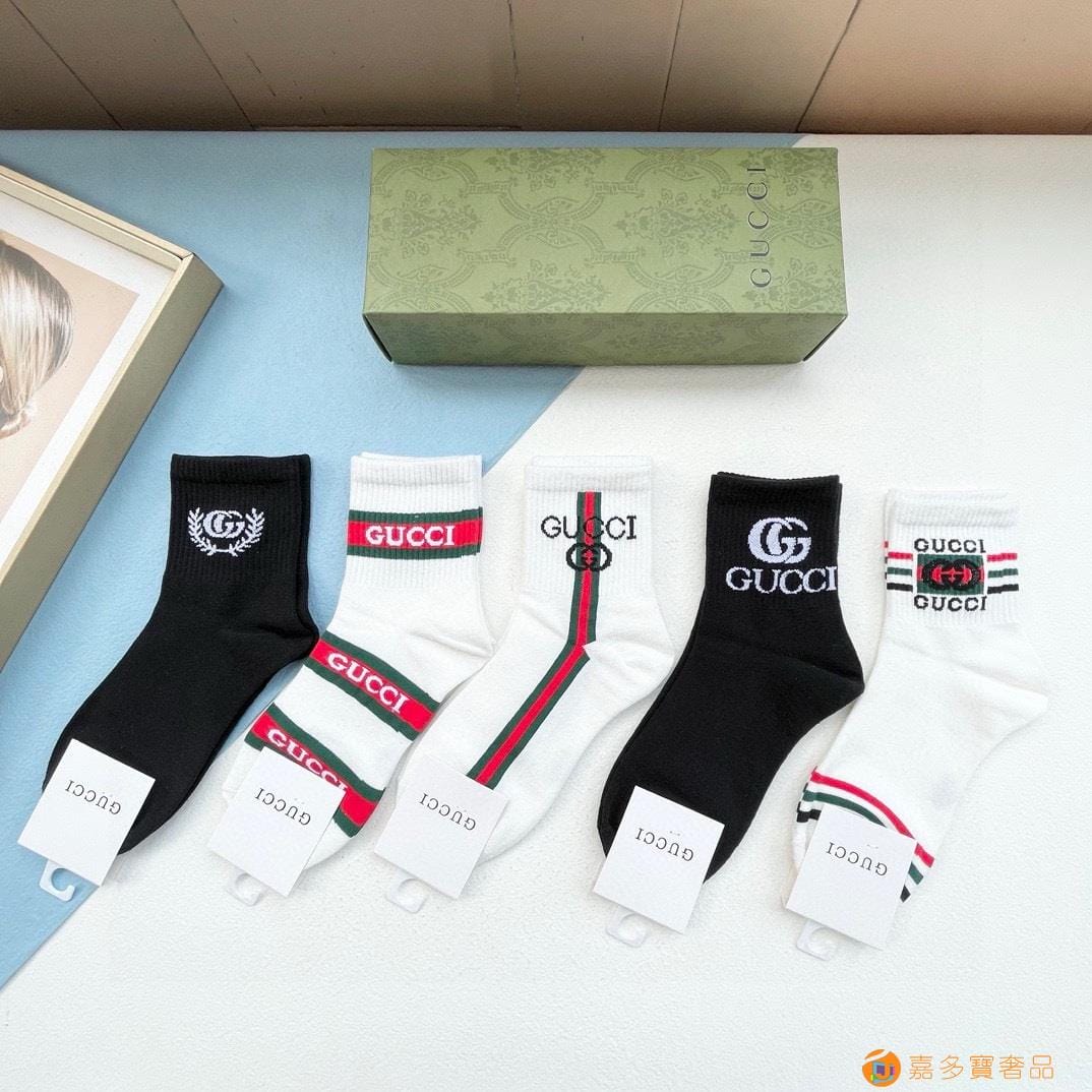 配送包装【一盒五双】 古奇gucci专柜新款男女款中筒袜子