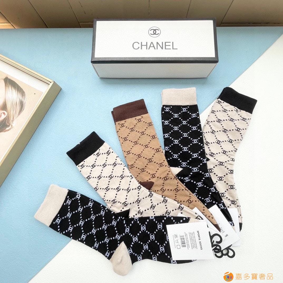 配包装【一盒五双】?Chanel 香奈儿 爆款卡中筒袜?高版