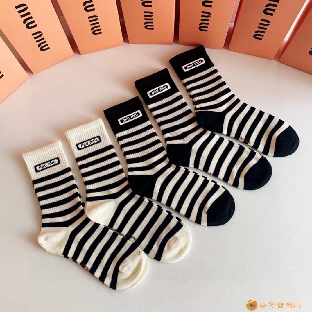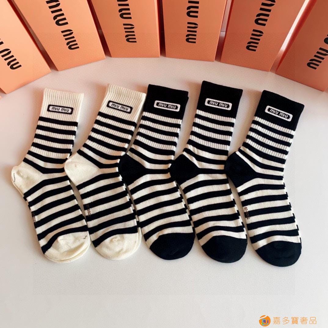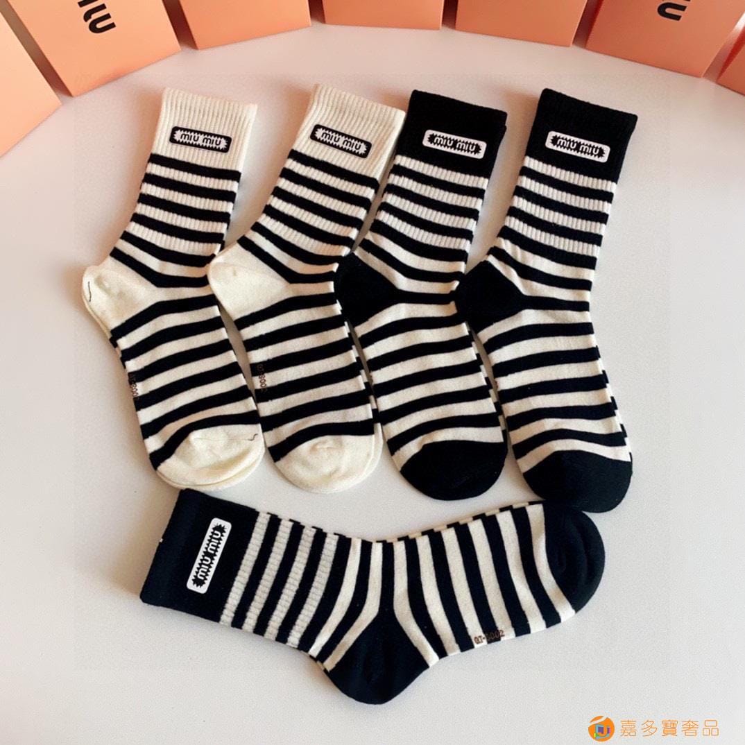 MiuMiu(缪缪)新款中长款烫印堆堆袜袜