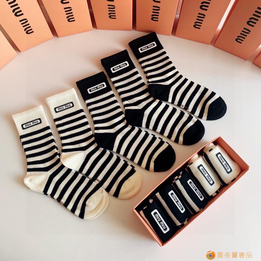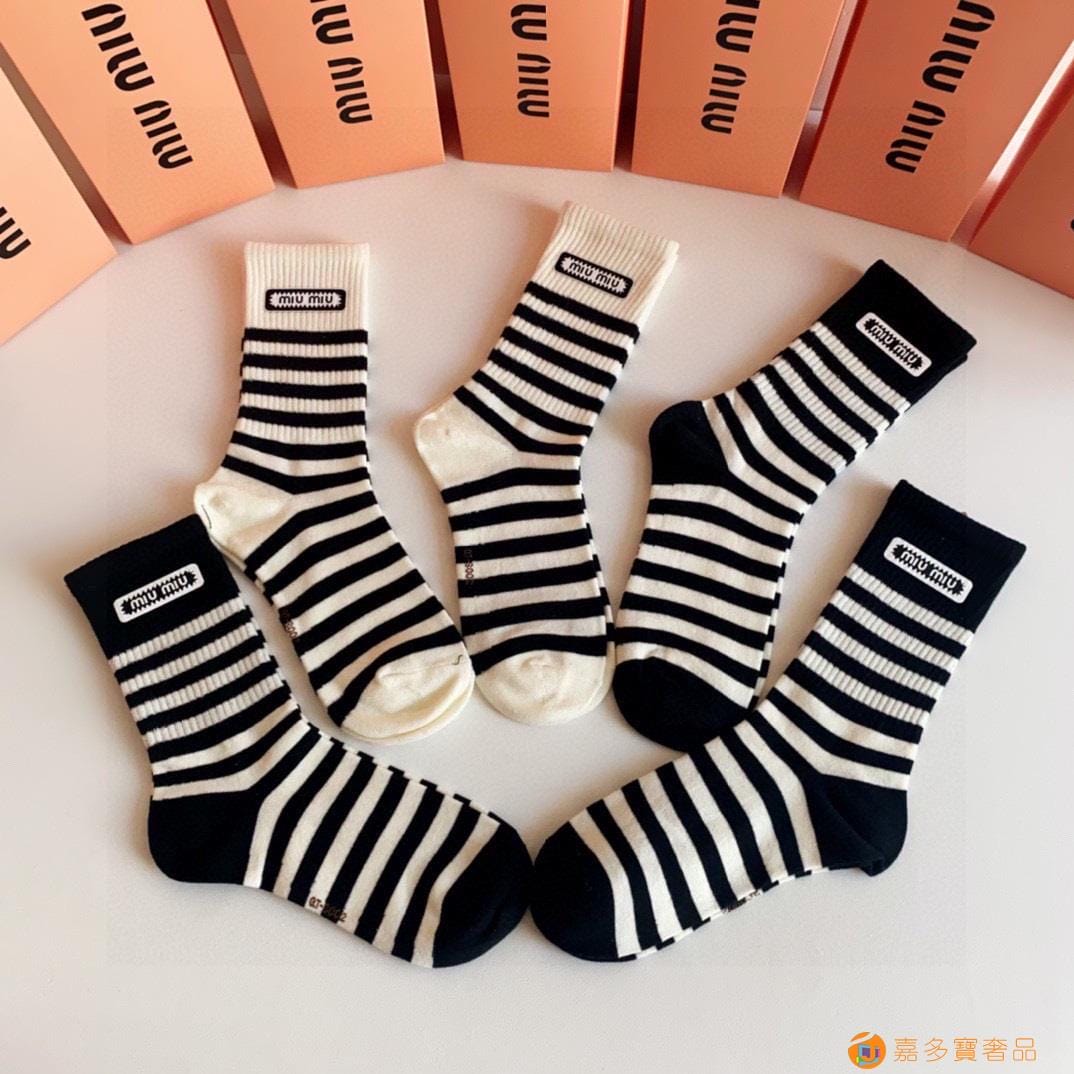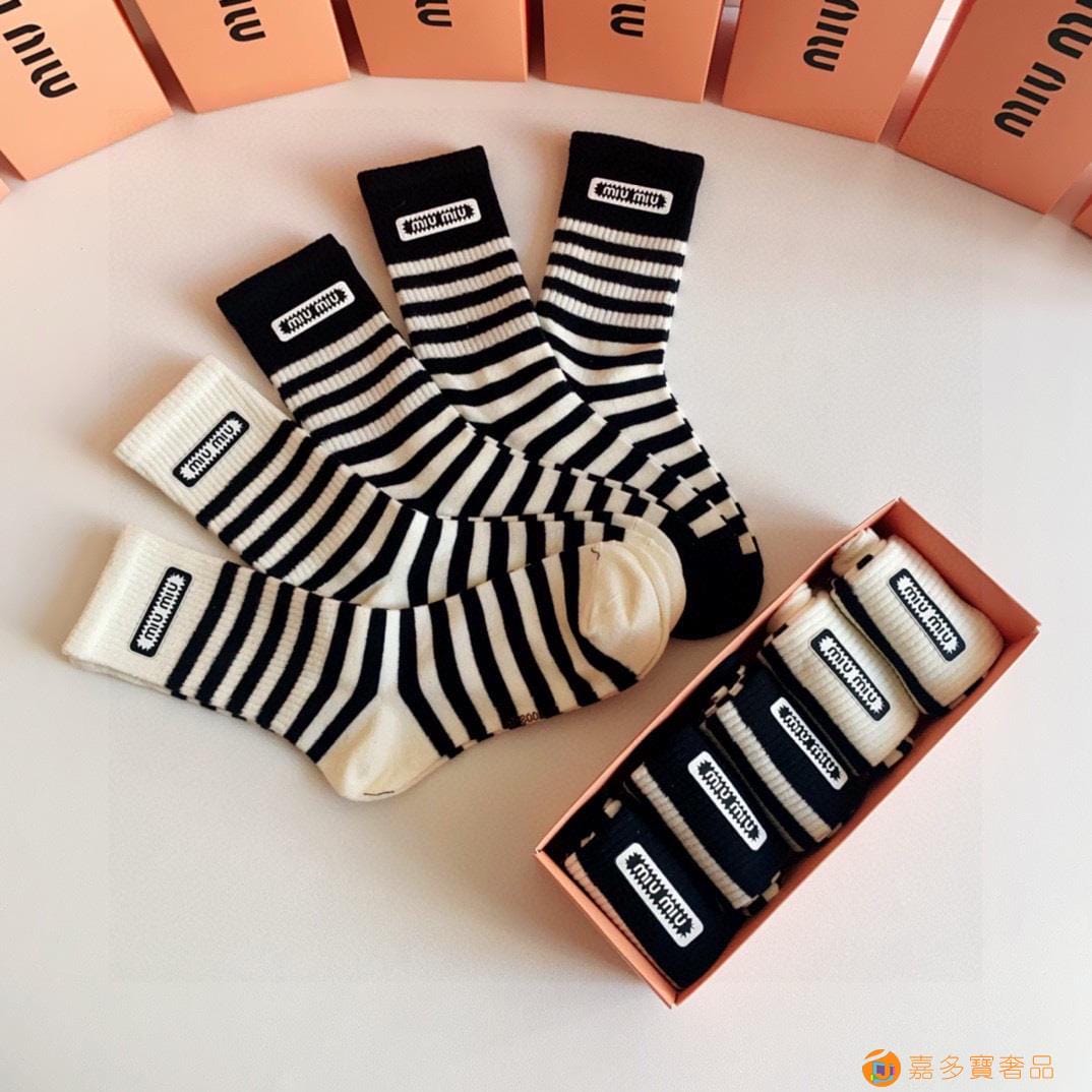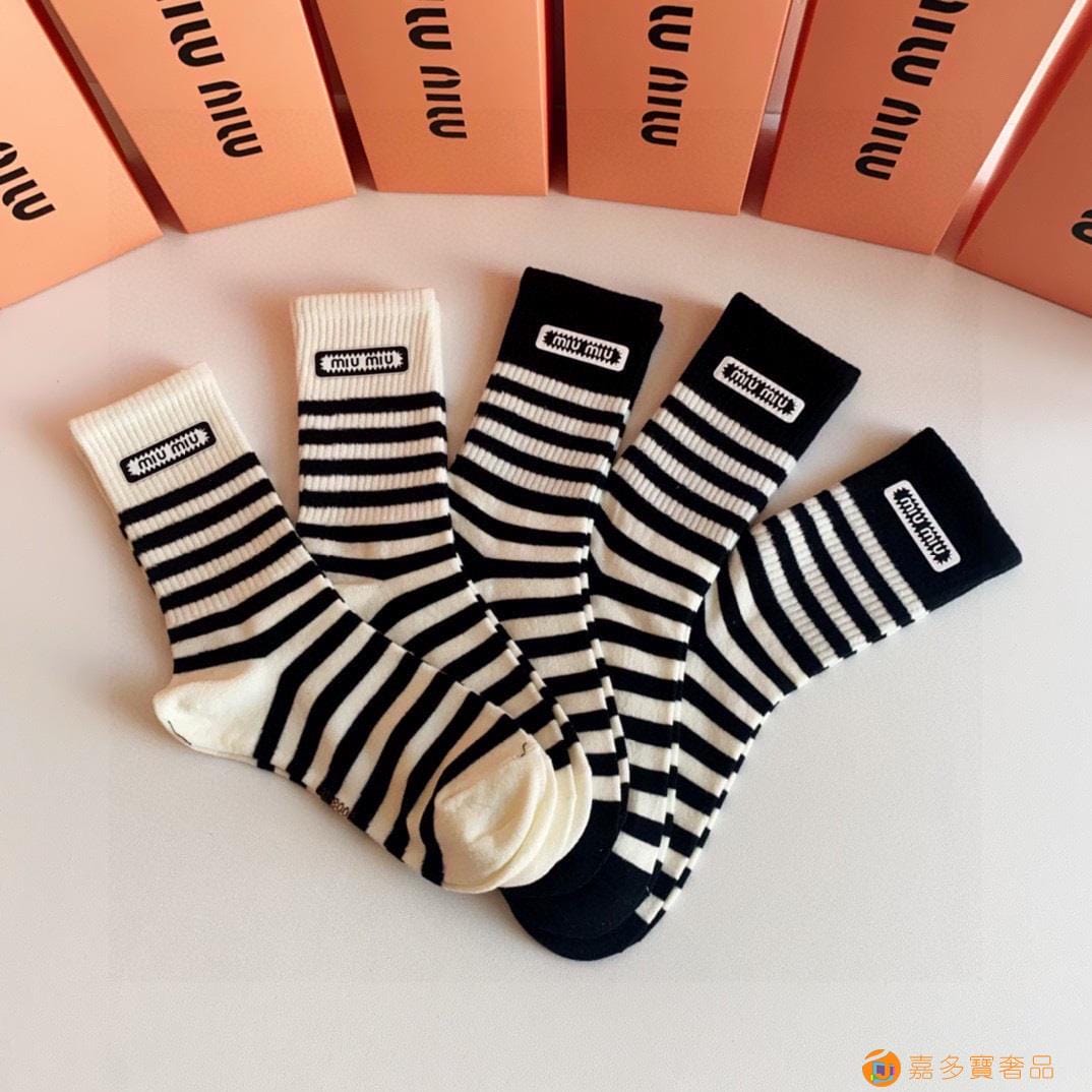 MiuMiu(缪缪)新款中长款烫印堆堆袜袜
