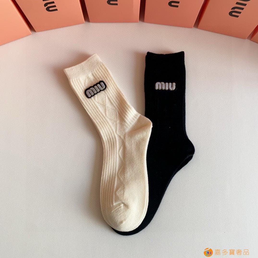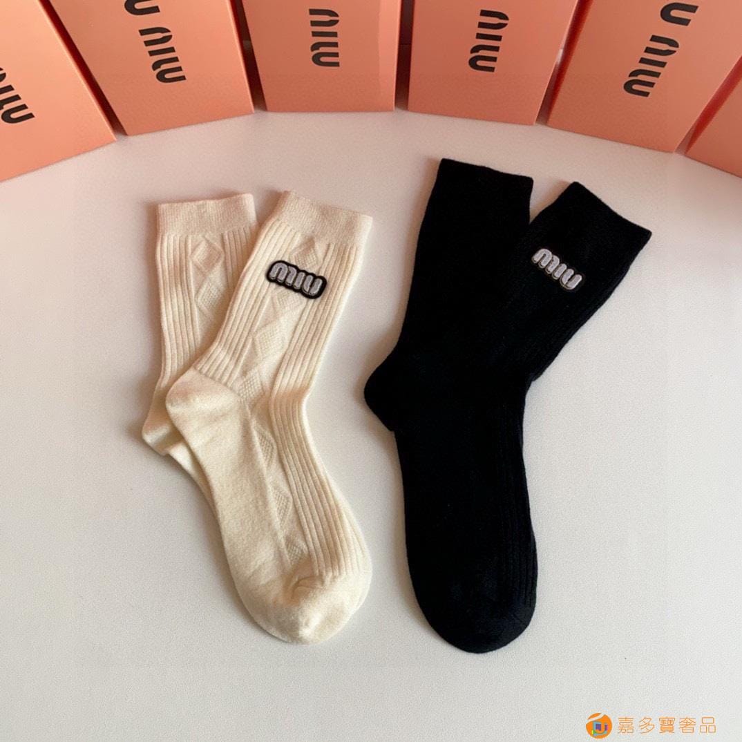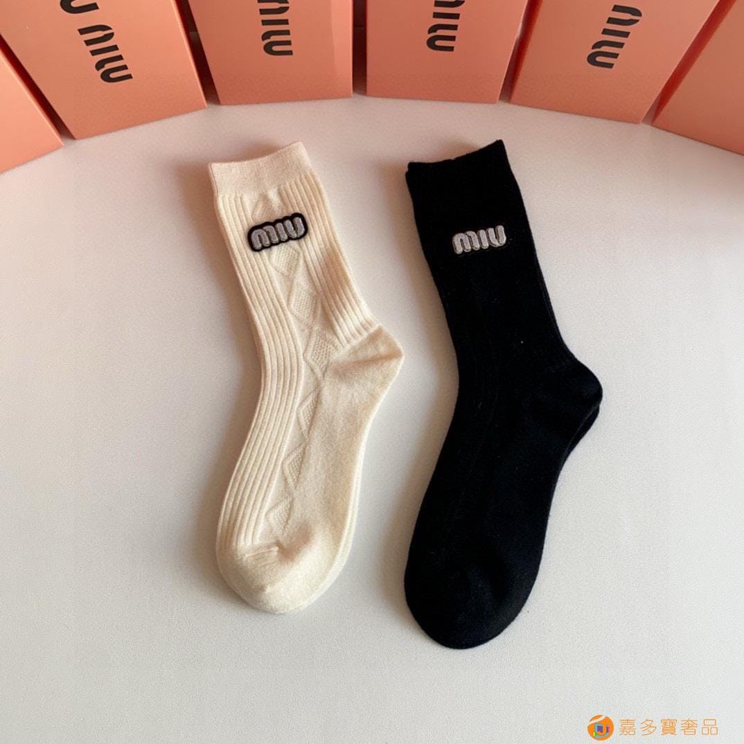 MiuMiu(缪缪)新款中长款烫印堆堆袜袜