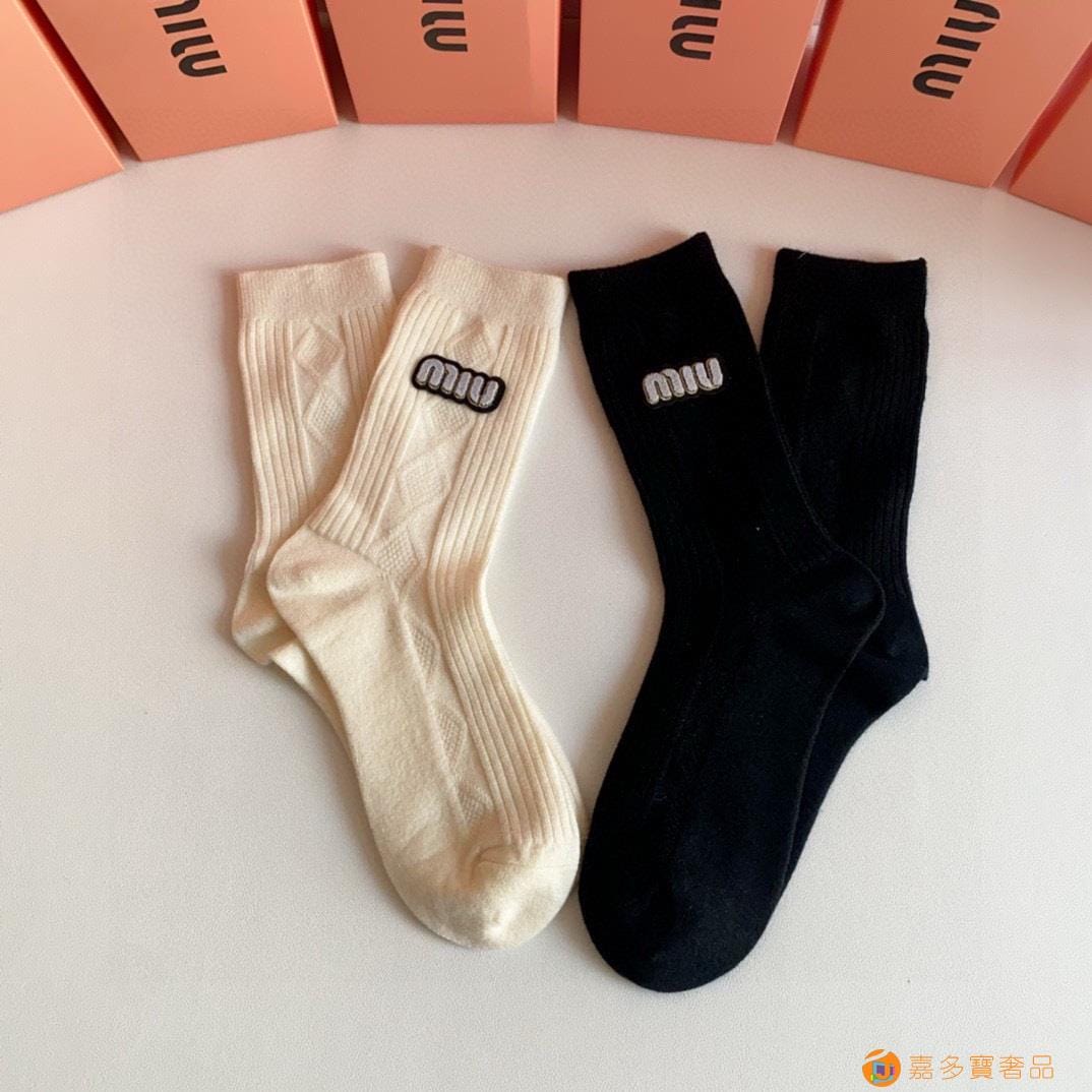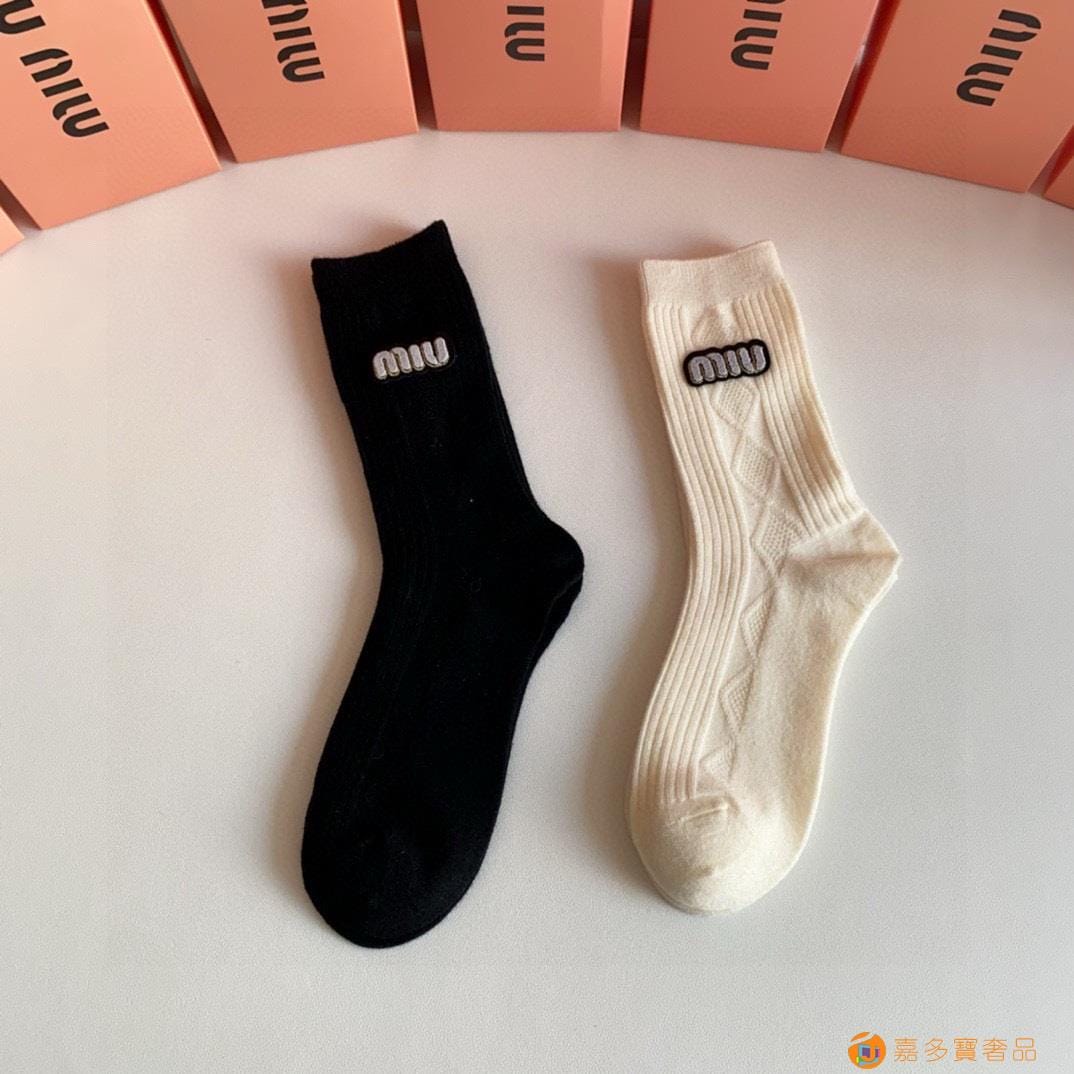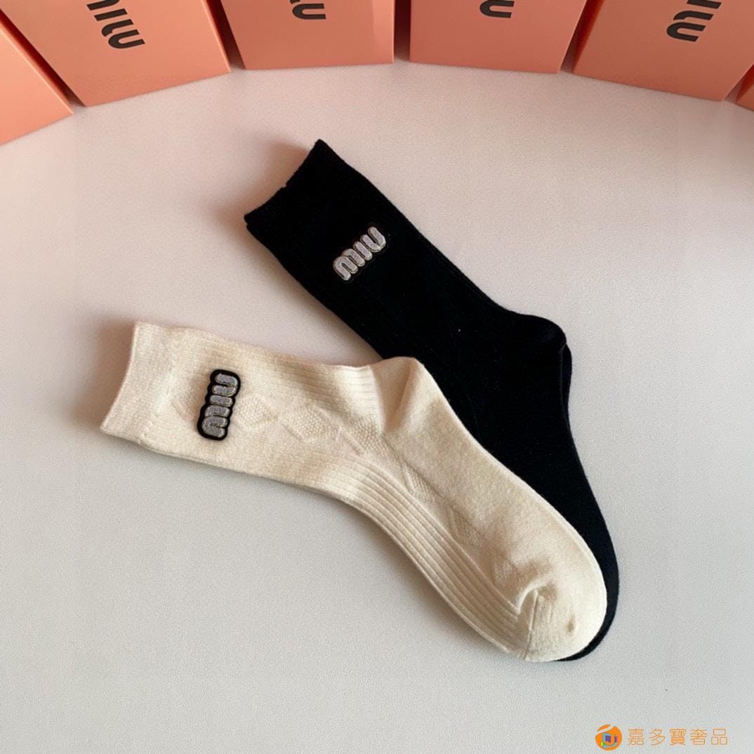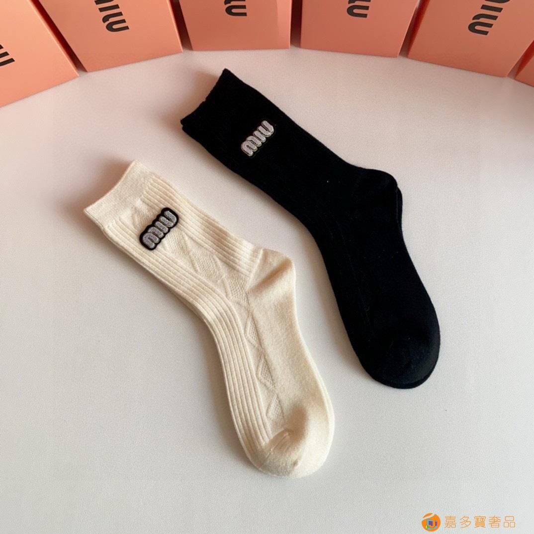 MiuMiu(缪缪)新款中长款烫印堆堆袜袜