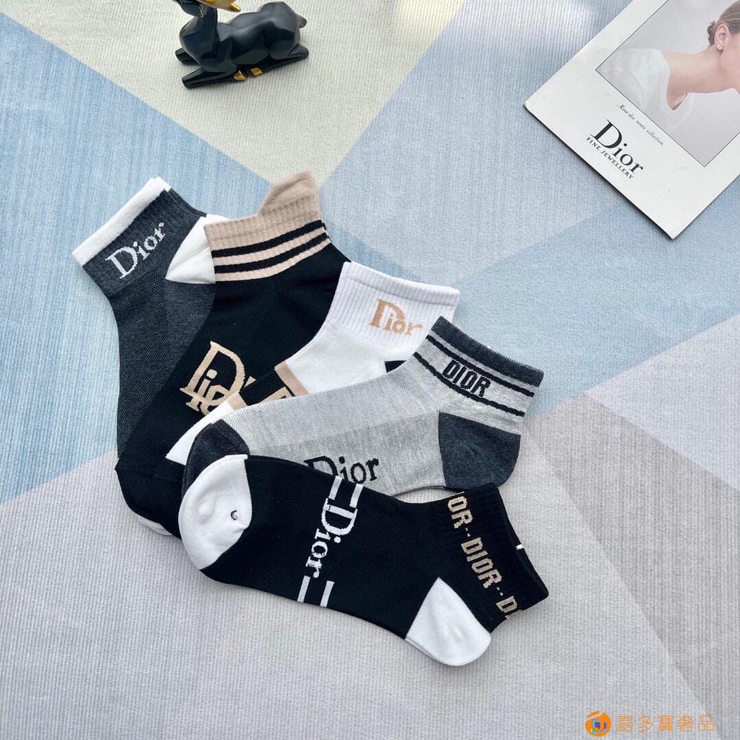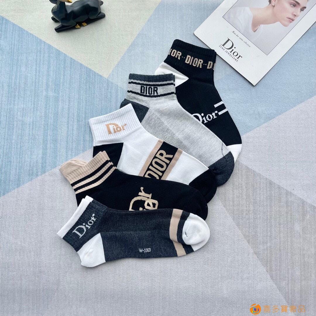 迪奥 新款Dior一 盒五双男士中筒袜子纯棉舒适防臭吸汗商品