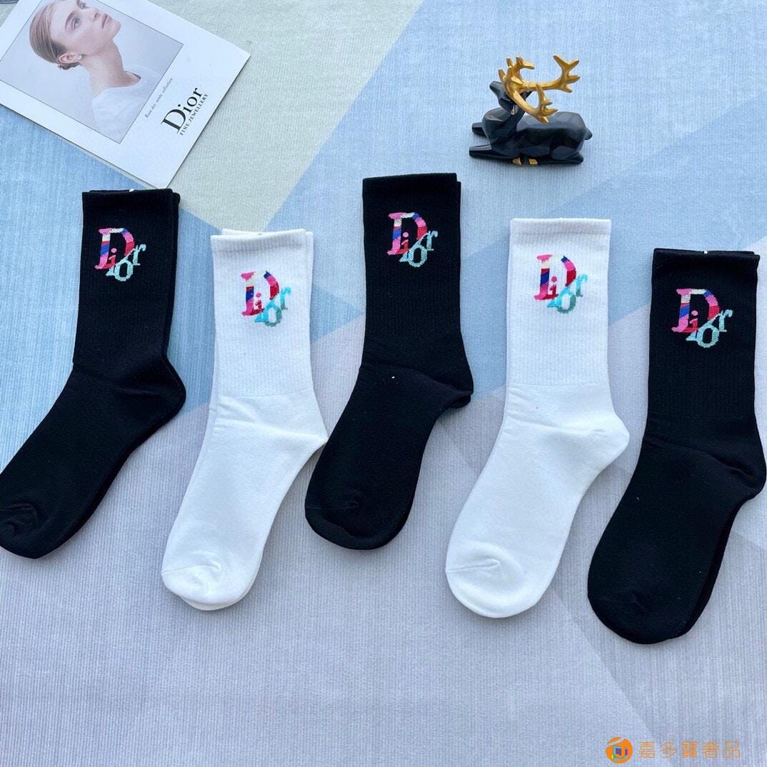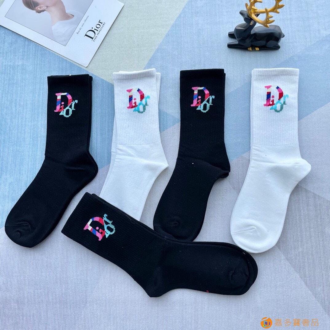 迪奥 新款Dior一 盒五双男士中筒袜子纯棉舒适防臭吸汗商品